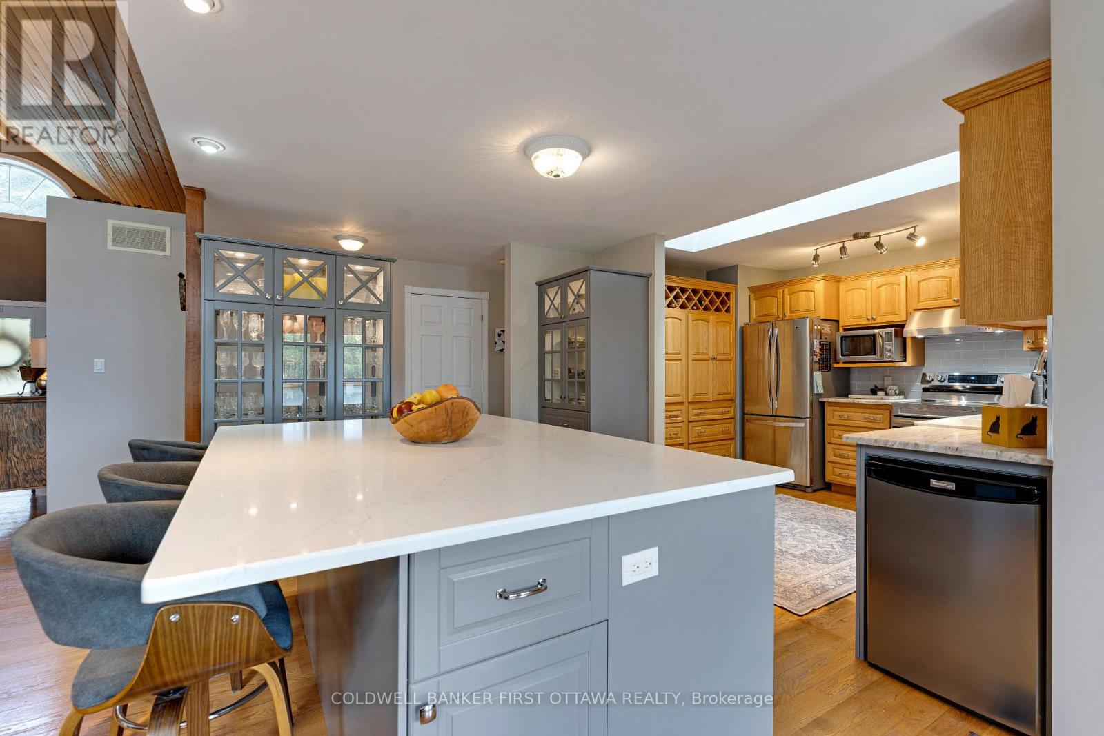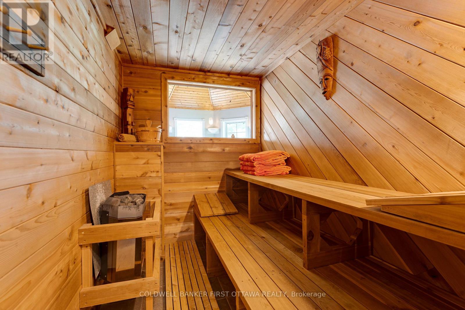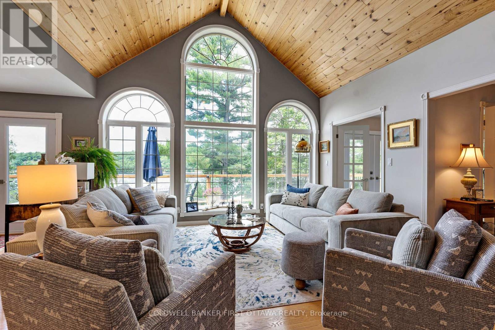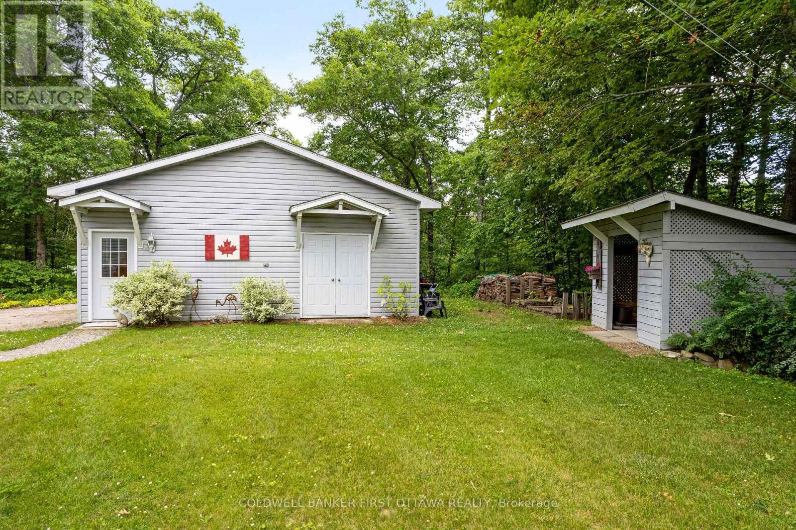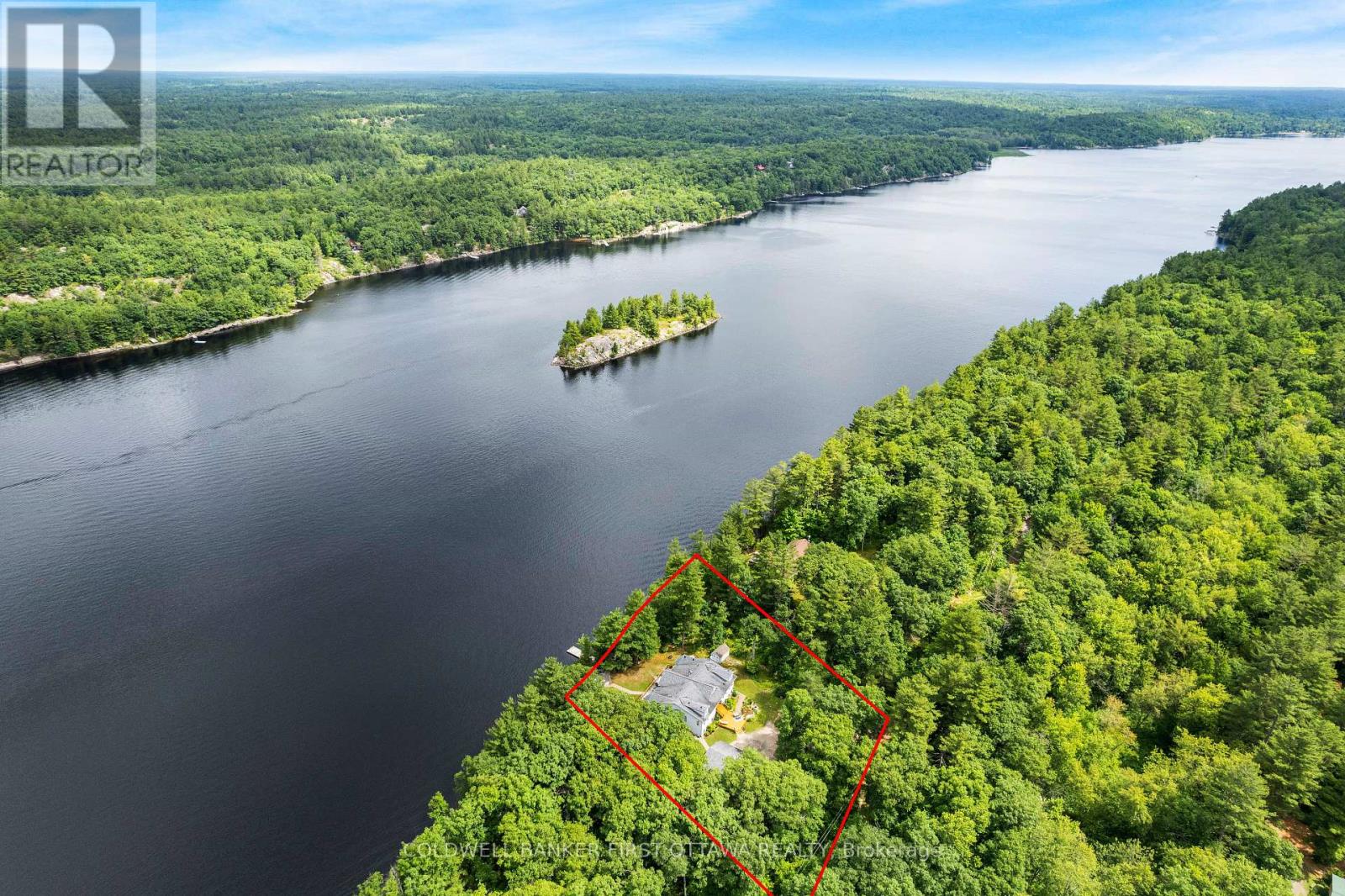 Step onto the deck with your morning coffee, listen to the loons, and watch the mist lift off Kennebec Lake. This is what you bought a cottage country home for. Tucked at the end of a quiet, privately maintained road, 1718 Blue Heron Ridge is a custom raised bungalow with 4,000 square feet of finished living space, built for the way families actually live, with room to spread out, host the grandkids, or set up multi-generational living without anyone tripping over each other. The main floor opens up under a vaulted pine ceiling, anchored by wide-plank oak floors and a kitchen that earns its keep: oversized island, granite counters, farmhouse sink, and patio doors that spill onto a freshly rebuilt deck. A wood-burning fireplace warms the living room. A den with custom cabinetry and a dedicated home office mean working from the lake is a real option, not a fantasy. The primary suite is generous, with a luxurious ensuite and walk-in closet. An indoor hot tub looks out over the water, and the second bathroom hides a full cedar sauna. Downstairs, the walkout lower level adds two more bedrooms, a full bath, family room, games area, wet bar, cold room, and all the storage and hobby space you've been wishing for. The detached double garage includes a 30 by 9 woodworking shop for the maker in the family, plus a dedicated wood storage structure to keep the season's supply dry and close to hand. Outside, a landscaped acre of perennial gardens, extensive decking, and a ridgeline gazebo make the yard feel like a private resort. Off the end of the dock: deep, clean swimming water. Major updates since 2020 include the kitchen, bathrooms, exterior and patio doors, all three decks, a new AC, and seven new windows in 2026. Road association fee is just $400 per year. One hour to Kingston, two to Ottawa, three to downtown Toronto. Book your private tour before someone else calls it home. (id:28469)