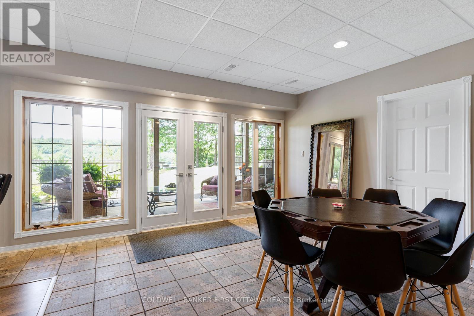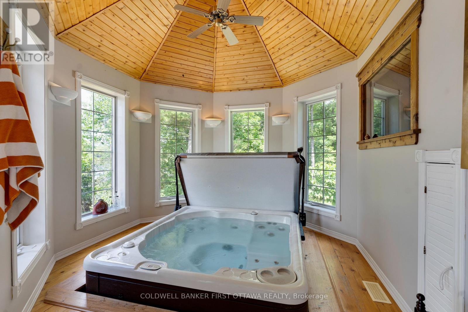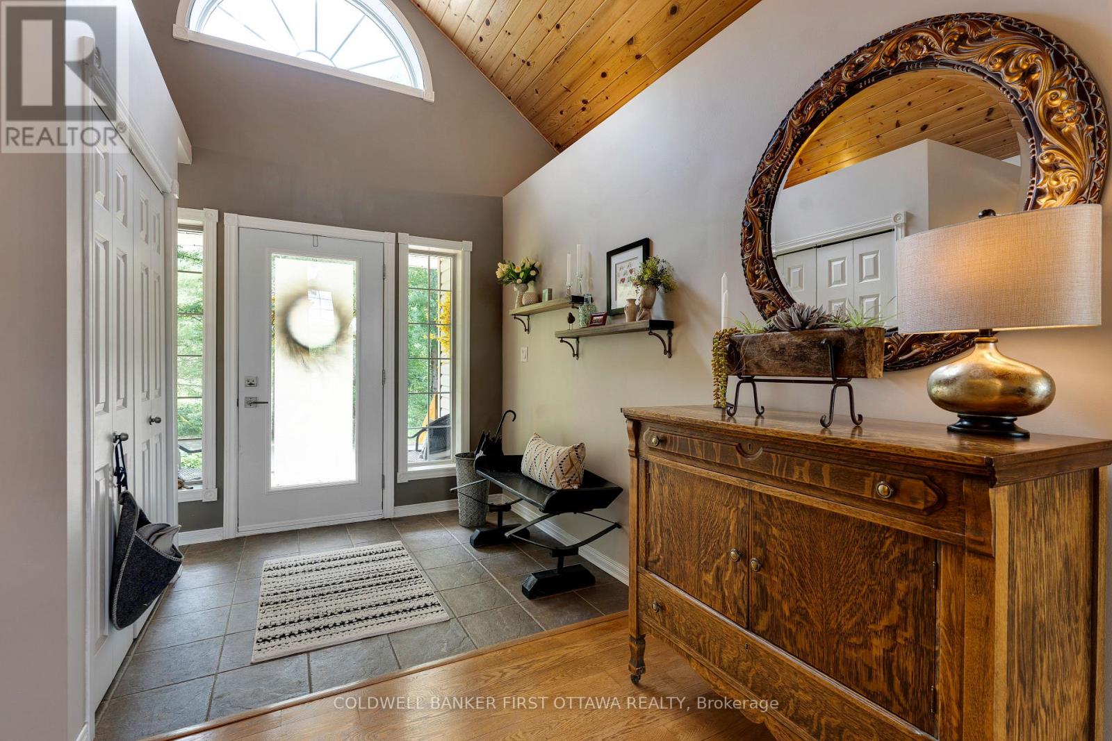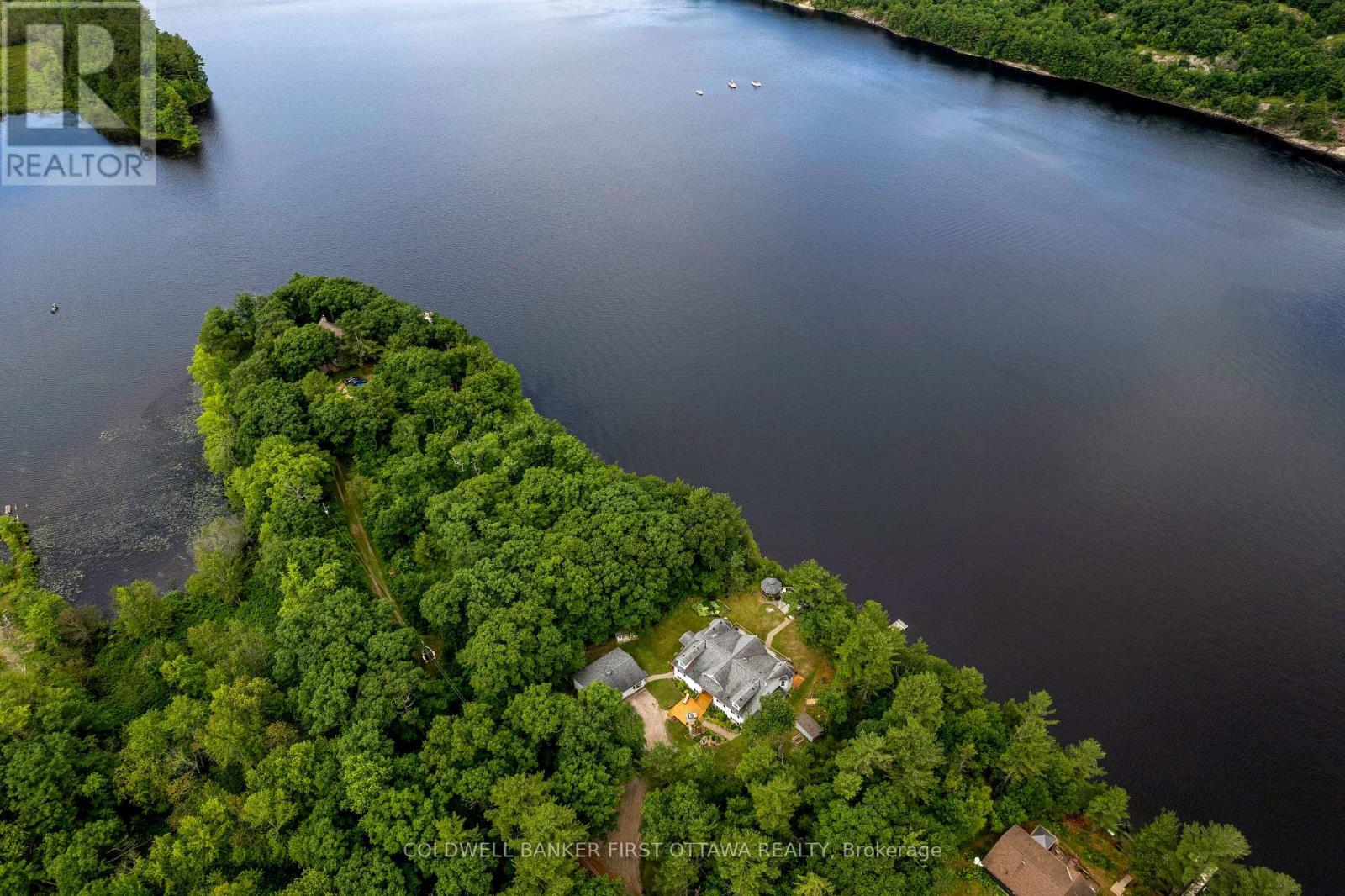 Step onto the deck with your morning coffee, listen to the loons, and watch the mist lift off Kennebec Lake. This is what you bought a cottage country home for. Tucked at the end of a quiet, privately maintained road, 1718 Blue Heron Ridge is a custom raised bungalow with 4,000 square feet of finished living space, built for the way families actually live, with room to spread out, host the grandkids, or set up multi-generational living without anyone tripping over each other. The main floor opens up under a vaulted pine ceiling, anchored by wide-plank oak floors and a kitchen that earns its keep: oversized island, granite counters, farmhouse sink, and patio doors that spill onto a freshly rebuilt deck. A wood-burning fireplace warms the living room. A den with custom cabinetry and a dedicated home office mean working from the lake is a real option, not a fantasy. The primary suite is generous, with a luxurious ensuite and walk-in closet. An indoor hot tub looks out over the water, and the second bathroom hides a full cedar sauna. Downstairs, the walkout lower level adds two more bedrooms, a full bath, family room, games area, wet bar, cold room, and all the storage and hobby space you've been wishing for. The detached double garage includes a 30 by 9 woodworking shop for the maker in the family, plus a dedicated wood storage structure to keep the season's supply dry and close to hand. Outside, a landscaped acre of perennial gardens, extensive decking, and a ridgeline gazebo make the yard feel like a private resort. Off the end of the dock: deep, clean swimming water. Major updates since 2020 include the kitchen, bathrooms, exterior and patio doors, all three decks, a new AC, and seven new windows in 2026. Road association fee is just $400 per year. One hour to Kingston, two to Ottawa, three to downtown Toronto. Book your private tour before someone else calls it home. (id:28469)