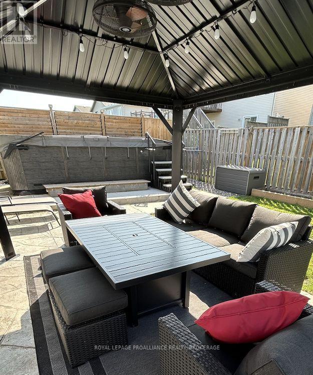 Welcome home to this well-appointed 2+1 bedroom - 2 Bathroom bungalow located on the desirable Lakeside neighbourhood of Amherstview. Offering a comfortable & low-maintenance lifestyle ideal for both downsizers and professionals. The main level features a bright, open-concept layout with oversized windows, two bedrooms, and a full bathroom. The kitchen is designed for both function and style with crisp white cabinetry and quartz counters, flowing seamlessly into the living and dining areas. Patio Doors lead to the fully fenced yard creating a private outdoor space highlighted by a luxurious elevated swim spa with patio and a gazebo. The fully furnished lower level provides excellent additional living space, including a modern home theatre room, guest bedroom, full bathroom, & a bar. Additional features include a two-car garage with excellent built-in storage and abundant driveway parking. A thoughtfully designed home in a popular community, offering space, privacy, and everyday convenience. Call for your private showing today! (id:28469)