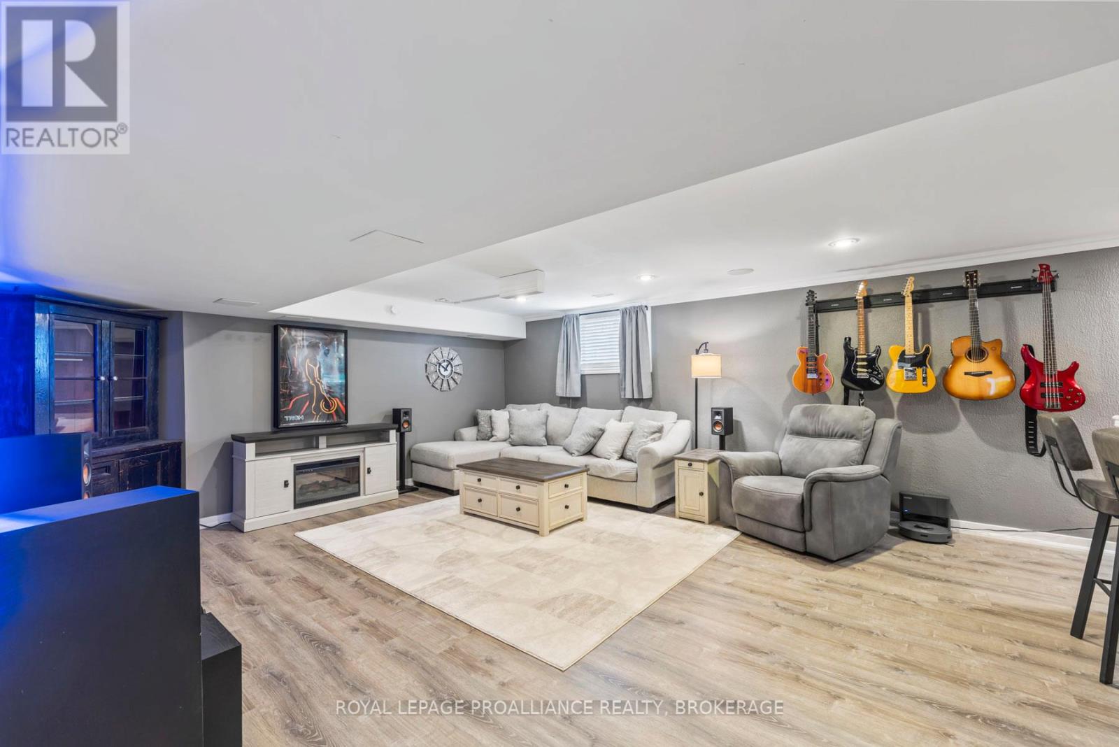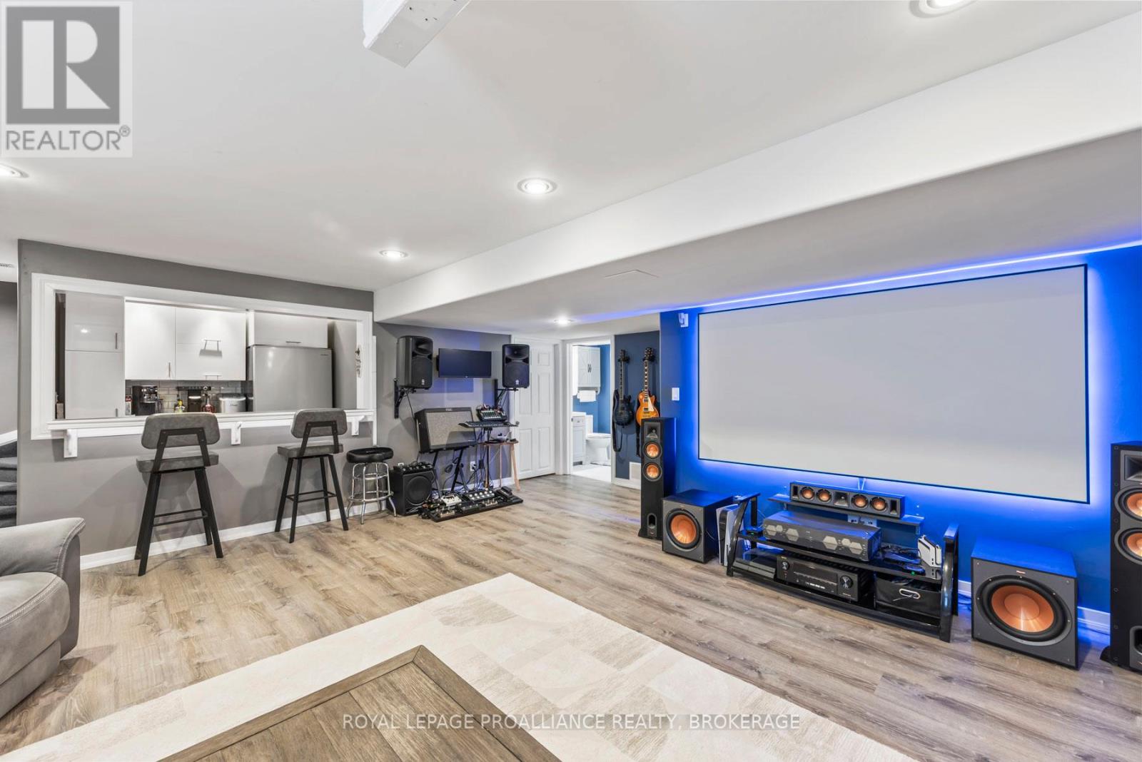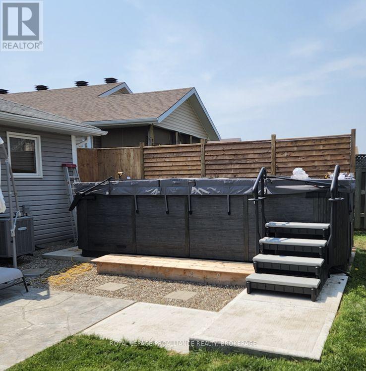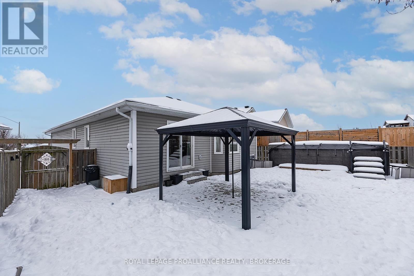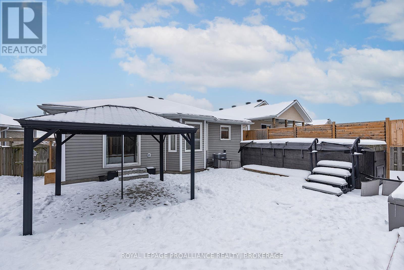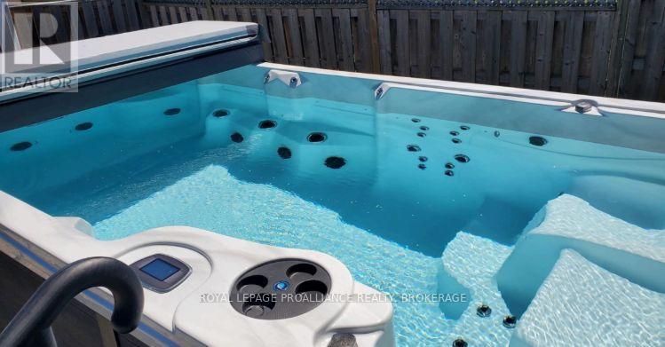 Welcome home to this well-appointed 2+1 bedroom - 2 Bathroom bungalow located on the desirable Lakeside neighbourhood of Amherstview. Offering a comfortable & low-maintenance lifestyle ideal for both downsizers and professionals. The main level features a bright, open-concept layout with oversized windows, two bedrooms, and a full bathroom. The kitchen is designed for both function and style with crisp white cabinetry and quartz counters, flowing seamlessly into the living and dining areas. Patio Doors lead to the fully fenced yard creating a private outdoor space highlighted by a luxurious elevated swim spa with patio and a gazebo. The fully furnished lower level provides excellent additional living space, including a modern home theatre room, guest bedroom, full bathroom, & a bar. Additional features include a two-car garage with excellent built-in storage and abundant driveway parking. A thoughtfully designed home in a popular community, offering space, privacy, and everyday convenience. Call for your private showing today! (id:28469)