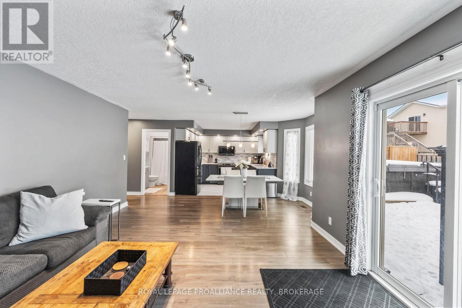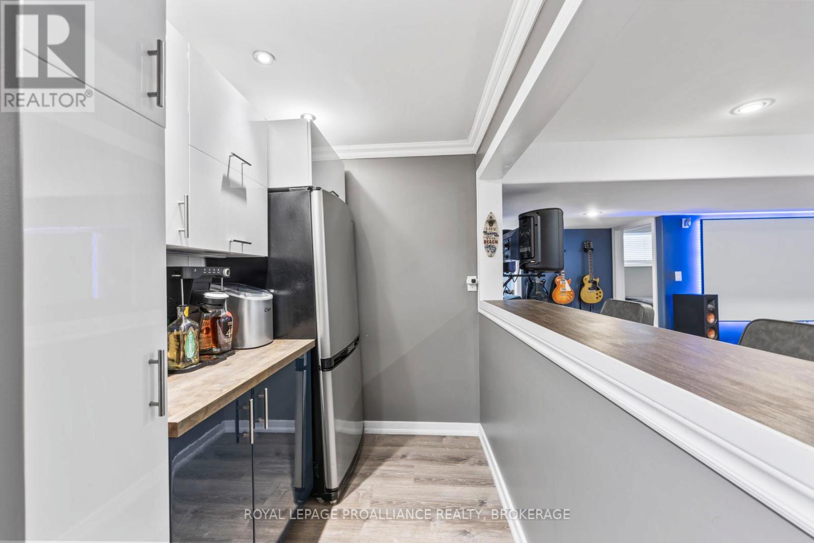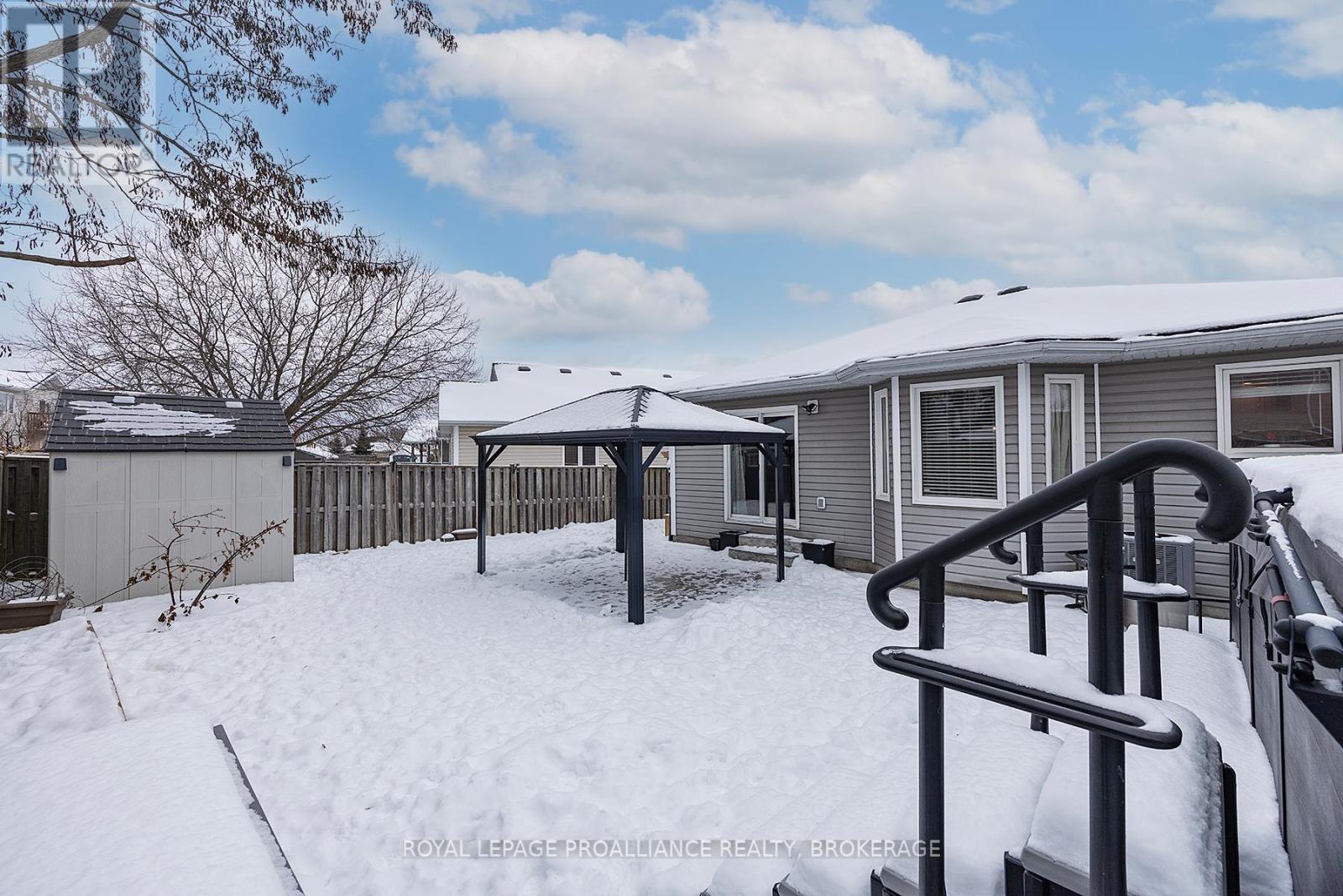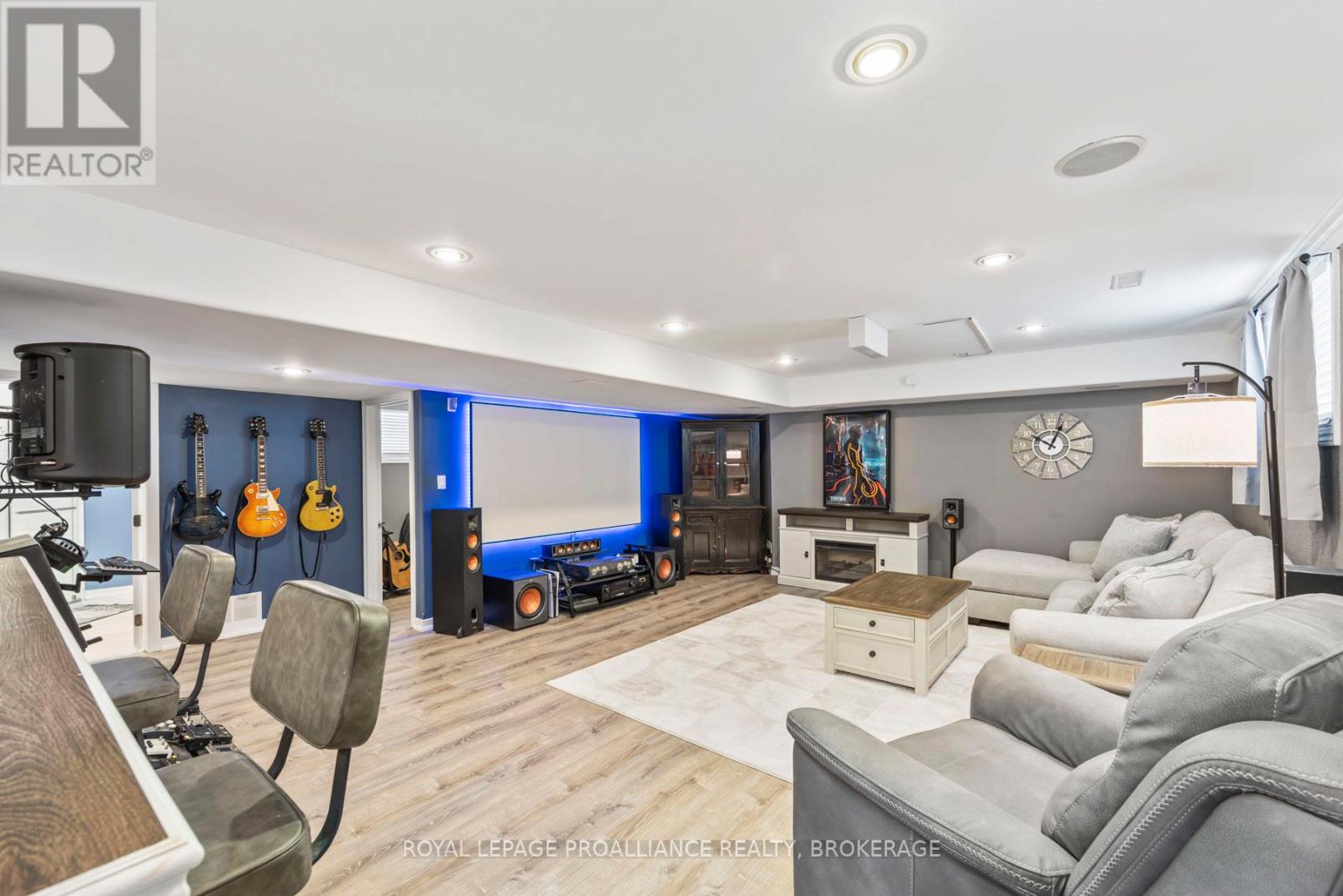 Welcome home to this well-appointed 2+1 bedroom - 2 Bathroom bungalow located on the desirable Lakeside neighbourhood of Amherstview. Offering a comfortable & low-maintenance lifestyle ideal for both downsizers and professionals. The main level features a bright, open-concept layout with oversized windows, two bedrooms, and a full bathroom. The kitchen is designed for both function and style with crisp white cabinetry and quartz counters, flowing seamlessly into the living and dining areas. Patio Doors lead to the fully fenced yard creating a private outdoor space highlighted by a luxurious elevated swim spa with patio and a gazebo. The fully furnished lower level provides excellent additional living space, including a modern home theatre room, guest bedroom, full bathroom, & a bar. Additional features include a two-car garage with excellent built-in storage and abundant driveway parking. A thoughtfully designed home in a popular community, offering space, privacy, and everyday convenience. Call for your private showing today! (id:28469)