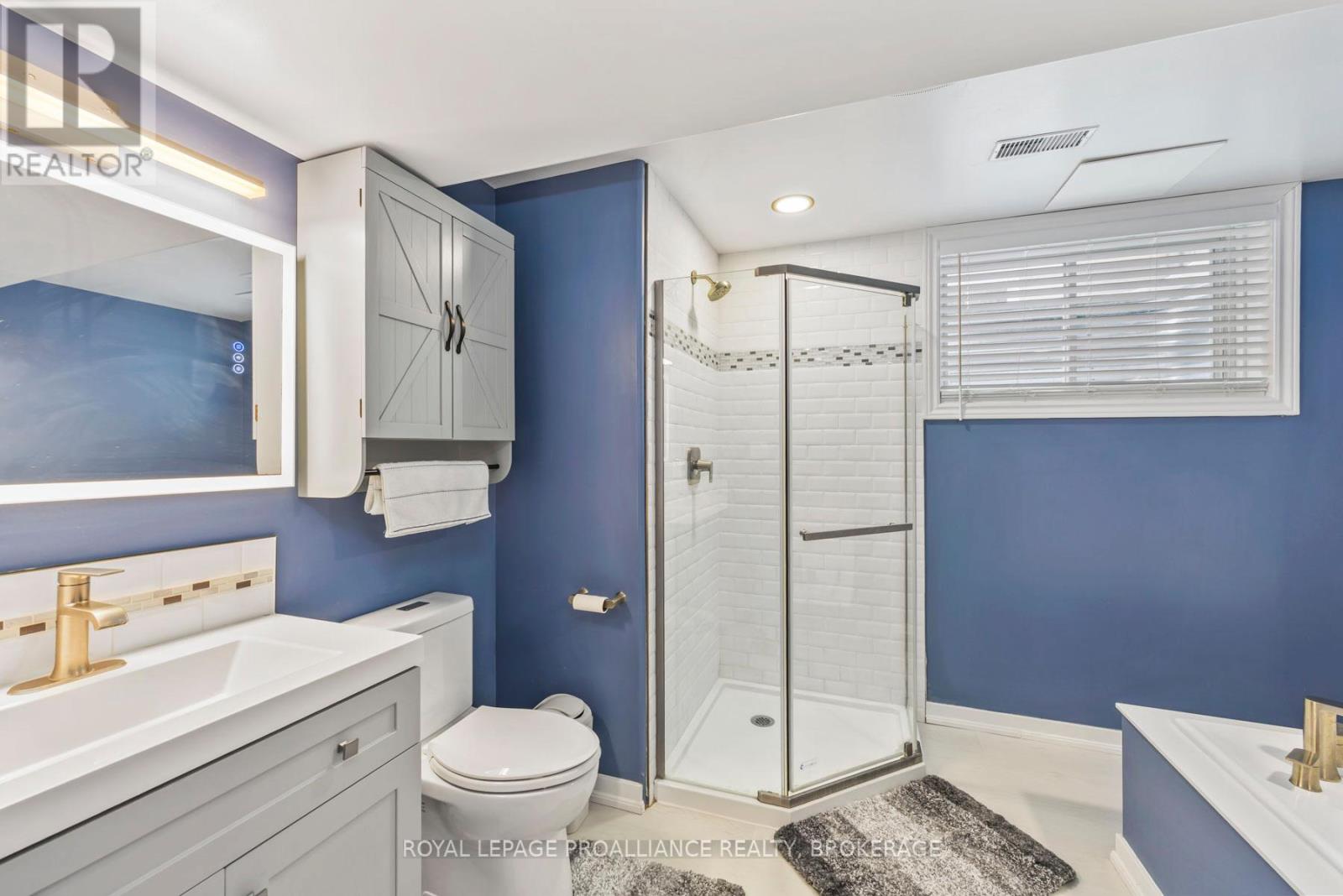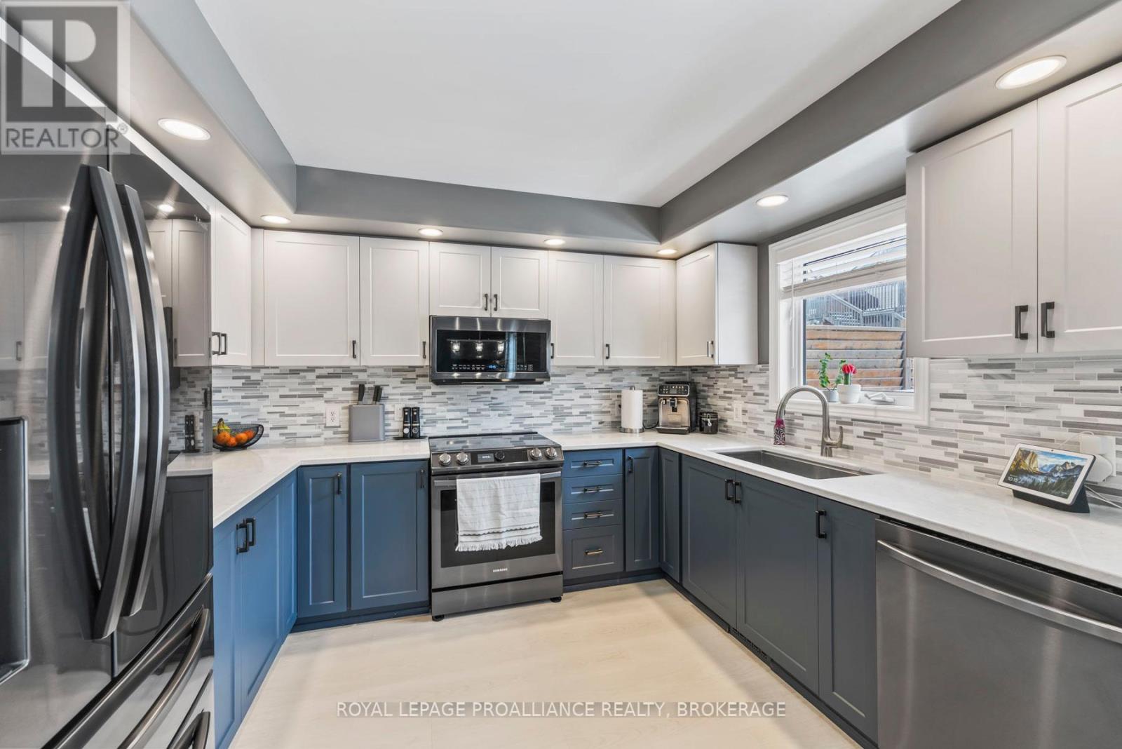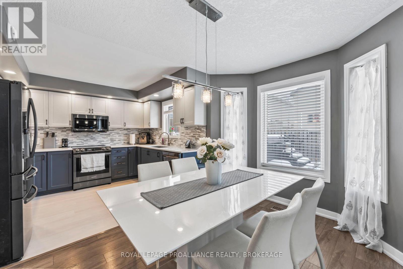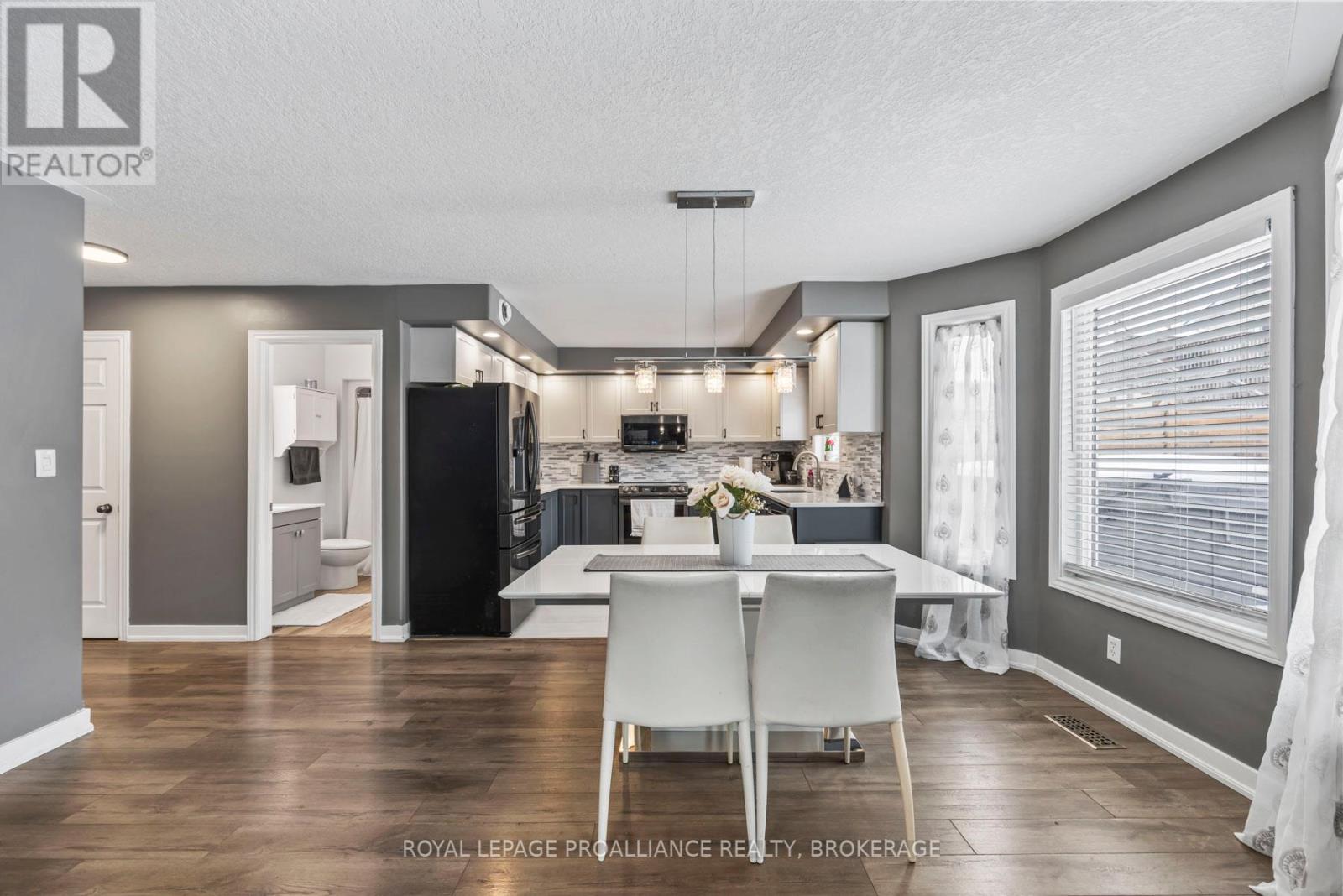 Welcome home to this well-appointed 2+1 bedroom - 2 Bathroom bungalow located on the desirable Lakeside neighbourhood of Amherstview. Offering a comfortable & low-maintenance lifestyle ideal for both downsizers and professionals. The main level features a bright, open-concept layout with oversized windows, two bedrooms, and a full bathroom. The kitchen is designed for both function and style with crisp white cabinetry and quartz counters, flowing seamlessly into the living and dining areas. Patio Doors lead to the fully fenced yard creating a private outdoor space highlighted by a luxurious elevated swim spa with patio and a gazebo. The fully furnished lower level provides excellent additional living space, including a modern home theatre room, guest bedroom, full bathroom, & a bar. Additional features include a two-car garage with excellent built-in storage and abundant driveway parking. A thoughtfully designed home in a popular community, offering space, privacy, and everyday convenience. Call for your private showing today! (id:28469)