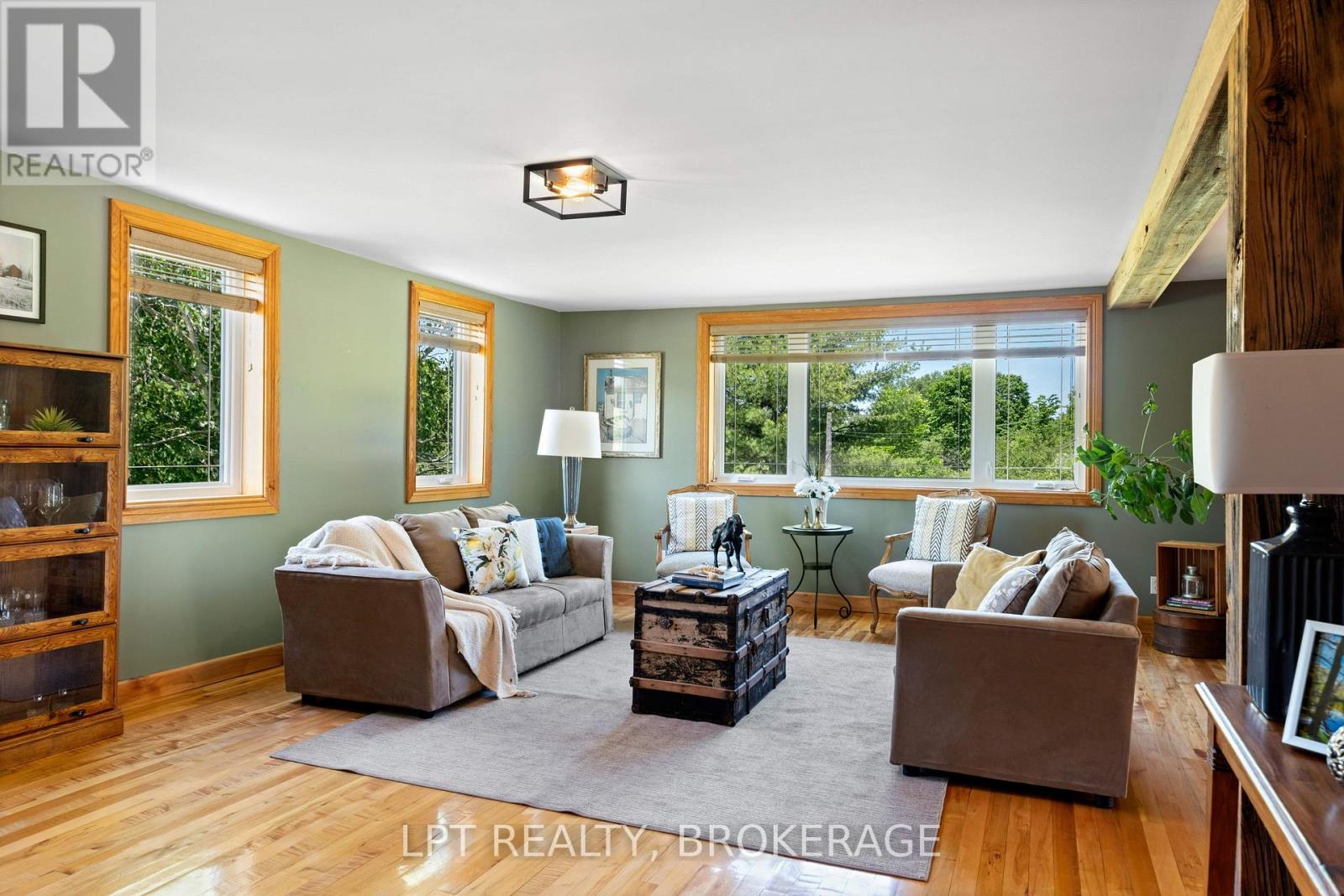 1758 Forty Foot Road, Godfrey, Ontario is a stunning countryside retreat that perfectly blends rustic charm with modern comfort, all set on an expansive 20.6-acre lot. This beautifully designed farmhouse offers 3 spacious bedrooms and 2.5 bathrooms, including a luxurious master suite featuring a spa-like two-person jacuzzi tub your own private oasis for relaxation.Step into the heart of the home, where the custom country kitchen, equipped with modern appliances, provides both function and charm. Whether you're preparing meals or simply enjoying the breathtaking views, this space is designed for comfort and inspiration. The open-concept living area boasts soaring vaulted ceilings and heated floors, creating a warm and inviting atmosphere year-round.Beyond the home itself, the property offers incredible versatility with multiple outbuildings, ideal for a hobby farm, workshop, or even a home-based business. With ample space to explore and enjoy, this property is a dream come true for those seeking privacy, tranquility, and the freedom to create their own rural paradise.Despite its peaceful and private setting, this home is conveniently located just 15 minutes from the nearest boat launch, perfect for enjoying the water. Additionally, outdoor enthusiasts will love the property's direct access to the K & P Trail, located less than a minute away, offering endless opportunities for hiking, biking, and adventure.Whether you're looking for a serene escape from city life or a place to embrace country living while staying connected to modern conveniences, 1758 Forty Foot Road offers a rare and exceptional opportunity to experience the best of both worlds. (id:28469)