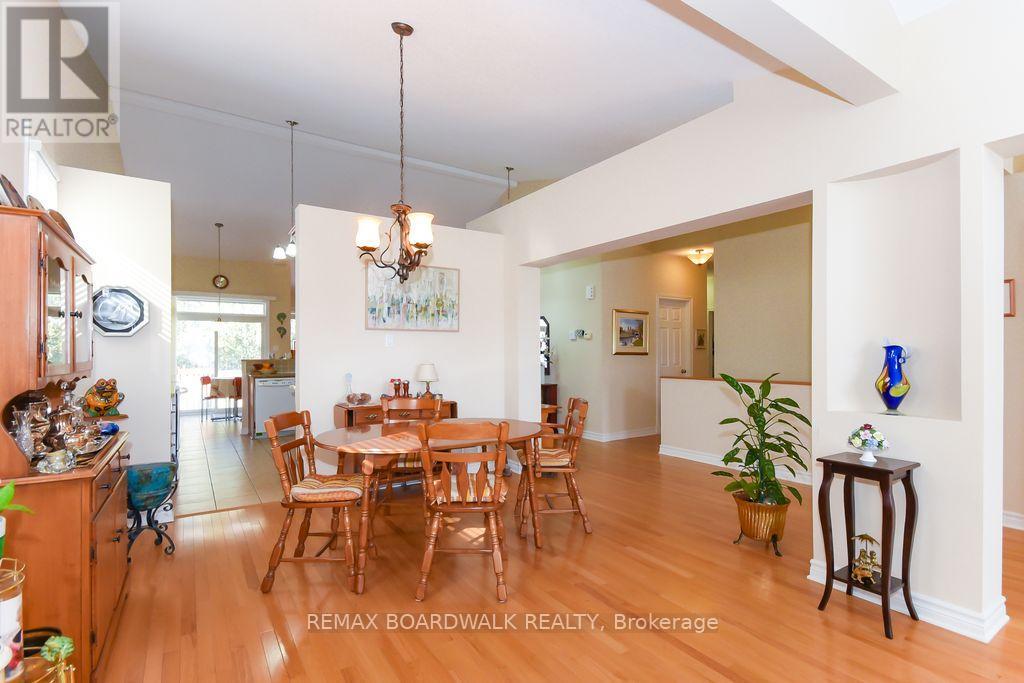 Looking for lots of space on the main floor? Built by Richcraft, the modified Havenstone model will definitely impress you with it's cathedral ceilings, openness throughout the main living space and the natural lighting. Approximately 2,000 square feet on main level. 3 good size bedrooms with lots of closet space on the main floor. The gourmet kitchen offers lots of granite counter space, generous amounts of cupboards and includes the refrigerator, the stove and the dishwasher. Large breakfast area with patio doors to the private back yard with interlocking patio. The Great room offers an impressive mantle with gas burning fireplace, windows and lots of space. The main floor laundry area has access to the garage and closet. The living and dining rooms will definitely impress the most discriminating of all guests. Gleaming hardwood flooring throughout the main floor + staircase to the unspoiled lower level. Tile flooring in bathrooms, kitchen, foyer area + entrance to garage. This home truly shows pride of ownership throughout. Curb appeal with it's front covered front porch and beautiful interlocking driveway. Quiet street. Parks nearby. View photos for details. As per form 244: 24 hours irrevocable on all offers submitted (no exceptions). PVC fencing. 50 feet wide lot makes a beautiful sized back yard. Covered back porch. *Lawn maintenance service included for 2026 season (weekly care/fertilizing). Roof shingles will be replaced before closing date with 25 years shingles. Furnace will be replaced and will be new by closing date. (id:28469)