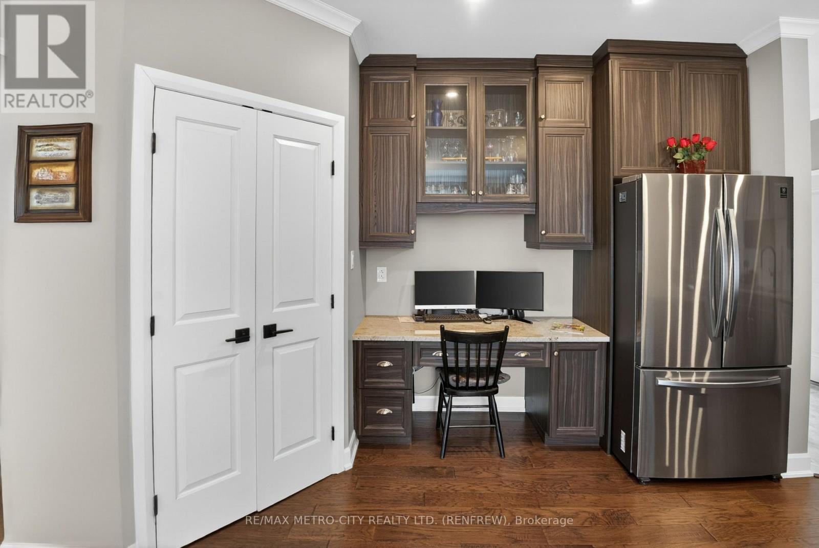 Modern ICF Luxury: Efficiency & Style Near Hwy 17. Experience the perfect blend of high-end design and superior engineering in this 2022-built ICF bungalow. Located just three minutes from Highway 17, this home is a commuter's dream that doesn't compromise on peace or performance. Built with Insulated Concrete Forms, & well shaded by the mature trees, it offers unmatched energy efficiency, soundproofing, and structural durability, ensuring significantly lower utility costs and year-round comfort. The bright, open-concept interior features soaring nine-foot ceilings, elegant crown moldings, and a cozy fireplace that anchors the main living area. The gourmet kitchen is a showstopper, finished with premium granite countertops and sleek cabinetry. With two spacious bedrooms and two full bathrooms, the layout is perfectly optimized for modern living. Complete with an attached heated garage (currently used as a den) & for easy inside entry, this high-performance home offers the peace of mind of a new build with the luxury finishes you desire. Don't miss the chance to own a home that is as smart as it is beautiful. (id:28469)