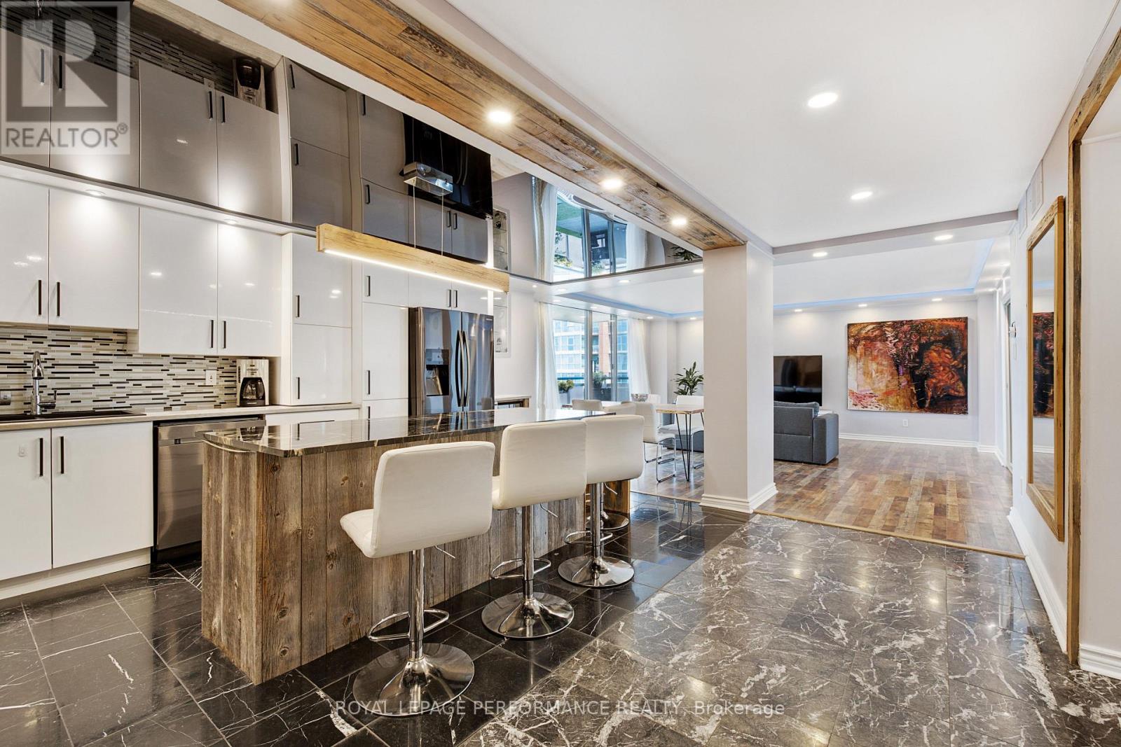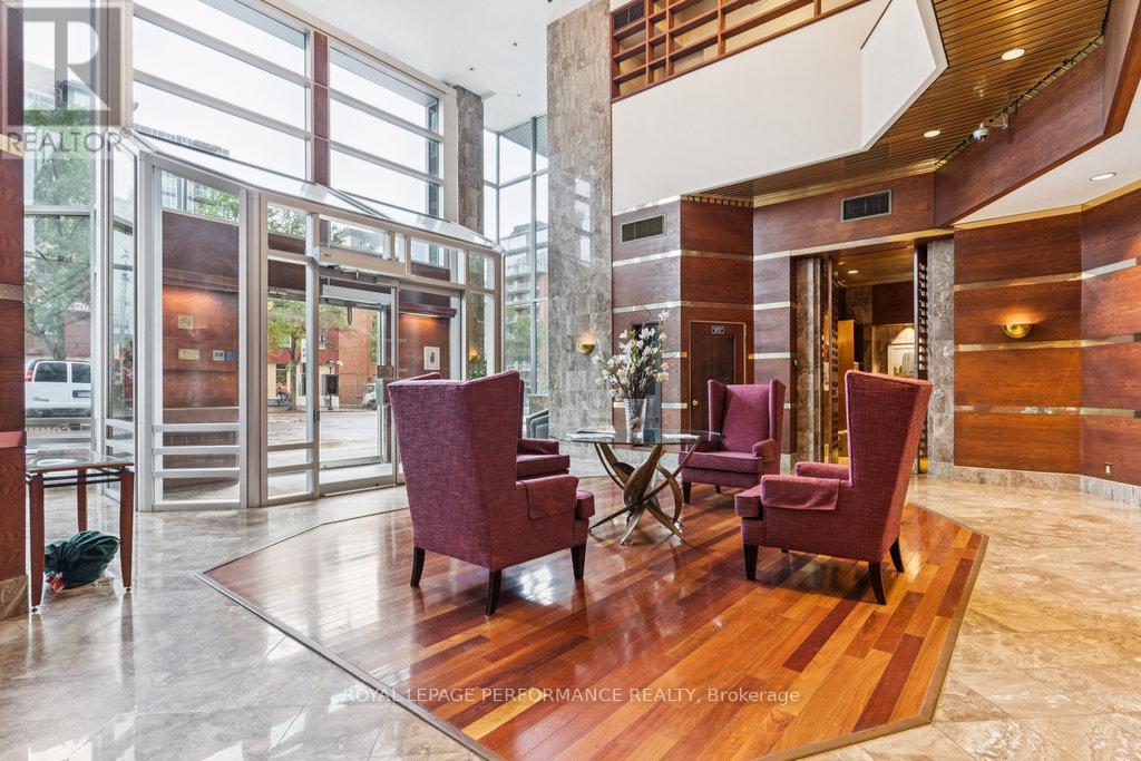 Experience elevated living at 160 George Street, a prestigious address in Ottawa's vibrant ByWard Market. Perched on a high floor, this exceptional residence offers a rare penthouse-like feel, enhanced by its stretched ceilings and expansive sense of space-a standout feature that sets it apart from lower-level units in the building. Perfectly situated just steps from the University of Ottawa, Rideau Centre, Parliament Hill, and countless shops and cafés, this bright and spacious 2-bedroom, 2-bathroom home offers over 1,600 square feet of fully renovated luxury. The elevated positioning not only enhances privacy but allows for an abundance of natural light, creating an airy and refined living experience throughout.The custom kitchen is a true showpiece, complete with sleek lacquer cabinetry, marble countertops, stainless steel appliances, a large island, and a built-in wine fridge-designed for both everyday living and effortless entertaining. The open-concept layout flows seamlessly, further emphasized by the unit's impressive ceiling height. The serene primary suite features a walk-in closet and a sleek ensuite bathroom, while the second bedroom offers versatility as a second bedroom, guest room, or spacious home office. Both modern bathrooms are beautifully finished with high-end details, creating a spa-like retreat at home. Residents of The St. George enjoy outstanding amenities, all conveniently located on the third floor, including a heated indoor pool, fitness centre, sauna, guest suite, 24-hour security, and a beautifully maintained terrace with BBQs.This unit also includes one underground parking space and an exclusive-use storage locker. Don't miss your chance to own a high-floor residence with a rare penthouse feel in one of Ottawa's most sought-after locations. Book your showing today! (id:28469)