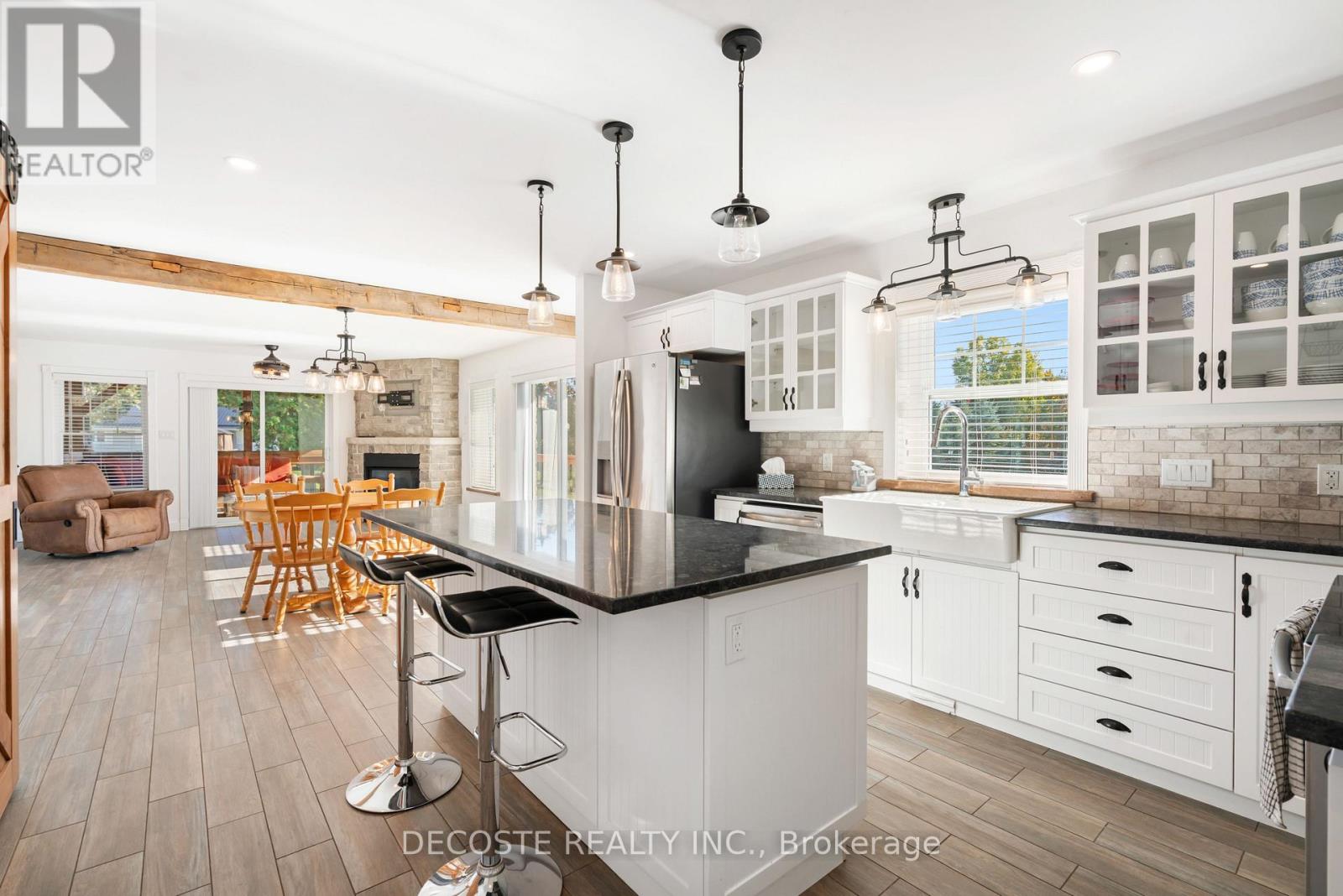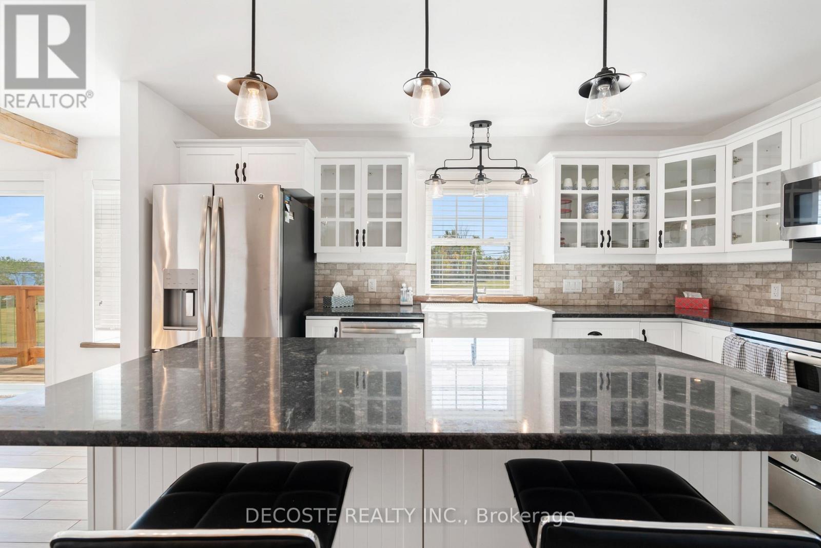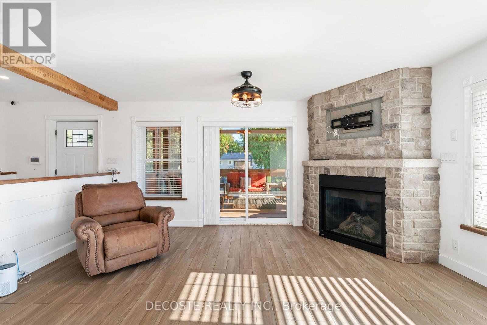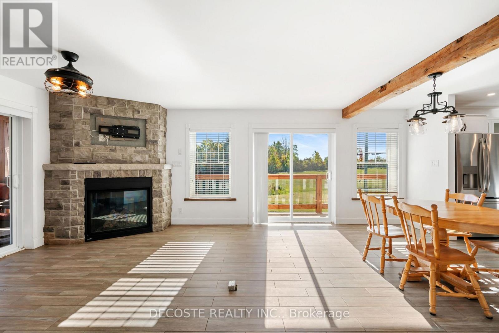 Spectacular Home with a Magnificent View of Loch Garry Lake! Built in 2017 with quality craftsmanship, this raised bungalow offers stunning lake views and modern comfort. The stone exterior and two-sided wraparound deck set the tone for relaxed lakeside living. Enjoy the enclosed 3-season porch featuring a built-in propane fireplace and TV area - the perfect spot to unwind year-round. Additional highlights include an attached single-car garage, a walk-out basement with potential for an in-law suite, and radiant floor heating throughout for cozy winters, complemented by a heat pump for efficient air conditioning in summer. The main floor showcases exposed barn beams, a bright modern kitchen with a farmhouse sink, quartz countertops, built-in oven and stove, and stainless steel appliances. Ceramic flooring, ceiling fans, and two sets of patio doors leading to the deck and covered porch add to the homes charm and functionality. With direct access to Loch Garry and a beautiful sandy beach, this property offers more than just a home its a retreat where you can truly relax and enjoy life by the water. (id:28469)