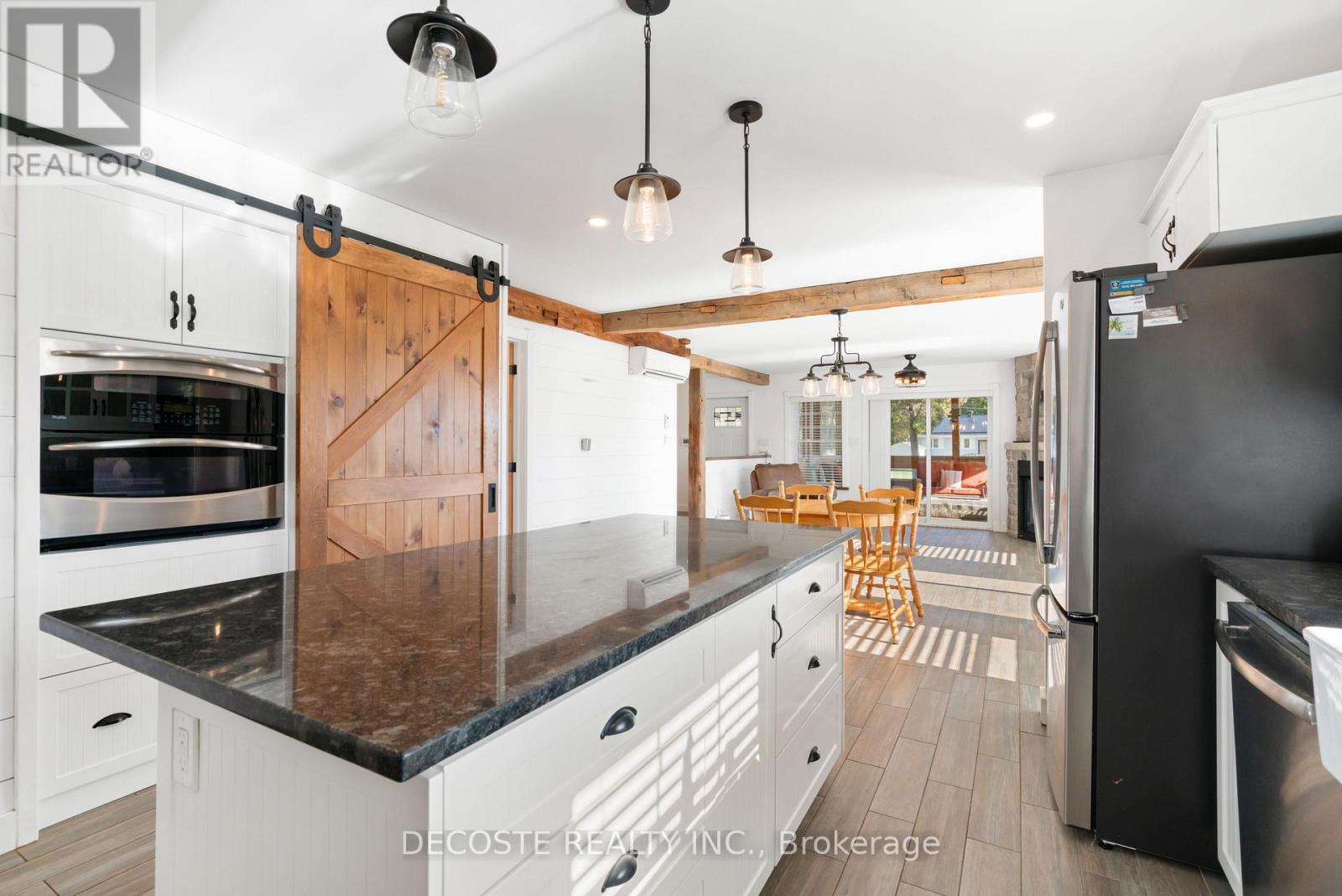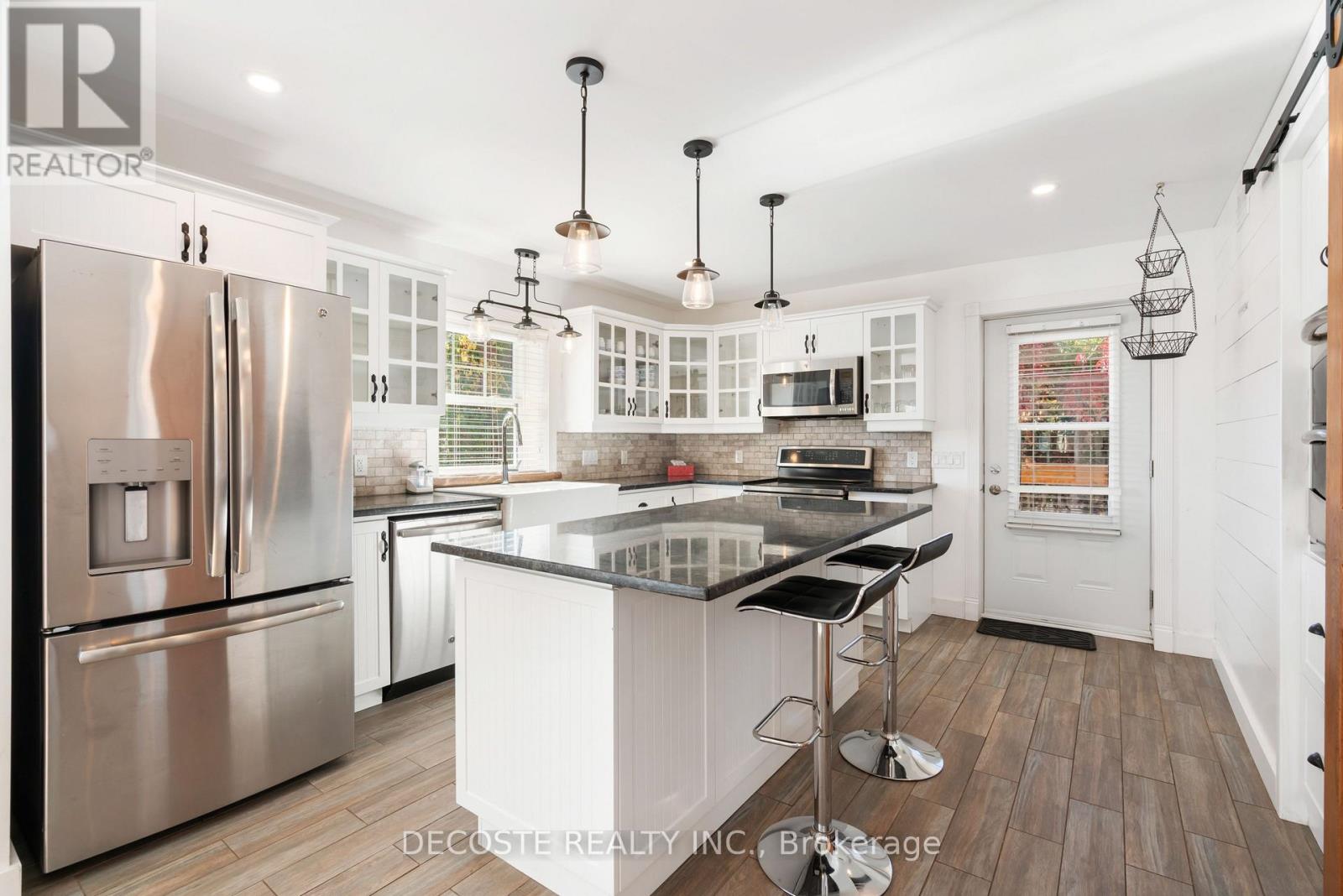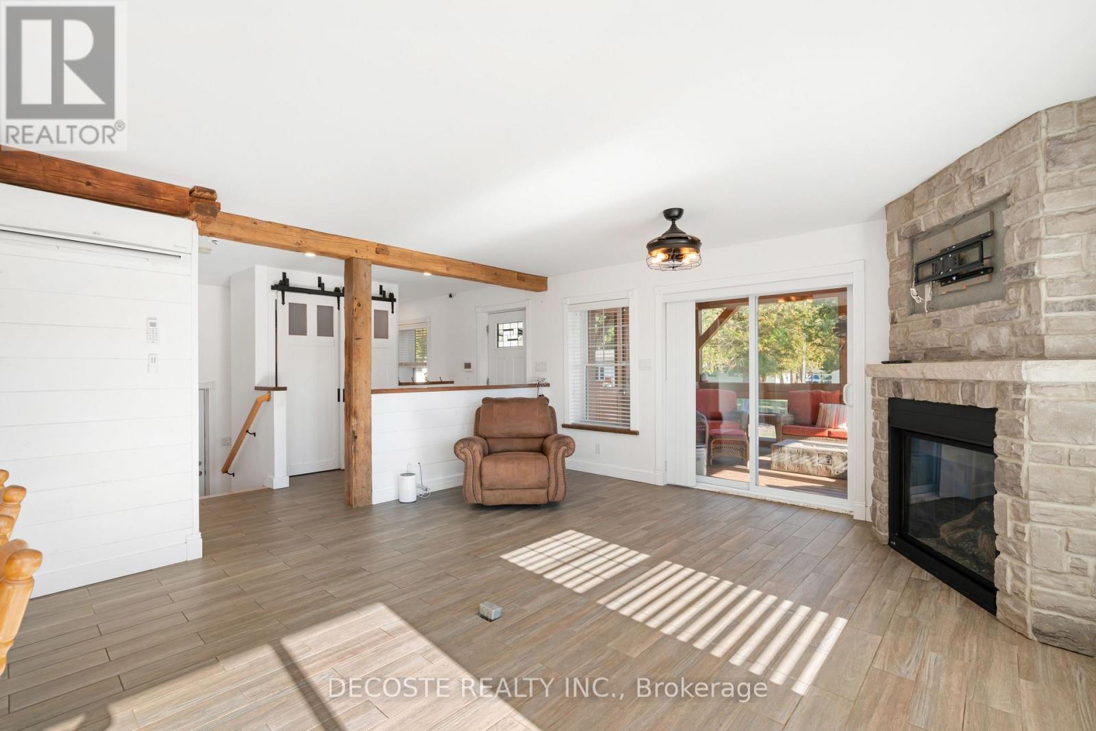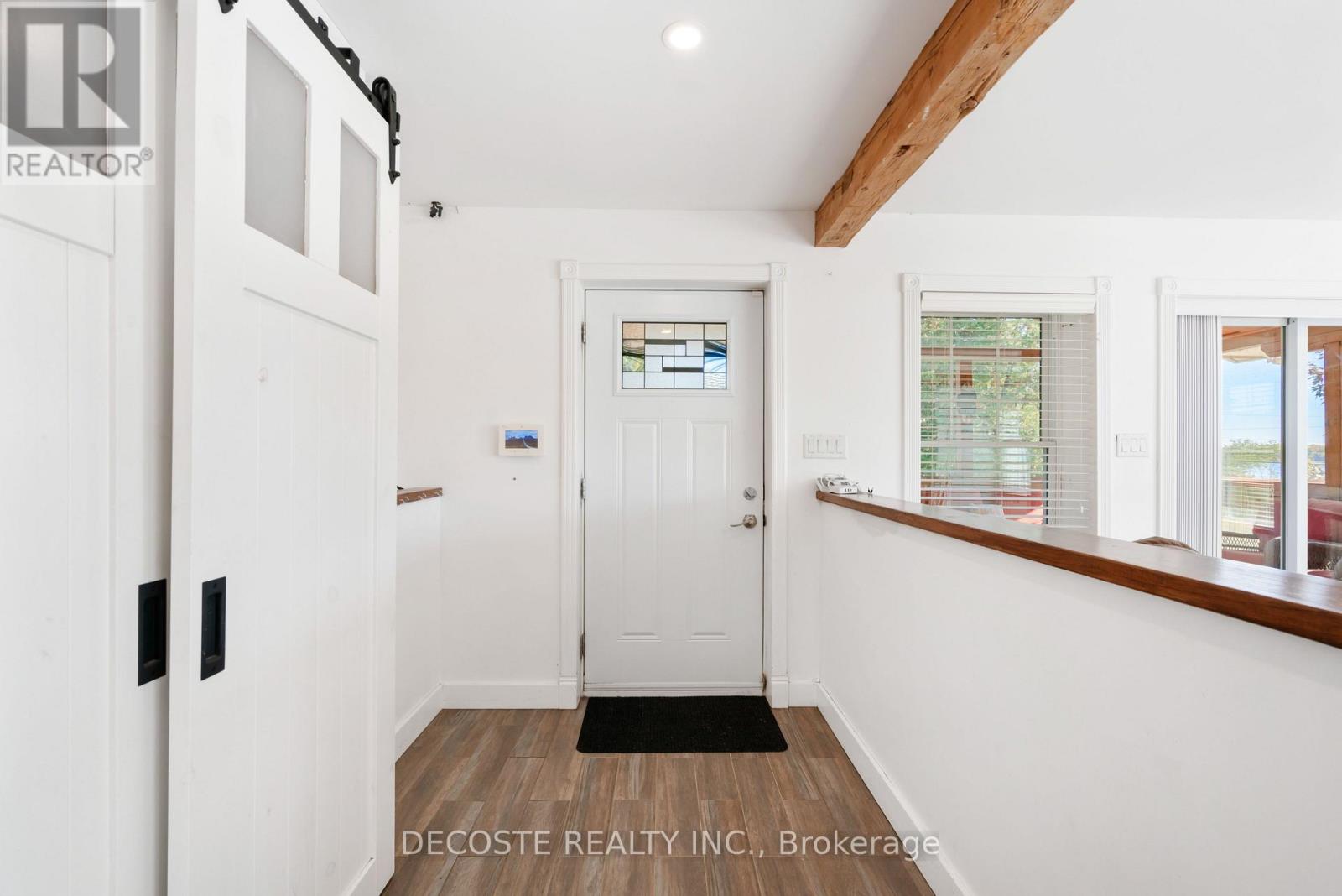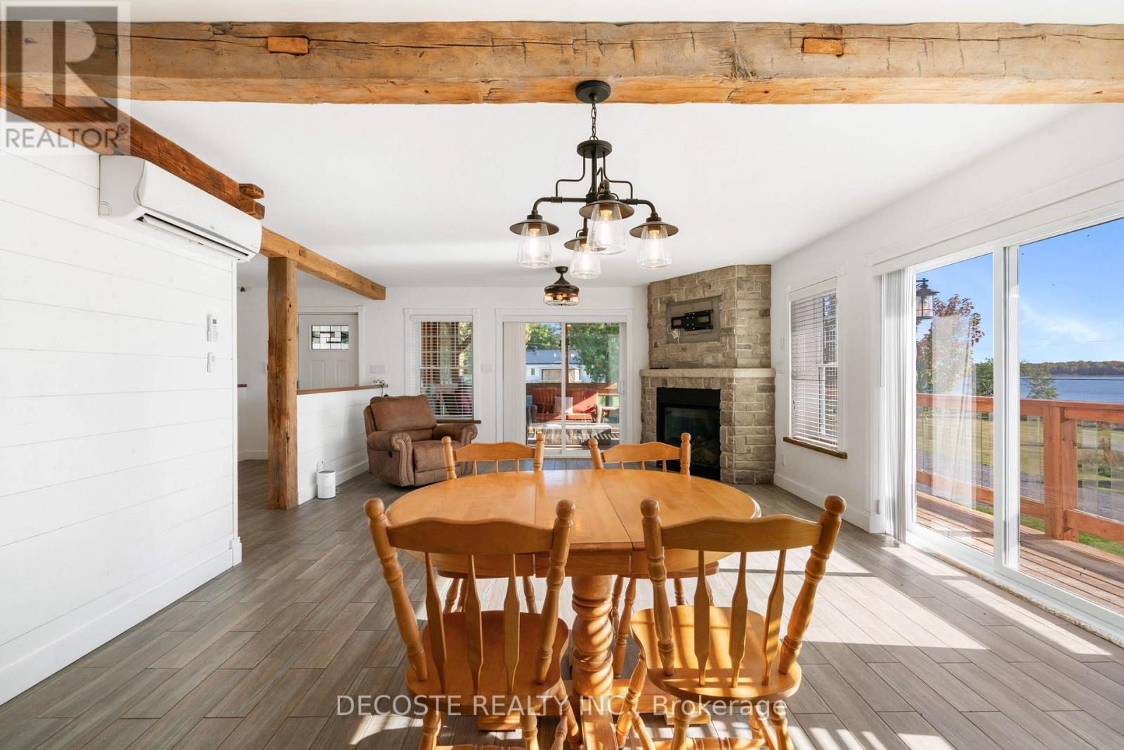 Spectacular Home with a Magnificent View of Loch Garry Lake! Built in 2017 with quality craftsmanship, this raised bungalow offers stunning lake views and modern comfort. The stone exterior and two-sided wraparound deck set the tone for relaxed lakeside living. Enjoy the enclosed 3-season porch featuring a built-in propane fireplace and TV area - the perfect spot to unwind year-round. Additional highlights include an attached single-car garage, a walk-out basement with potential for an in-law suite, and radiant floor heating throughout for cozy winters, complemented by a heat pump for efficient air conditioning in summer. The main floor showcases exposed barn beams, a bright modern kitchen with a farmhouse sink, quartz countertops, built-in oven and stove, and stainless steel appliances. Ceramic flooring, ceiling fans, and two sets of patio doors leading to the deck and covered porch add to the homes charm and functionality. With direct access to Loch Garry and a beautiful sandy beach, this property offers more than just a home its a retreat where you can truly relax and enjoy life by the water. (id:28469)