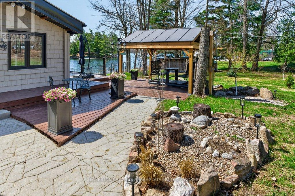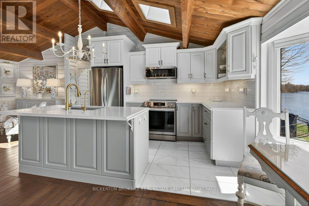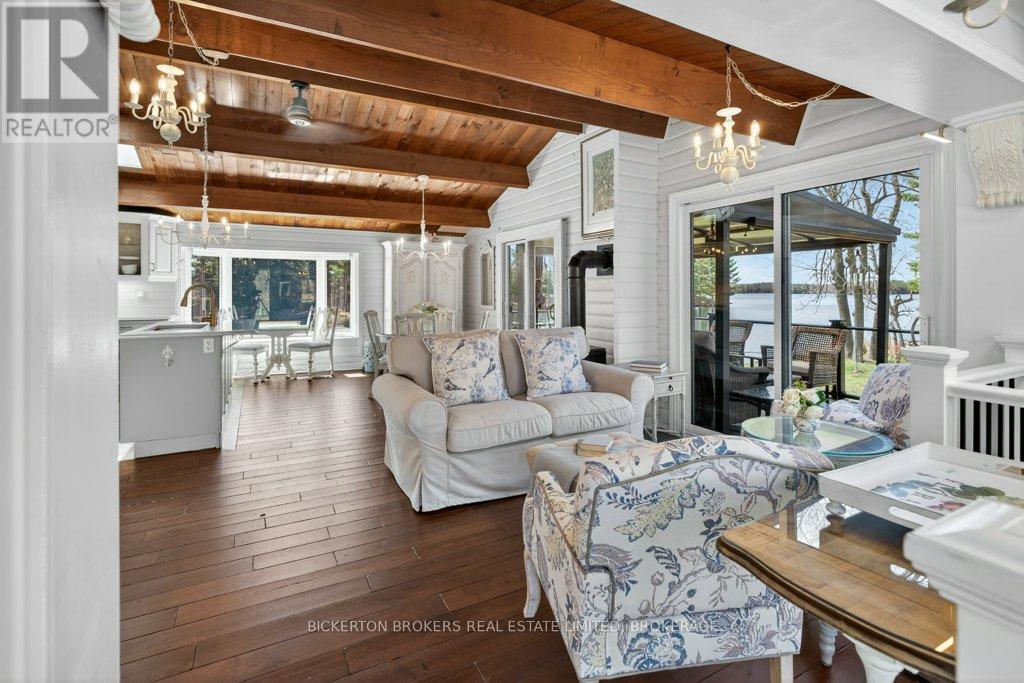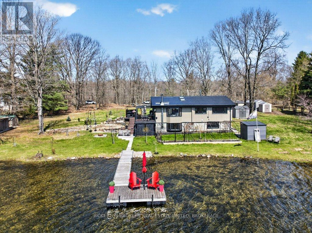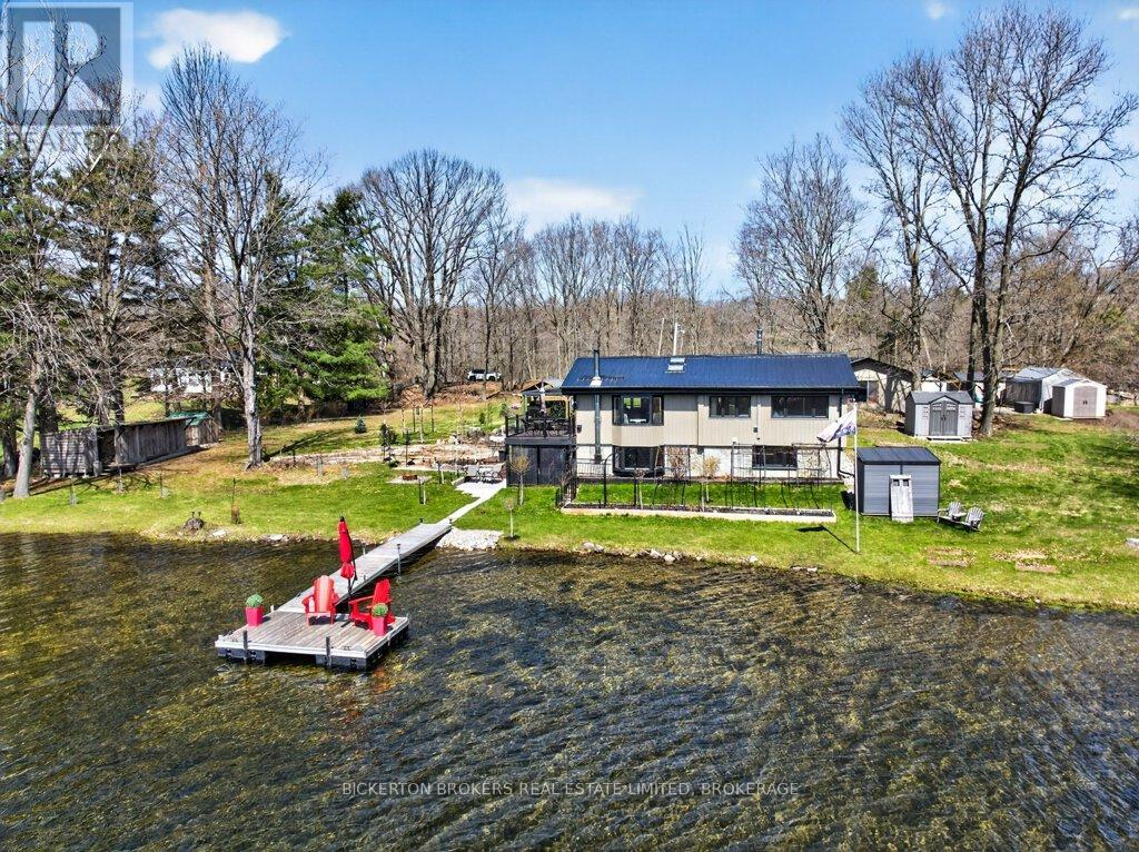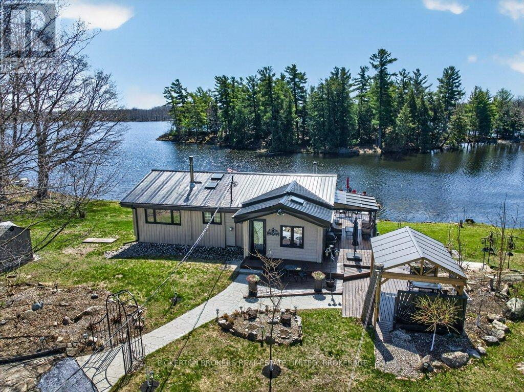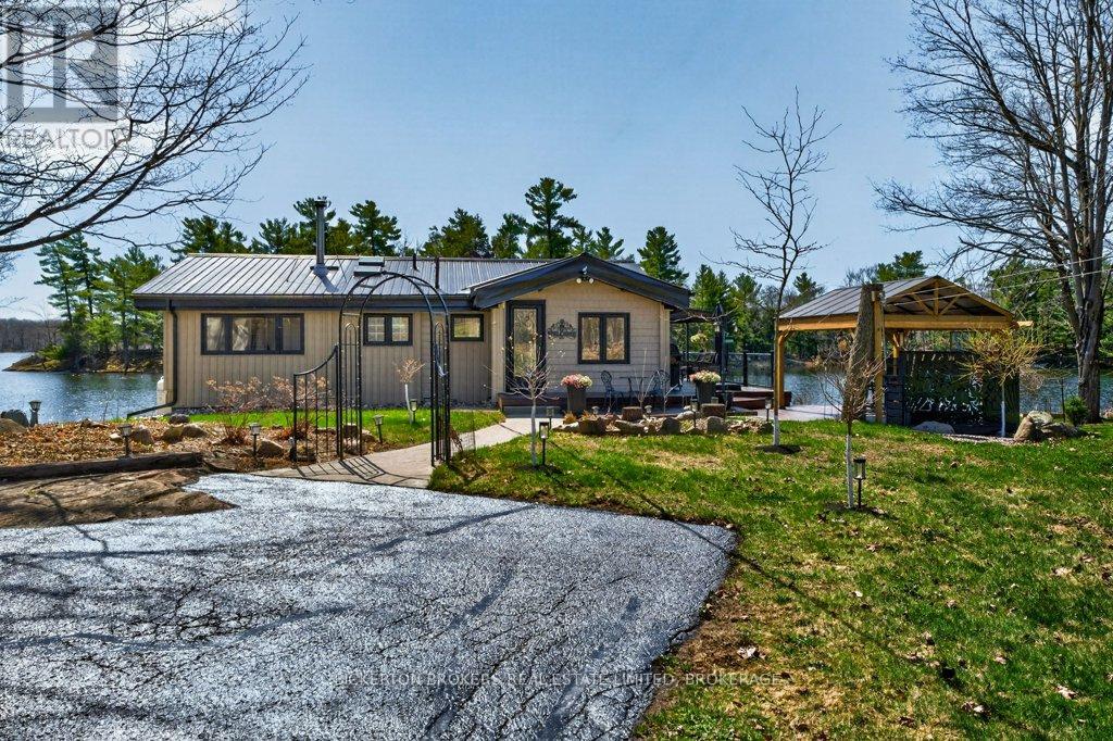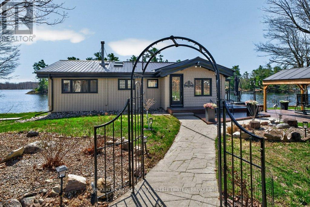 Welcome to 1927 Hogan Road, a beautifully renovated 4-season waterfront bungalow on the shores of Sydenham Lake, offering the perfect blend of modern elegance and relaxed lakeside living. Set on a private acre with abundant wildlife, this exceptional property captures both breathtaking sunrises and sunsets, along with excellent fishing and endless water activities. The main level features a bright, open-concept design with stunning lake views, two spacious bedrooms, a stylish 4-piece bathroom, and convenient main-floor laundry-ideal for easy everyday living. The walk-out lower level is mostly finished and offers incredible water views, a cozy woodstove, and a 3-piece bathroom. Step outside to professionally landscaped grounds with beautiful perennial gardens, a large patio, and an expansive deck-perfect for entertaining or unwinding by the water. Enjoy easy access to the lake with your private aluminum dock, ideal for swimming, boating, and soaking in the peaceful surroundings. A paved driveway leads to a detached two-car garage plus an additional drive-in carport, providing ample parking and storage. Located just 10 minutes from Sydenham and 20 minutes from Kingston, this turnkey waterfront home offers an exceptional lifestyle in a sought-after location. (id:28469)