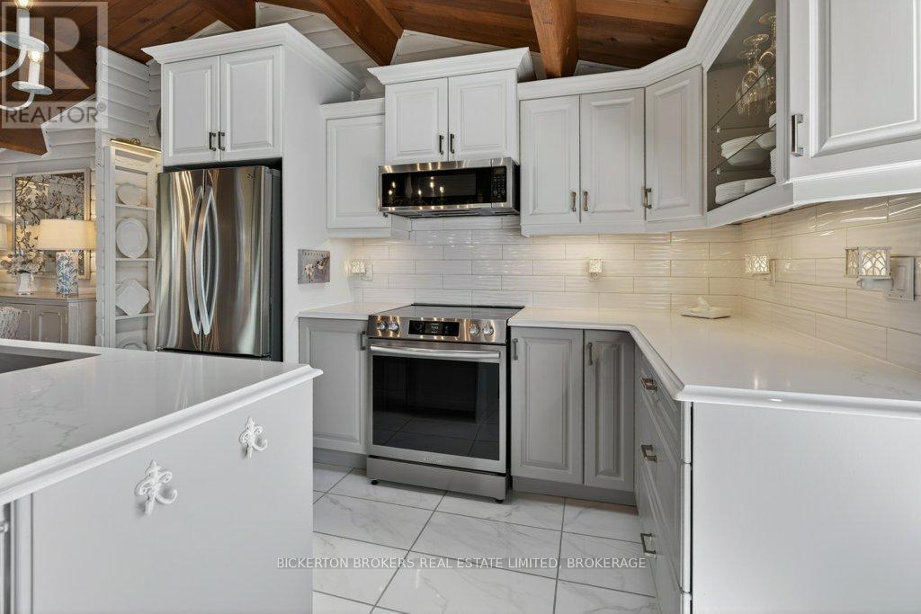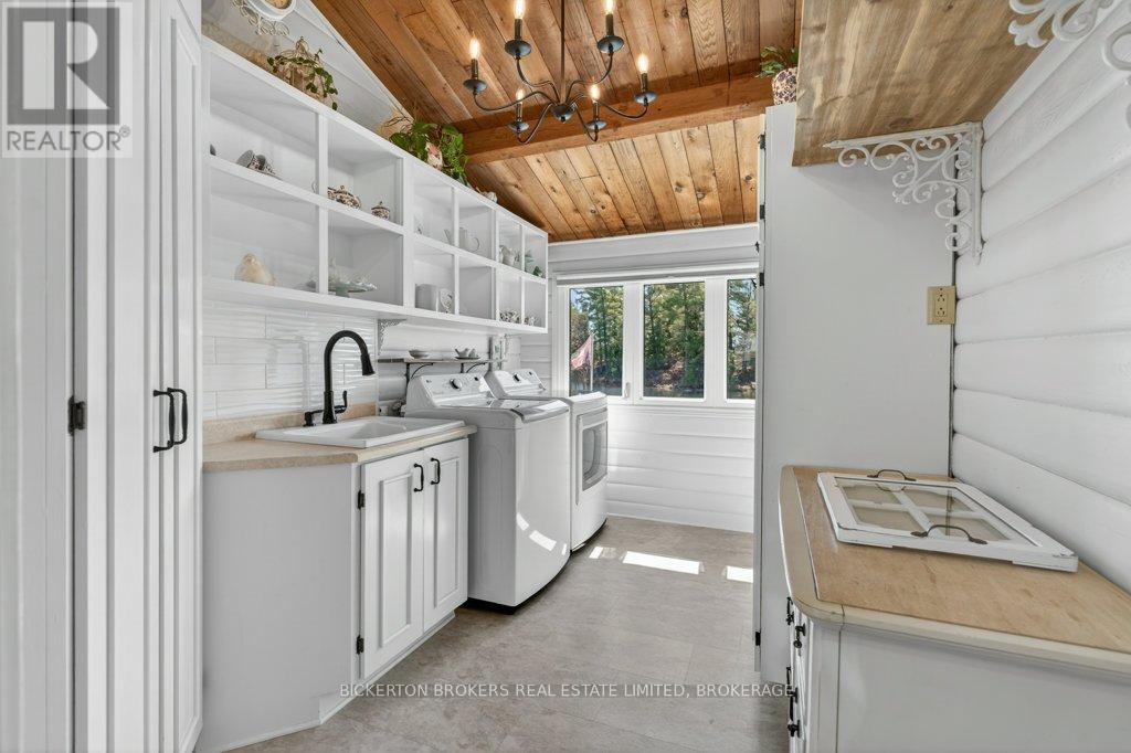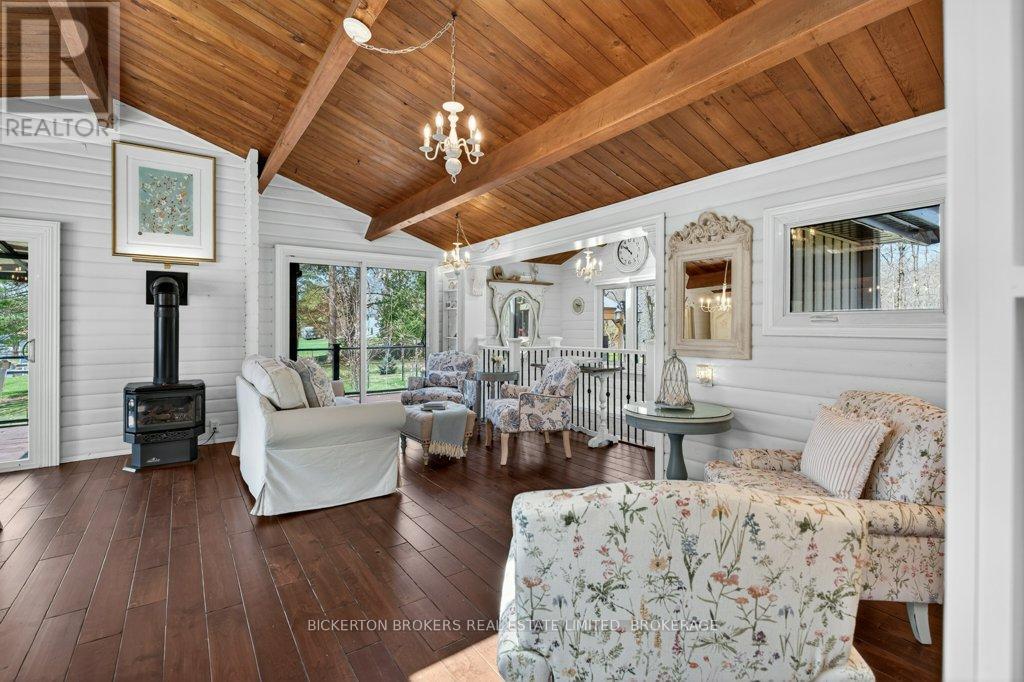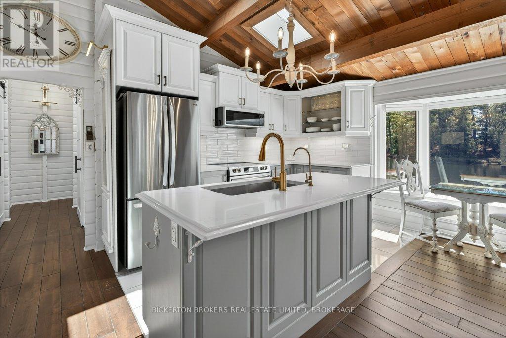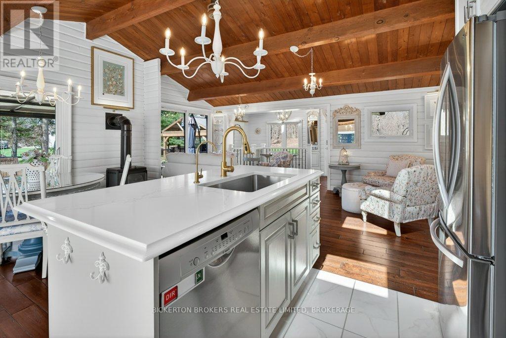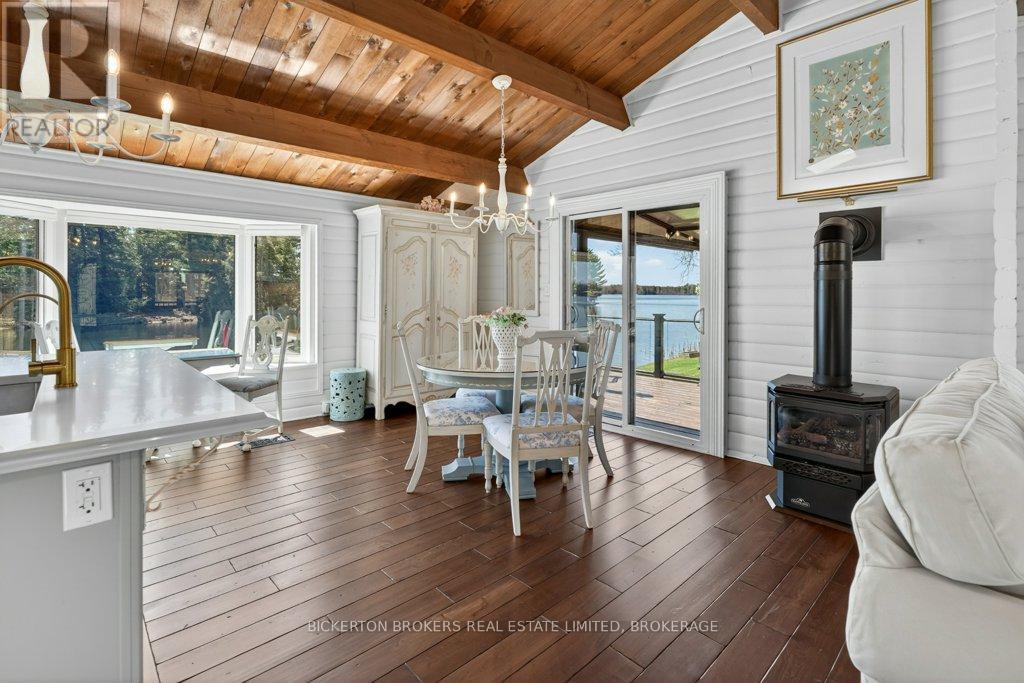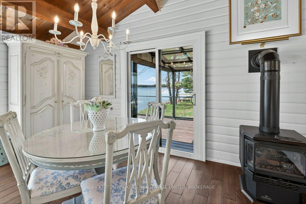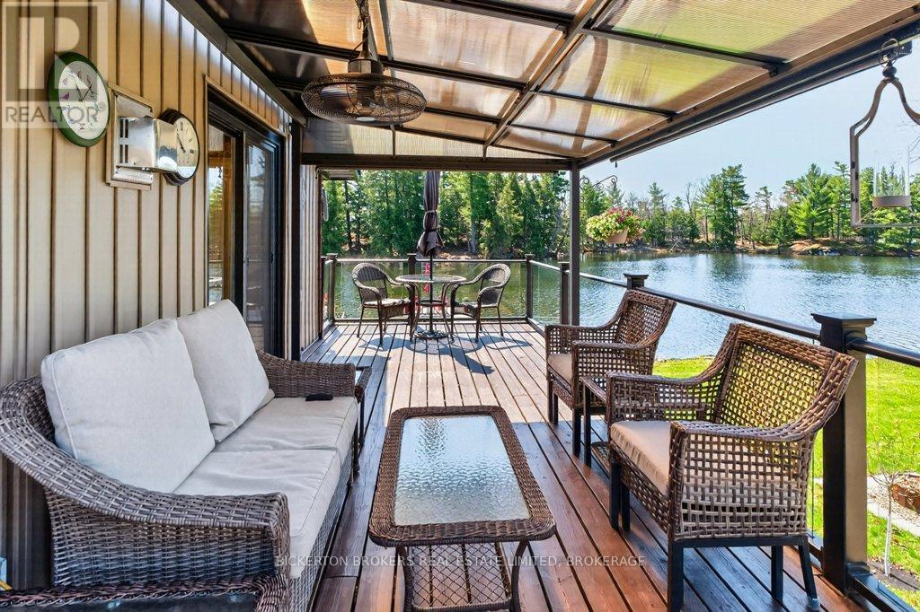 Welcome to 1927 Hogan Road, a beautifully renovated 4-season waterfront bungalow on the shores of Sydenham Lake, offering the perfect blend of modern elegance and relaxed lakeside living. Set on a private acre with abundant wildlife, this exceptional property captures both breathtaking sunrises and sunsets, along with excellent fishing and endless water activities. The main level features a bright, open-concept design with stunning lake views, two spacious bedrooms, a stylish 4-piece bathroom, and convenient main-floor laundry-ideal for easy everyday living. The walk-out lower level is mostly finished and offers incredible water views, a cozy woodstove, and a 3-piece bathroom. Step outside to professionally landscaped grounds with beautiful perennial gardens, a large patio, and an expansive deck-perfect for entertaining or unwinding by the water. Enjoy easy access to the lake with your private aluminum dock, ideal for swimming, boating, and soaking in the peaceful surroundings. A paved driveway leads to a detached two-car garage plus an additional drive-in carport, providing ample parking and storage. Located just 10 minutes from Sydenham and 20 minutes from Kingston, this turnkey waterfront home offers an exceptional lifestyle in a sought-after location. (id:28469)
