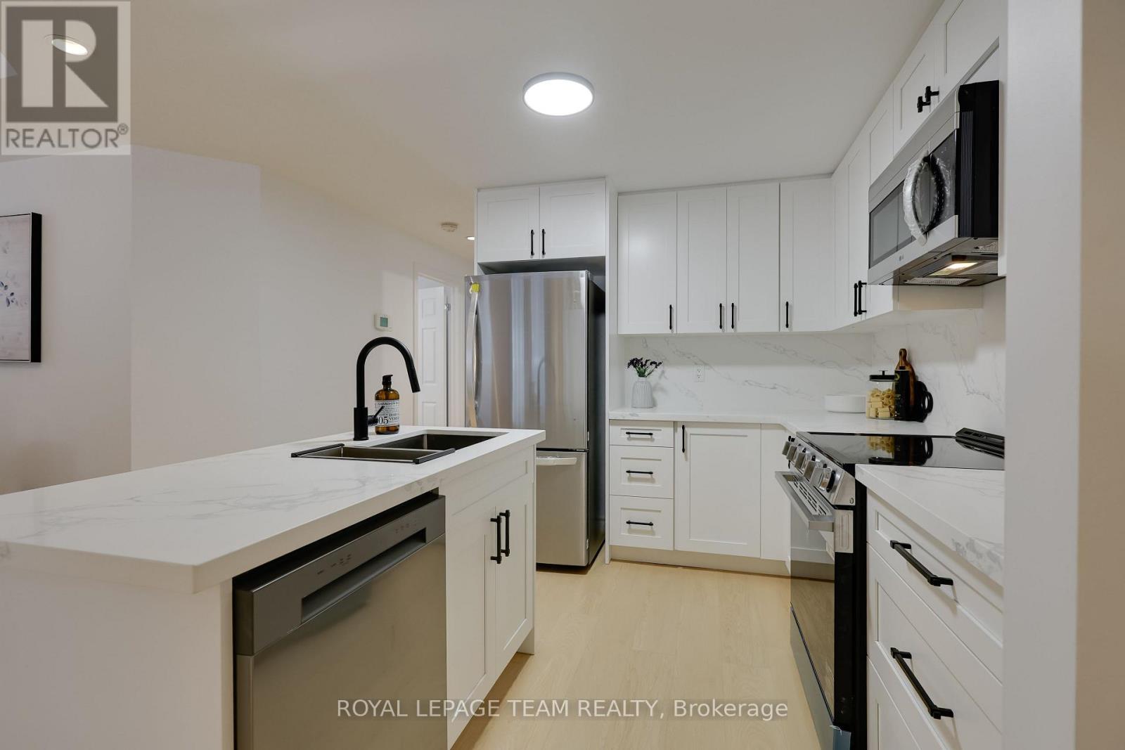 Welcome to this beautifully renovated condo located in the heart of Centrepointe, offering comfortable and convenient living in one of Ottawa's most desirable communities. This bright and modern unit features 2 spacious bedrooms plus a versatile office, along with 1.5 bathrooms and one assigned parking space, making it ideal for professionals, students, or small families. The home has been fully renovated from top to bottom, featuring a brand new kitchen with contemporary cabinetry, stainless steel appliances, and quartz countertops. Luxury vinyl flooring, fresh paint, and modern finishes create a clean and stylish interior, while the cozy gas fireplace adds warmth and character to the living area. Large windows bring in abundant natural light, and the private balcony with designated BBQ space provides a perfect spot for relaxing or entertaining outdoors.Located in a quiet end-unit setting backing onto green space, this condo offers both privacy and convenience. Residents enjoy easy access to parks, walking trails, and nearby amenities, with Centrepointe Park just steps away. The property is also minutes from Algonquin College and College Square shopping, with restaurants, grocery stores, and daily conveniences all close by. Public transit is extremely accessible with a bus stop nearby, making commuting around Ottawa simple and convenient. This move-in ready condo combines modern upgrades, a functional layout, and a prime location, offering a comfortable and low-maintenance lifestyle in the Centrepointe community. (id:28469)