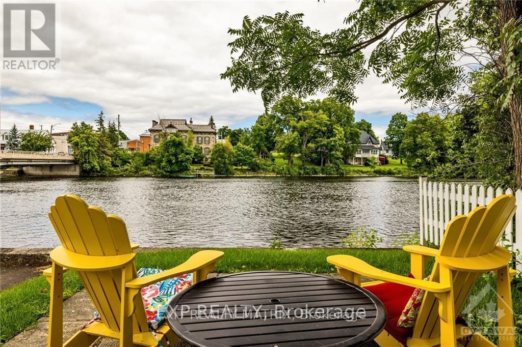 WATERFRONT! HEAT, WATER & PARKING INCLUDED.Experience refined living in this beautifully updated 2 bed, 1 bath 2nd-floor apartment, showcasing breathtaking river views through oversized picture windows and a rare, spacious outdoor deck looking over the Mississippi river. Tailored for professionals and active retirees, this residence offers style, comfort, and a premium location right in the heart of downtown Almonte.Step outside and enjoy Main Street just steps from your door - boutique shops, cafés, restaurants, grocery, and daily conveniences all within a few blocks. Festivals, live music, and community events create a vibrant atmosphere year-round. Outdoor enthusiasts will appreciate being walking distance to the rail trail, the beach, fairgrounds, and scenic riverside paths.Inside, the home features abundant natural light, gleaming hardwood floors, an updated kitchen, fully renovated bathroom (2024), and 9ft ceilings for an airy, elegant feel. The generous deck provides a private retreat overlooking the river - perfect for morning coffee, evening wine, or entertaining with a view.A rare blend of convenience, charm, and waterfront serenity - ideal for those seeking quality living in one of Almonte's most desirable downtown locations. (id:28469)