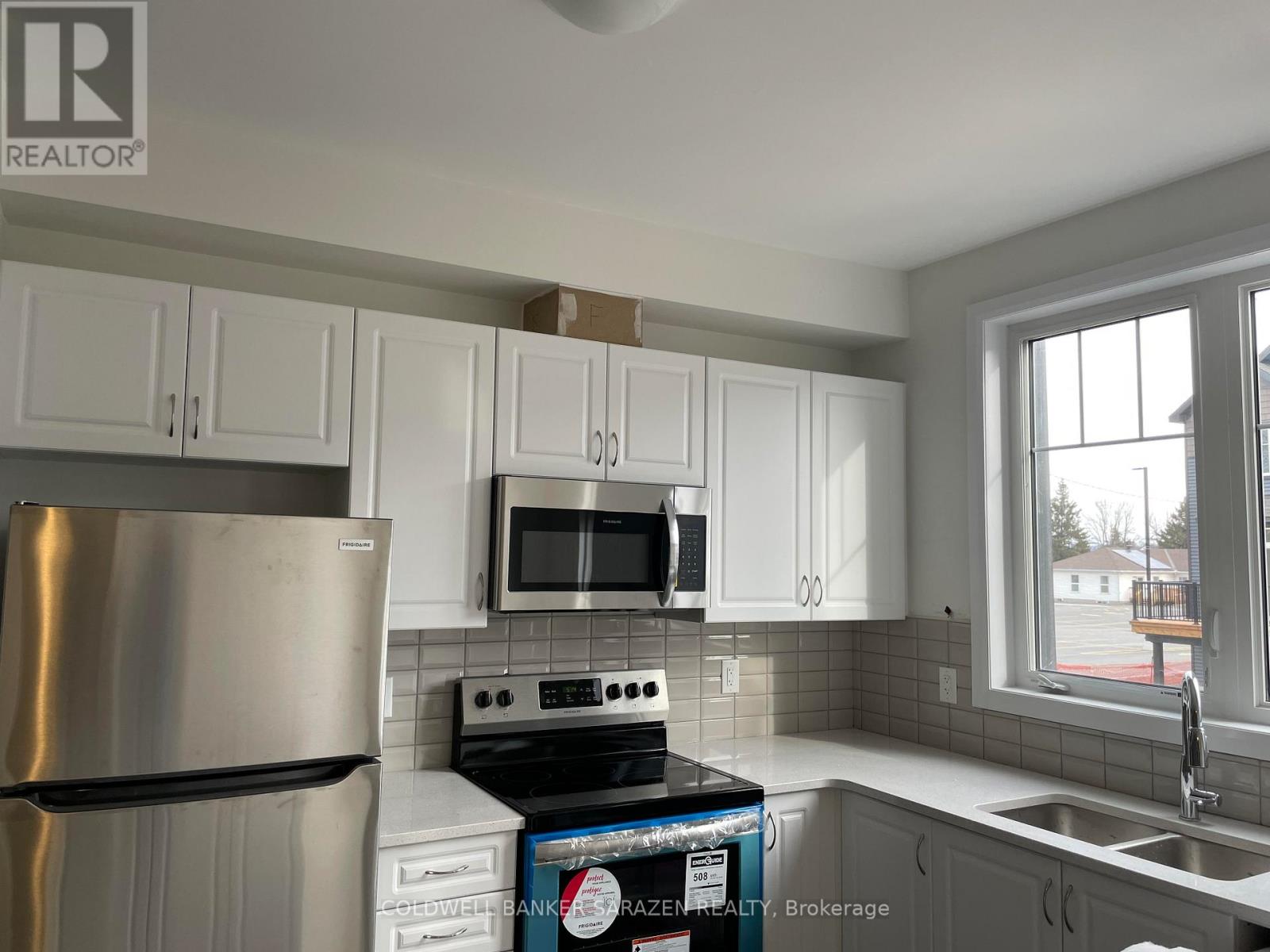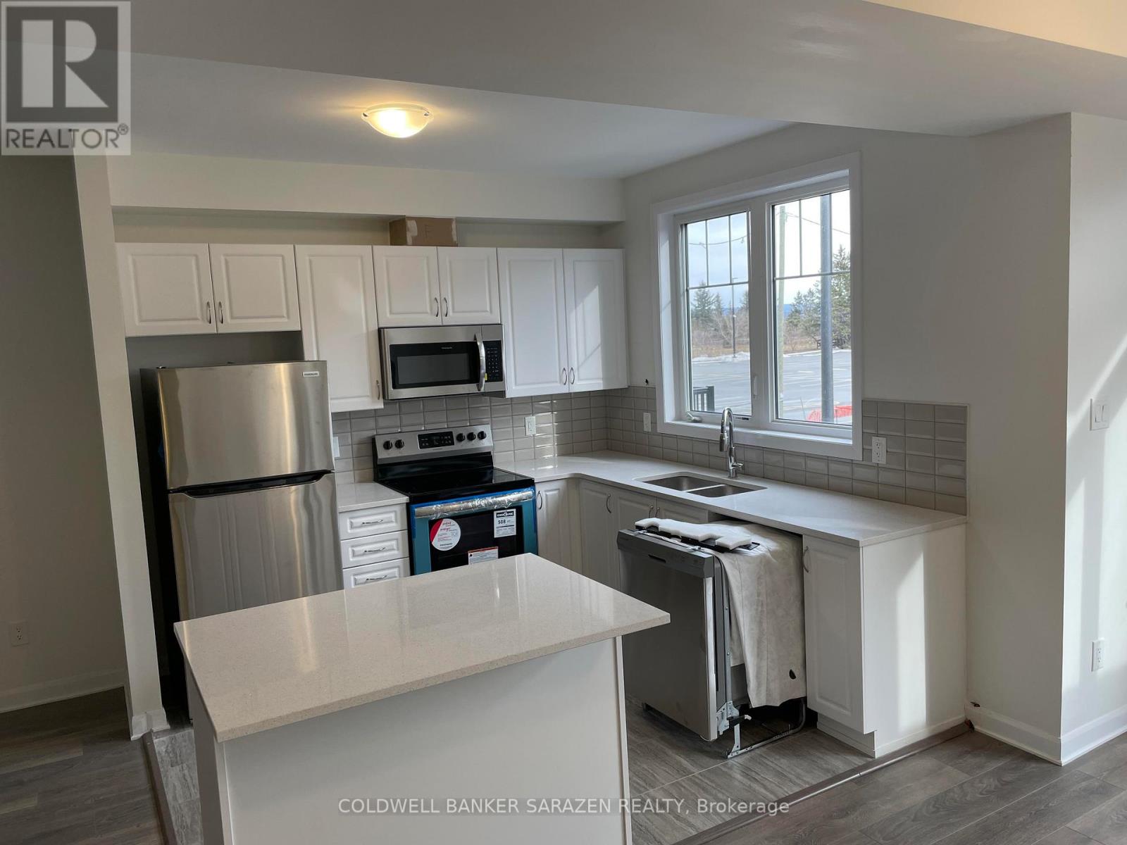 Minto Communities "The Broadway" model around1,268 sq ft. Walking distance to Kanata Hi-Tech Park, schools, transit, shopping malls, and easy access to many golf & country clubs. Ground Flr has laundry area, utilities rm and additional storage space. 2/F features open concept of kitchen, dinning and living areas. Stainless steel appliances,sparkling quartz countertop w/back-splash, a large kitchen island, and plenty of cabinetry. Enjoy the private balcony/deck w/AC and gorgeous view of the neighborhood. The top level (3/F) features 2 bedrooms w/a full main bathroom. Hot Water Tank about $45~50 /month. Landlord covers property tax, around $73.00/Month to cover Common Area Maintenanceinclude snow removal. Tenant to pay all utilities (electricity, gas, water/sewer, tankless water tank rental), tenant insurance, cable/phone/internet,snow removal on own driveway/lawn removal. Renting this townhouse your dream home! Available 1st April 2026. Require 24 hours notice to exiting tenants for showing. Pls remove shoes and turn off lights after showings. Rental Application, Agreement to Lease, with Credit Report & income confirmation. (id:28469)