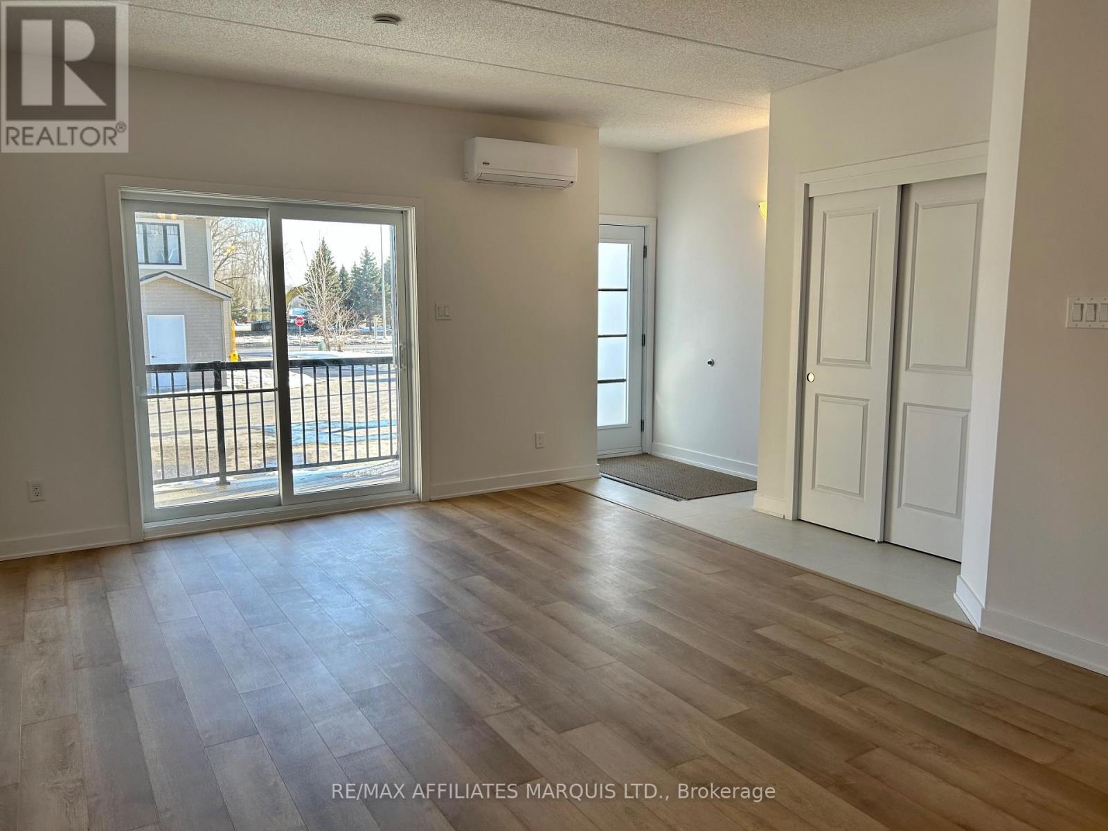 Immediate occupancy available! Now offered for rent at $2,300 per month plus utilities at Promenade Miller, Cornwall's newest low rise condominium development ideally located in the heart of downtown. This prime main floor unit features a thoughtfully designed 2 bedroom, 1 bathroom layout with open concept living, in suite laundry, dedicated parking, and ample storage space. The unit comes complete with brand new appliances, offering modern convenience and a fresh, move in ready feel. Built with quality construction and soundproofing in mind, you will appreciate the quiet and comfortable living environment throughout. Thanks to the superior construction standards and energy efficient design, utility costs are very affordable, making this an excellent option for those seeking predictable and manageable monthly expenses. Enjoy unmatched convenience just steps from Lamoureux Park, the Civic Complex, municipal pool, curling centre, recreational trails, the waterfront, Marina 200, shopping, restaurants, and essential services. Everything you need is right outside your door. A fantastic opportunity to enjoy modern, low maintenance living in one of Cornwall's most walkable and sought after location. (id:28469)