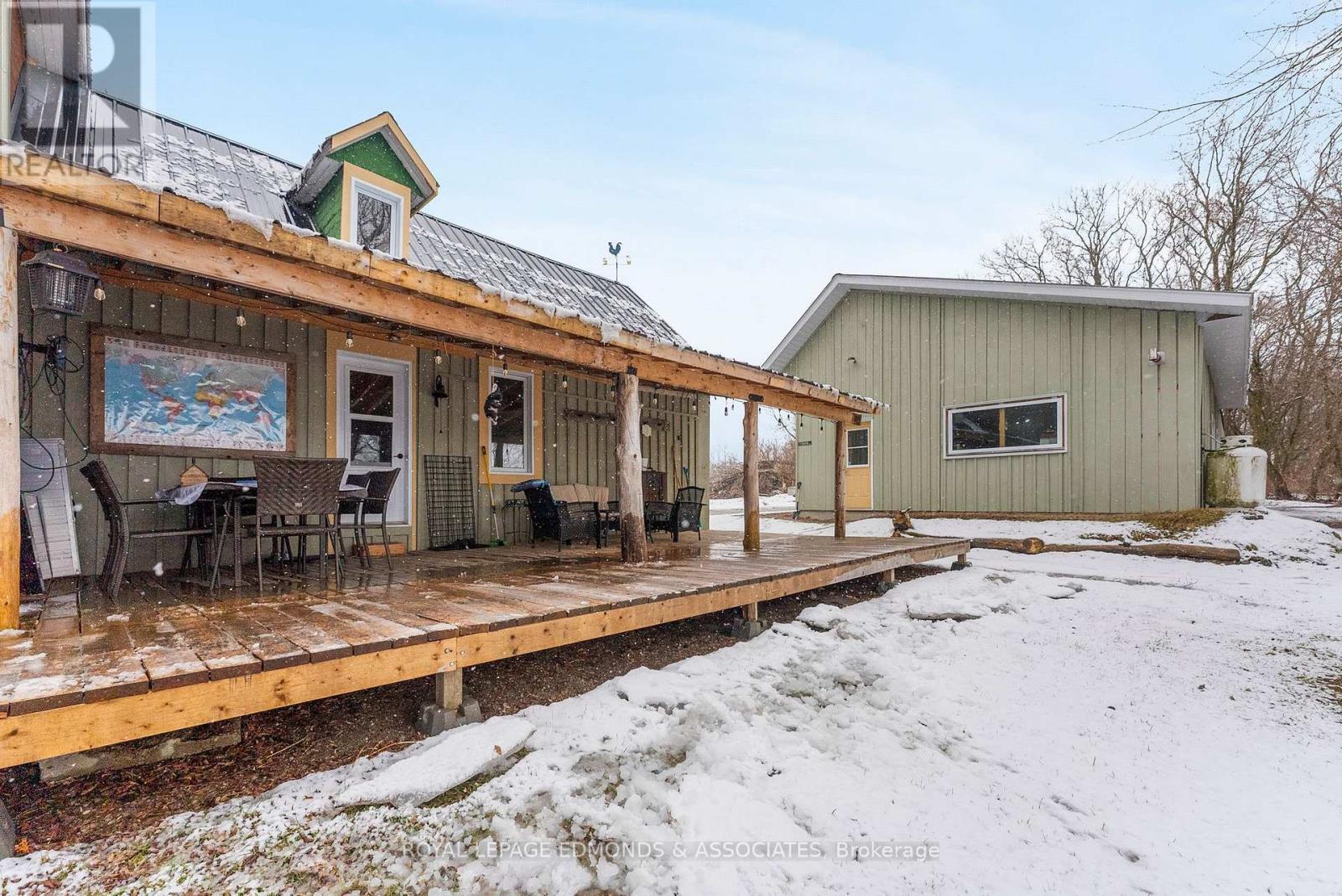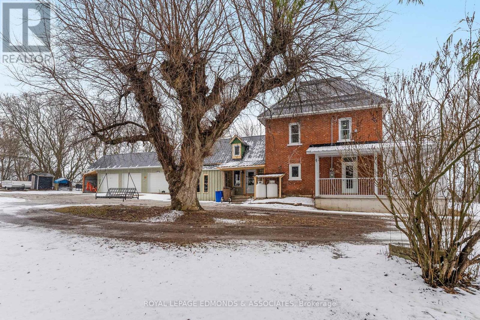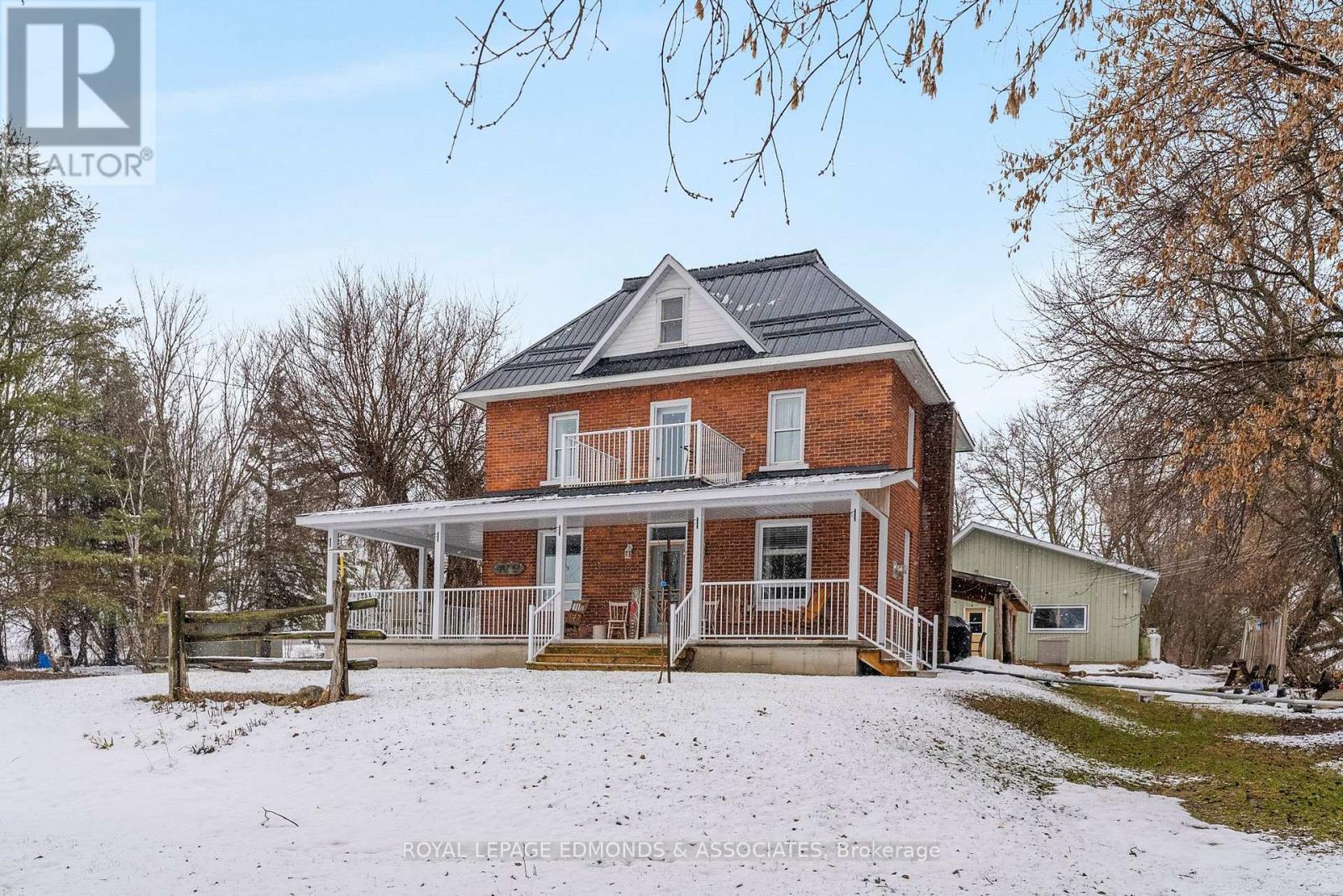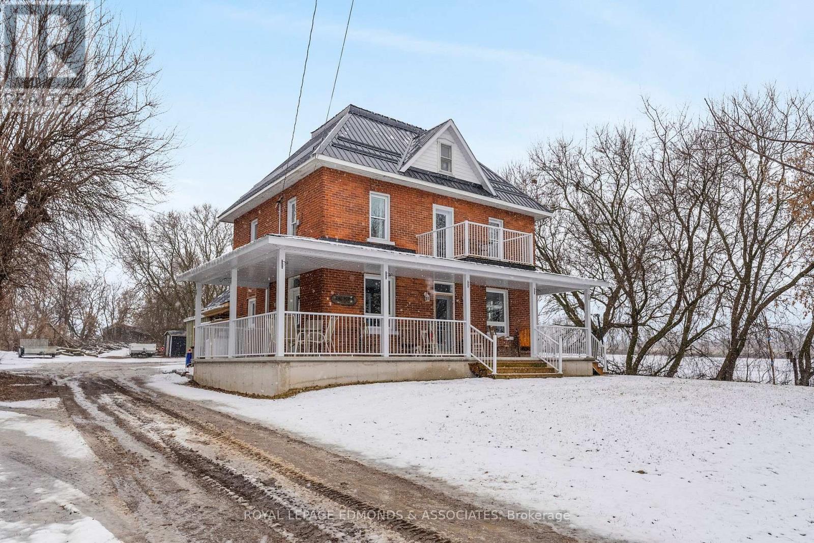 Escape to the lifestyle you've been dreaming of with this truly captivating hobby farm set on 1.36 beautifully acres. This show-stopping 4 bedroom, 1.5 bath brick farmhouse blends timeless character with extensive modern upgrades, all wrapped in the charm of a stunning covered wrap-around porch that instantly sets the tone for relaxed country living. Step inside and you'll fall in love with the heart of the home, a gorgeous country kitchen where rustic charm meets everyday luxury. Featuring an oversized eat-in island, farmhouse sink, and warm finishes, it's the perfect space for gathering, hosting, and family time. The adjacent formal dining area is filled with natural light and offers impressive built-in storage, while the expansive living room delivers both comfort and versatility with exposed beams, a cozy propane stove, and space for entertaining, dining, or even a games area. The main level continues to impress with a spacious primary bedroom complete with its own propane stove and convenient cheater access to a beautifully updated 4-piece bathroom with laundry. Upstairs, you'll find three generous bedrooms, a half bath, and two additional rooms ready to be transformed into whatever your family needs, office space, playrooms, or extra bedrooms. The spray-foamed attic offers even more untapped potential for future living space. Step outside and take it all in! Another covered deck off the living room, mature trees offering privacy, and thoughtfully curated landscaping that enhances the natural beauty of the property. The impressive 40' x 24' three-car garage includes a heated and insulated bay, perfect for year-round use, while multiple outbuildings and a charming bunkie provide endless options for storage, hobbies, or guest space. Whether you're envisioning a thriving hobby farm, space to grow your own food, or simply a peaceful country escape for your family, this property delivers the perfect balance of function, beauty, and opportunity. (id:28469)