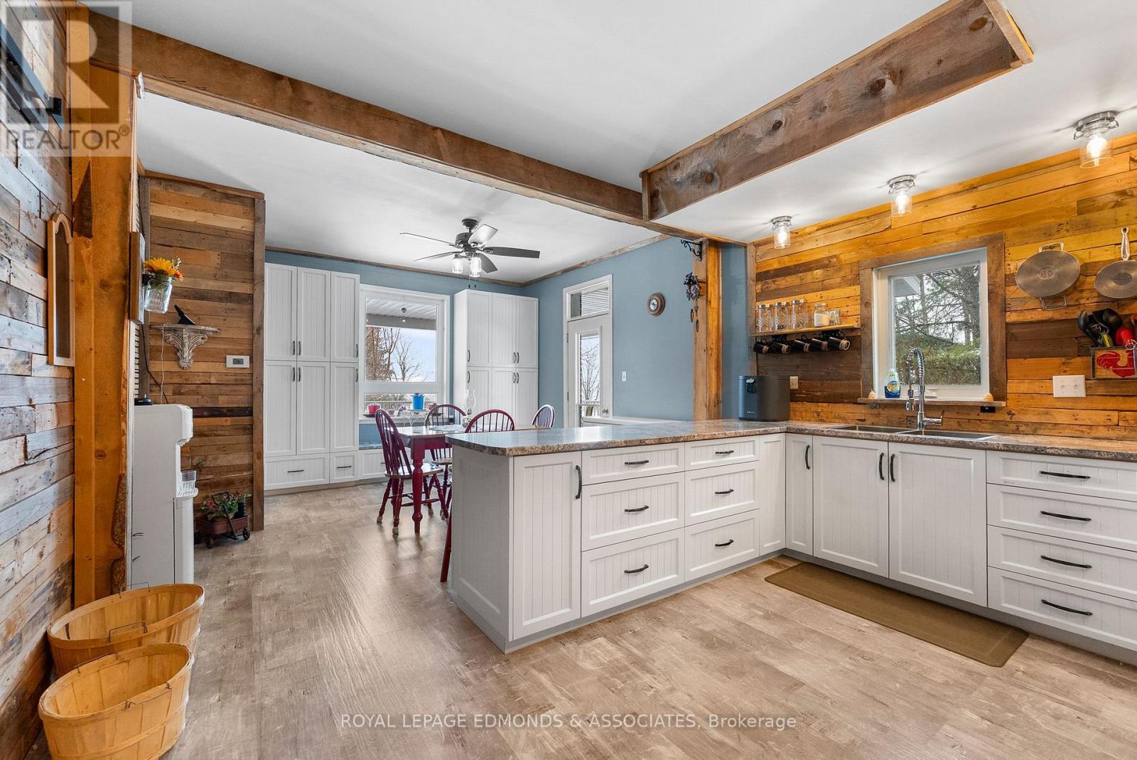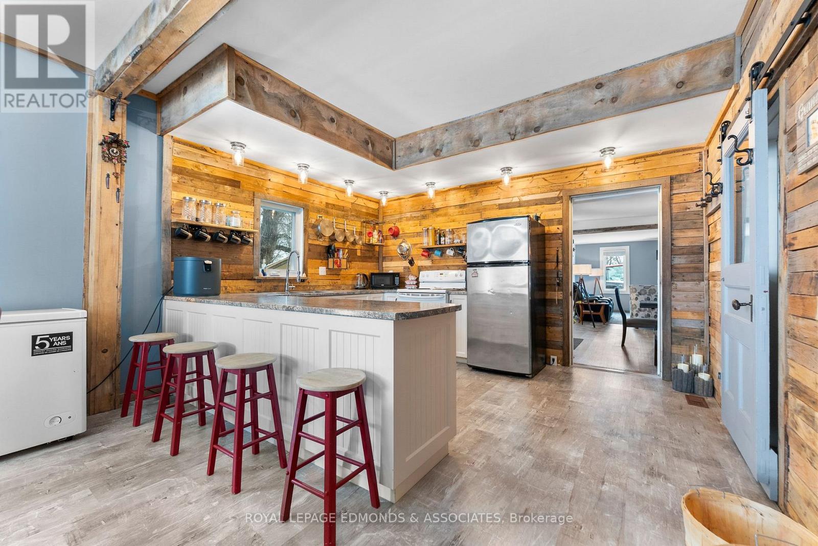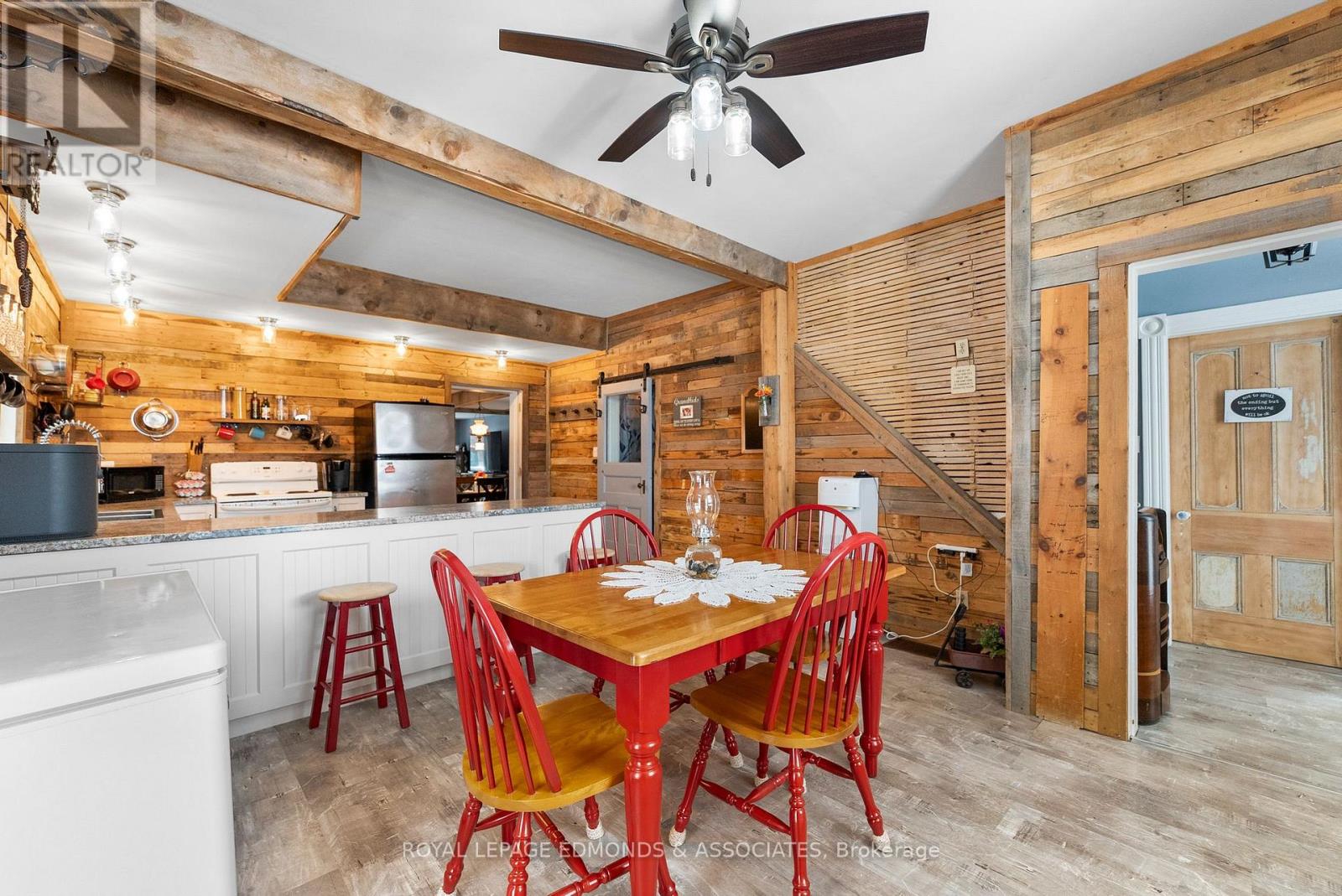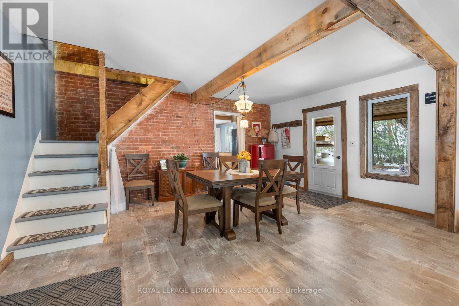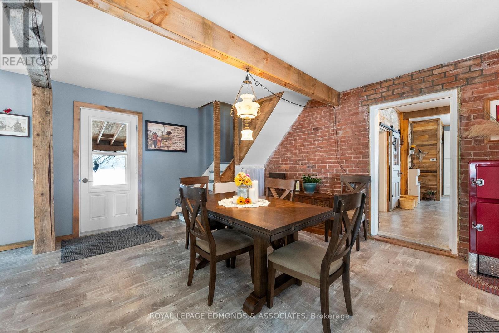 Escape to the lifestyle you've been dreaming of with this truly captivating hobby farm set on 1.36 beautifully acres. This show-stopping 4 bedroom, 1.5 bath brick farmhouse blends timeless character with extensive modern upgrades, all wrapped in the charm of a stunning covered wrap-around porch that instantly sets the tone for relaxed country living. Step inside and you'll fall in love with the heart of the home, a gorgeous country kitchen where rustic charm meets everyday luxury. Featuring an oversized eat-in island, farmhouse sink, and warm finishes, it's the perfect space for gathering, hosting, and family time. The adjacent formal dining area is filled with natural light and offers impressive built-in storage, while the expansive living room delivers both comfort and versatility with exposed beams, a cozy propane stove, and space for entertaining, dining, or even a games area. The main level continues to impress with a spacious primary bedroom complete with its own propane stove and convenient cheater access to a beautifully updated 4-piece bathroom with laundry. Upstairs, you'll find three generous bedrooms, a half bath, and two additional rooms ready to be transformed into whatever your family needs, office space, playrooms, or extra bedrooms. The spray-foamed attic offers even more untapped potential for future living space. Step outside and take it all in! Another covered deck off the living room, mature trees offering privacy, and thoughtfully curated landscaping that enhances the natural beauty of the property. The impressive 40' x 24' three-car garage includes a heated and insulated bay, perfect for year-round use, while multiple outbuildings and a charming bunkie provide endless options for storage, hobbies, or guest space. Whether you're envisioning a thriving hobby farm, space to grow your own food, or simply a peaceful country escape for your family, this property delivers the perfect balance of function, beauty, and opportunity. (id:28469)