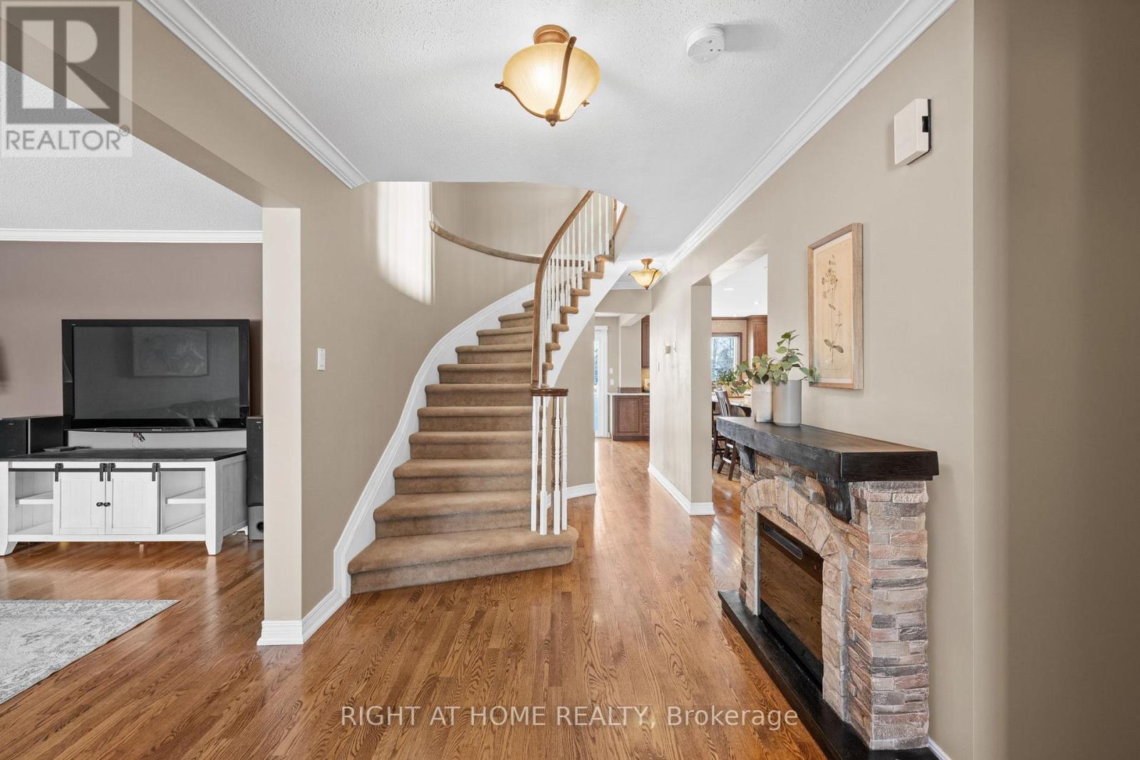 Welcome to this exceptional home in the heart of prestigious Kanata Lakes! Perfectly positioned backing onto greenspace with breathtaking open views. This elegant 4-bedroom, 4-bath detached home offers refined living, sophisticated updates, and a backyard retreat designed for both relaxation and entertaining.The beautifully renovated kitchen is the centerpiece of the home, showcasing quartz countertops, timeless finishes, and an effortless flow into the family living spaces - ideal for hosting in style. A warm and inviting family room with wood-burning fireplace adds character and charm, while the versatile front living room offers the perfect space for a private office or formal sitting area. Upstairs, the expansive primary suite is a true sanctuary. Featuring two closets and a spa-inspired ensuite complete with a freestanding soaker tub, dual vanities, and a glass-enclosed shower, this retreat is designed for comfort and indulgence. Three additional spacious bedrooms and full bathroom complete the upper level.The fully finished lower level elevates the home even further with a generous recreation room, gas fireplace, stylish wet bar with wine fridge, a flexible bonus room ideal for a gym or hobby space, full bathroom, and abundant storage. Step outside to your private resort-style backyard featuring an in-ground salt water pool, hot tub, and mature landscaping - all set against the serene backdrop of a golf course greenspace. The front yard includes a convenient irrigation system. A rare opportunity to own a refined home in one of Kanata's most sought-after communities. (id:28469)