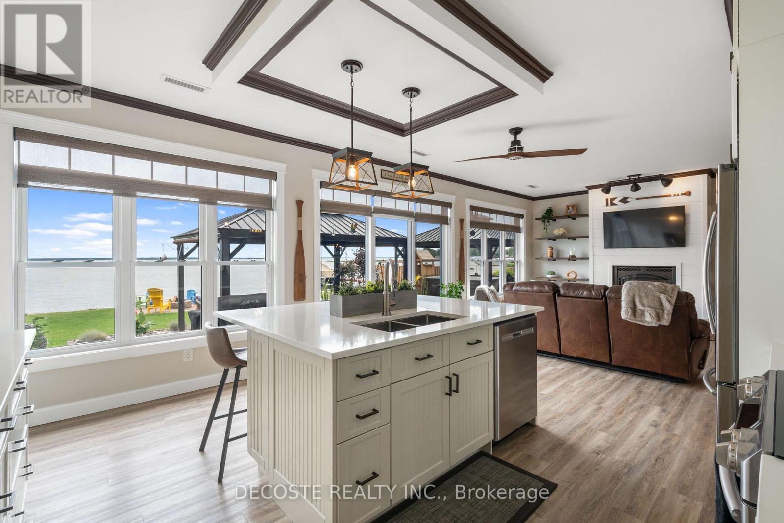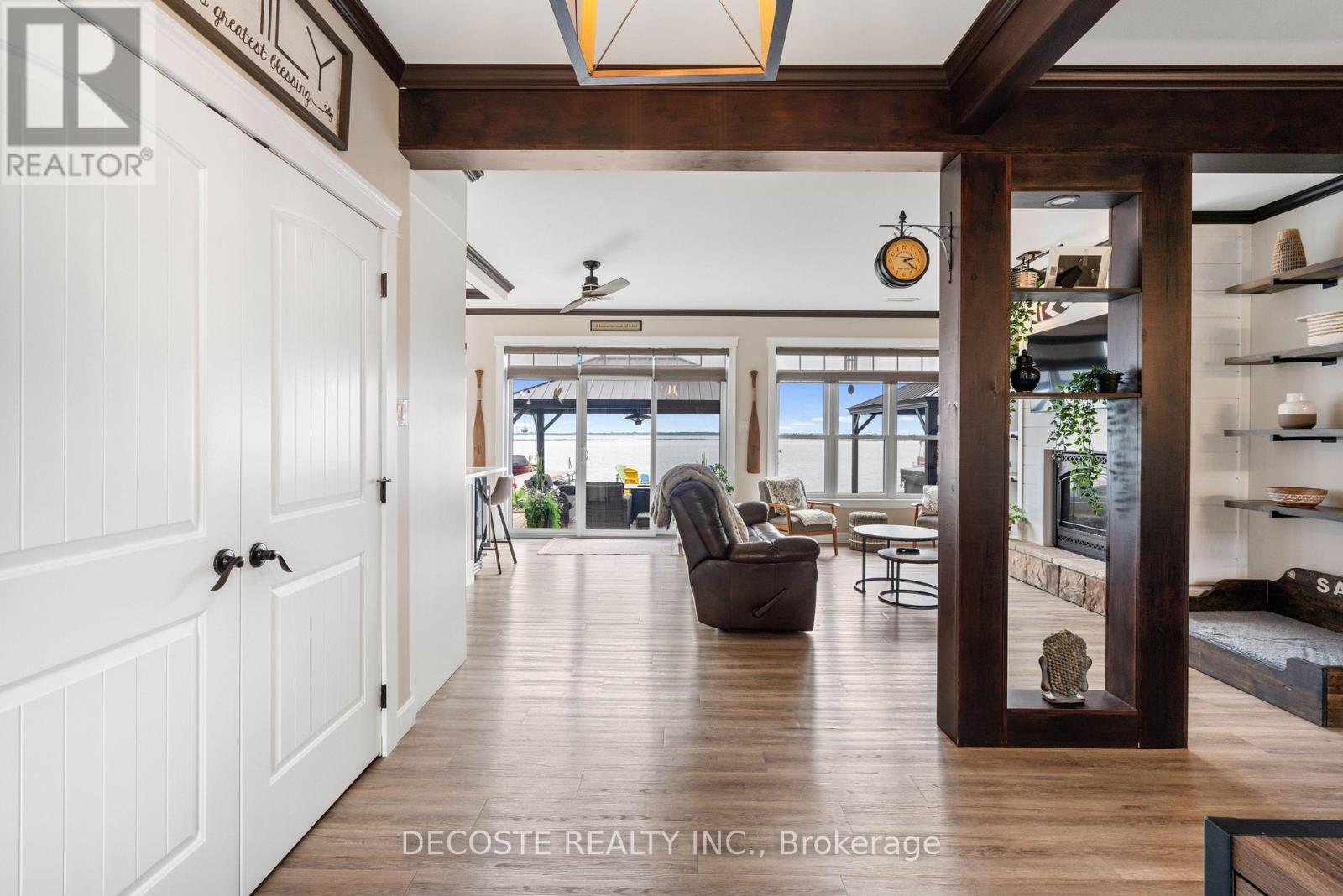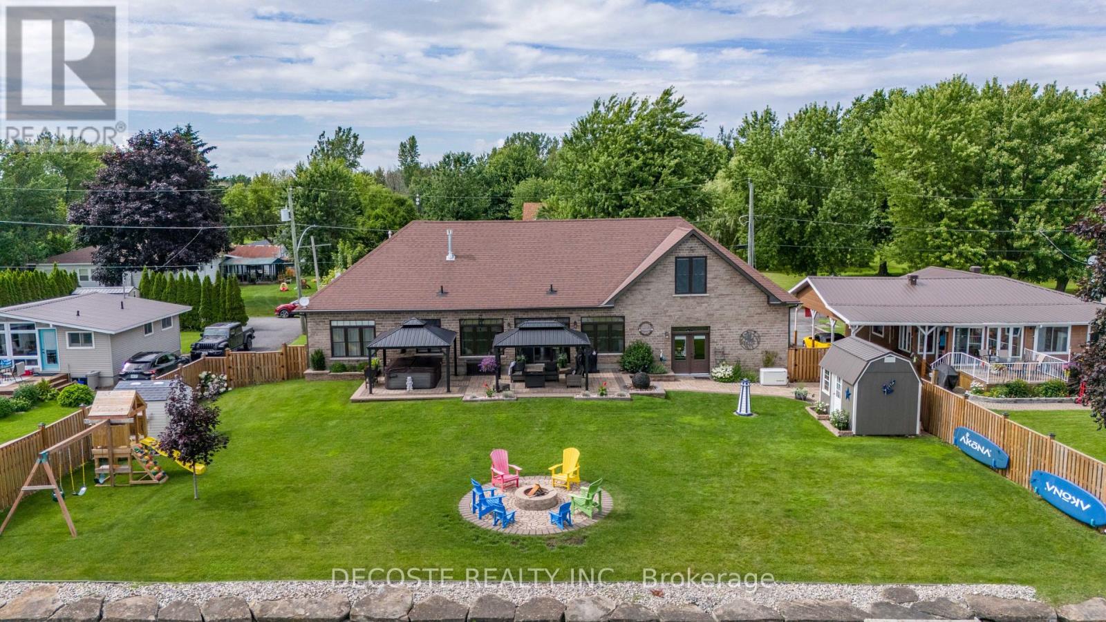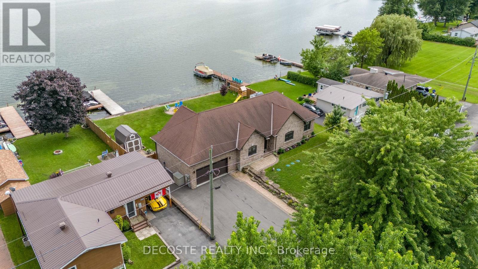 Magnificent waterfront bungalow overlooking Lake St. Francis! This meticulously maintained home epitomizes luxury and comfort. With 100 feet of waterfront, a 50-ft dock, and outstanding outdoor amenities-including garden sheds, a hot tub, gazebos, an interlock sitting area with firepit, and a manicured fenced lawn-this property is perfect for relaxation and entertaining. Inside, the modern kitchen features quartz countertops, a center island with a mini bar fridge, and ample cabinet space, flowing seamlessly into the living and dining areas with stunning water views. The main floor offers 2 bedrooms, a 5-piece bathroom, and a convenient laundry room with space for an additional fridge. Efficient radiant floor heating and central air conditioning provide year-round comfort. The upper level includes a versatile sitting area and a spacious recreation room. An insulated attached double car garage offers plenty of storage. This exceptional property blends modern amenities with breathtaking natural surroundings, making it the perfect waterfront retreat. (id:28469)