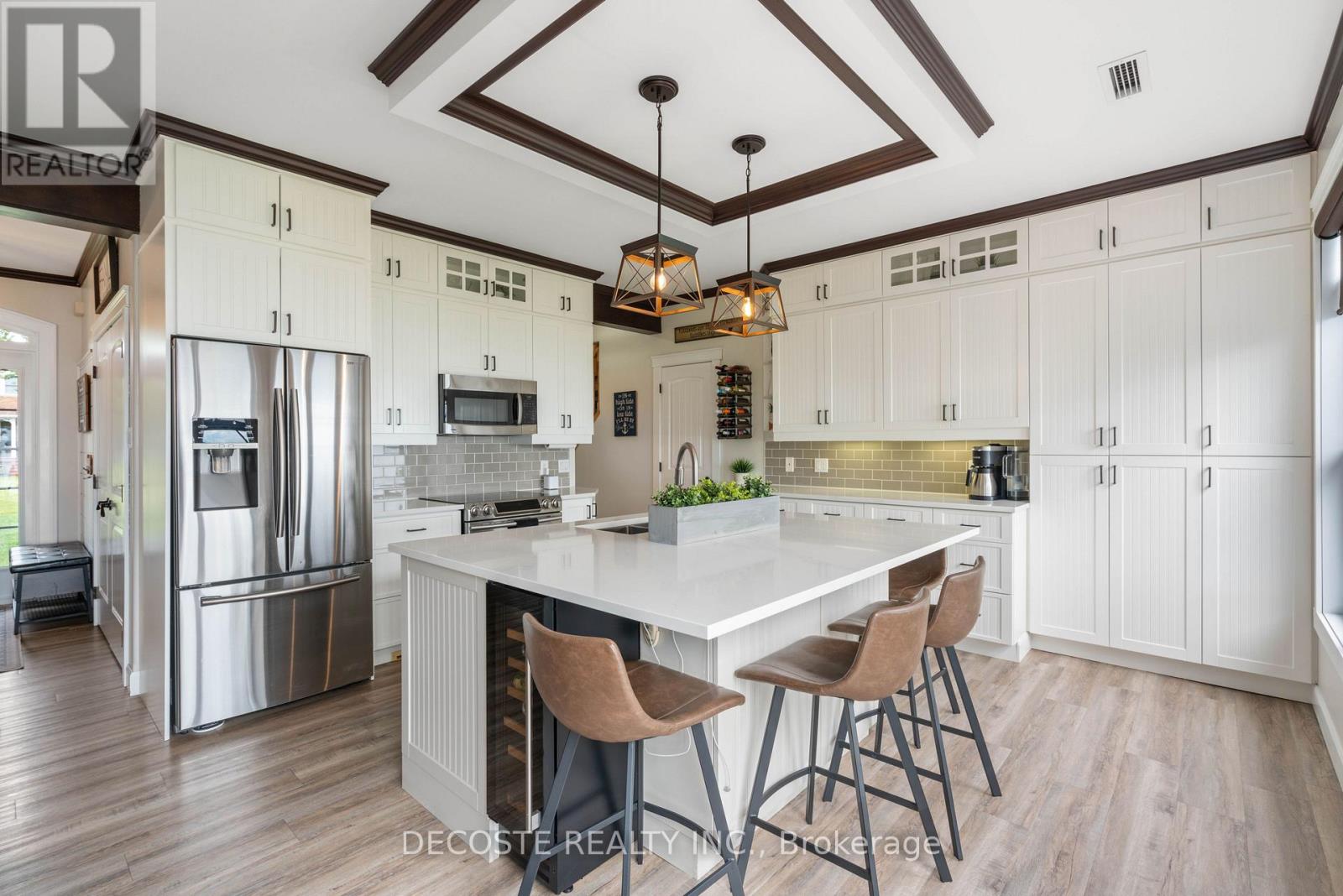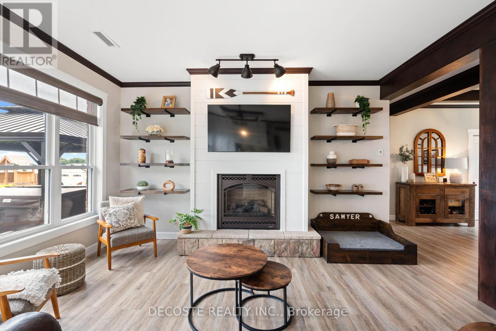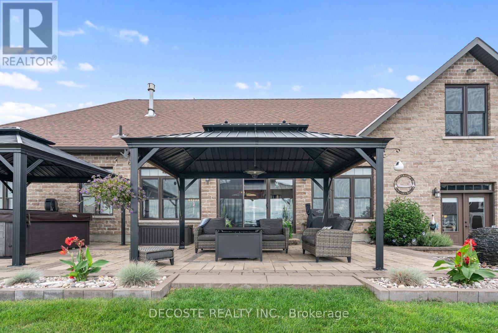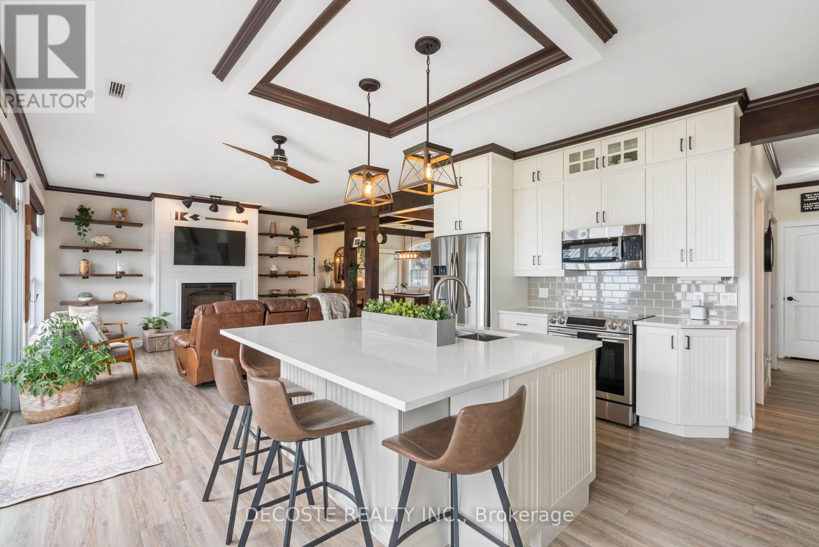 Magnificent waterfront bungalow overlooking Lake St. Francis! This meticulously maintained home epitomizes luxury and comfort. With 100 feet of waterfront, a 50-ft dock, and outstanding outdoor amenities-including garden sheds, a hot tub, gazebos, an interlock sitting area with firepit, and a manicured fenced lawn-this property is perfect for relaxation and entertaining. Inside, the modern kitchen features quartz countertops, a center island with a mini bar fridge, and ample cabinet space, flowing seamlessly into the living and dining areas with stunning water views. The main floor offers 2 bedrooms, a 5-piece bathroom, and a convenient laundry room with space for an additional fridge. Efficient radiant floor heating and central air conditioning provide year-round comfort. The upper level includes a versatile sitting area and a spacious recreation room. An insulated attached double car garage offers plenty of storage. This exceptional property blends modern amenities with breathtaking natural surroundings, making it the perfect waterfront retreat. (id:28469)