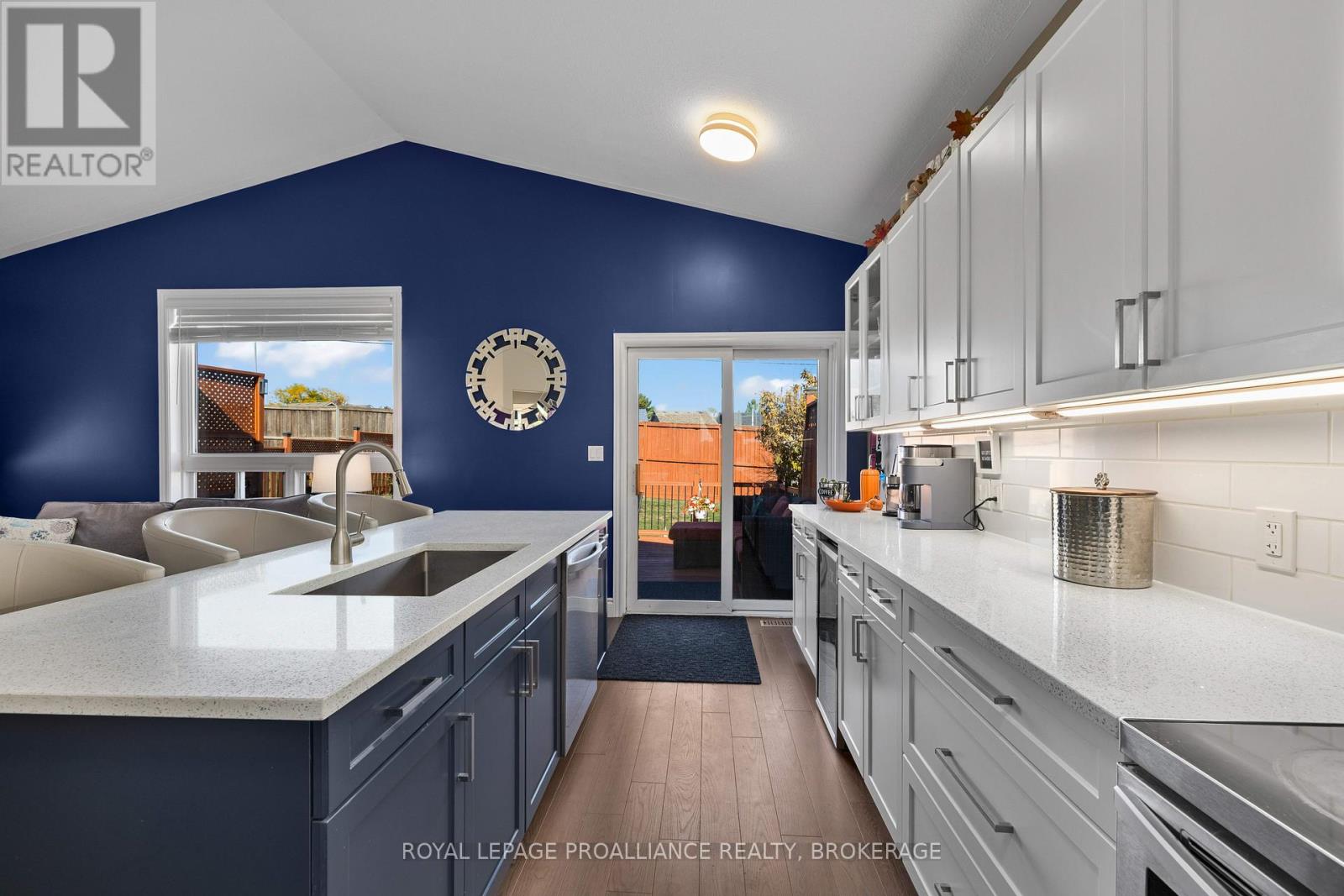 This exceptional two-storey residence offers the perfect balance of modern upgrades and timeless appeal. Built 19 years ago, the home has been meticulously maintained and thoughtfully updated, presenting as if it were brand new. Ideally situated in a mature neighborhood within a developing subdivision, it provides both established charm and convenient access to a wealth of amenities. Starbucks, Cineplex, and a wide variety of shopping and dining options are all within walking distance not to mention the new French school. The main floor features an open-concept design that seamlessly blends functionality and comfort. Highlights include an eat-in kitchen, a formal dining room, a spacious living room, and a welcoming family room enhanced by a gas fireplace. Expansive windows ensure an abundance of natural light throughout. On the upper level, three well-appointed bedrooms include a generous primary suite with a walk-in closet and a fully renovated ensuite. The spa-inspired ensuite showcases a tiled shower with glass doors, an elegant vanity, and ceramic flooring. The main bathroom has also been upgraded with ceramic tile and a modern vanity. The professionally finished lower level extends the living space with a recreation room, a four-piece bathroom, and a sizable fourth bedroom. Additional storage is available in both the basement and the double-car garage. Outdoors, a private backyard retreat offers a large deck and room to run, creating the perfect setting for relaxation or entertaining. Recent updates further enhance peace of mind: roof replacement (2020), kitchen renovation and new hardwood flooring (2021), and updated main floor tile (2025). This property presents a rare opportunity to acquire a move-in-ready home in a highly desirable location. (id:28469)