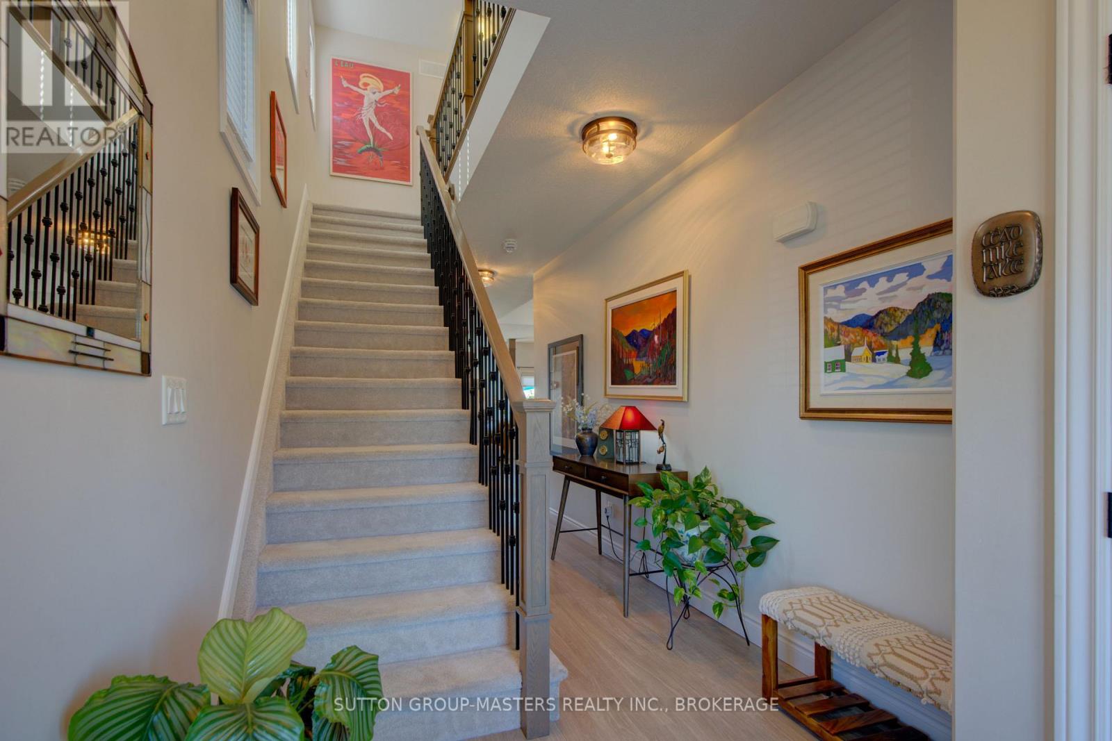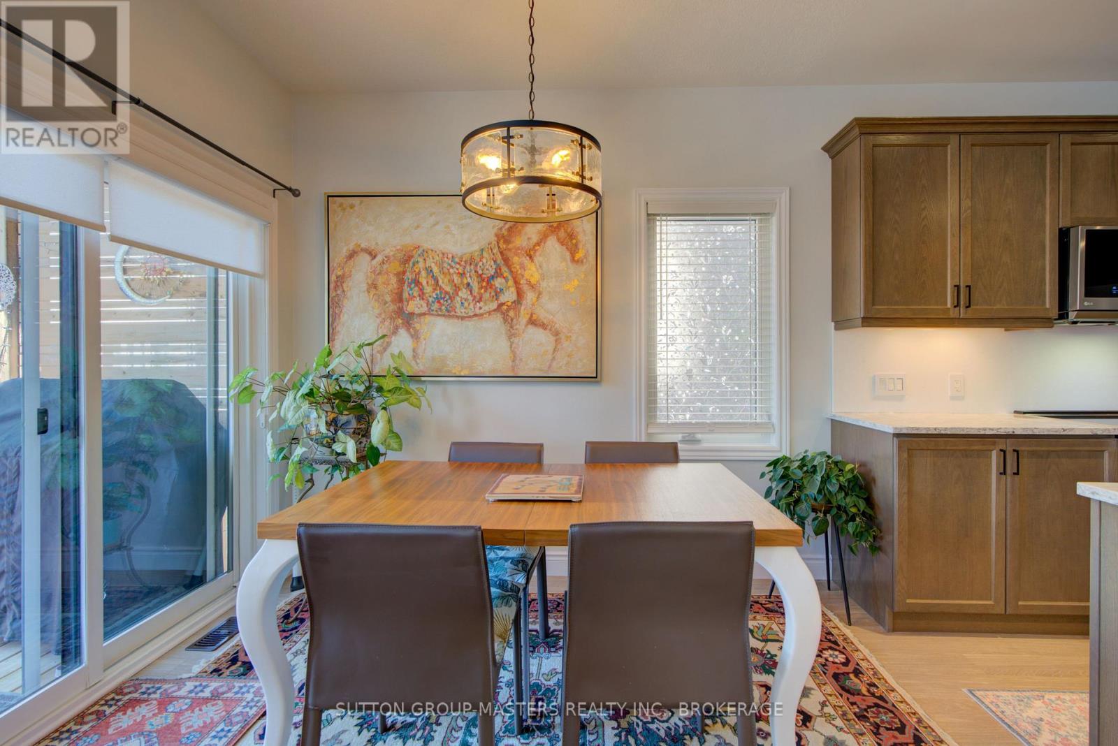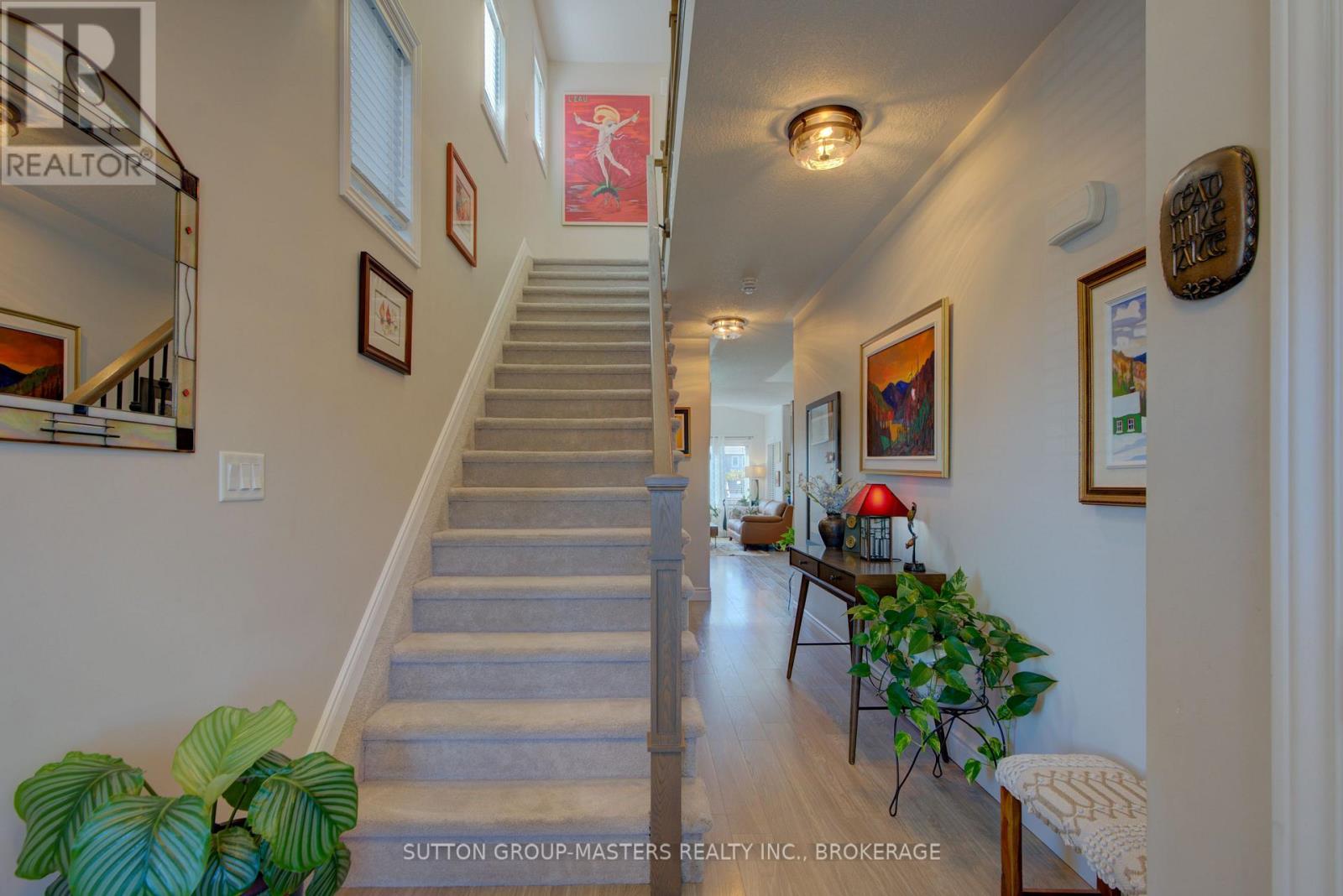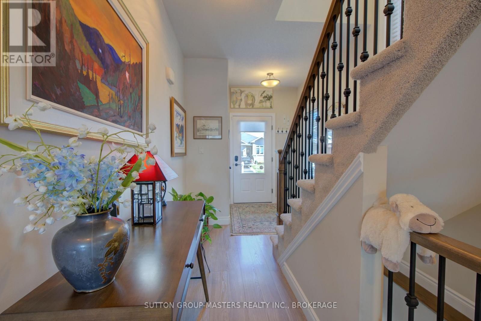 Move-in ready detached 3-bedroom, 2.5-bath home located in Kingston's sought-after West End, just minutes from the future site of Kingston General Hospital. The bright, open-concept main floor is flooded with natural light from eight windows, custom blinds and patio doors. The living room impresses with a vaulted ceiling and cozy corner fireplace. The adjacent kitchen is thoughtfully designed with a center island offering seating, quartz countertops, matching backsplash, pot lighting, crown molding on cupboards and pantry, an induction stove, touch faucet, and under-cabinet lighting. The dining area, located just off the kitchen, provides easy access to the covered rear patio through patio doors-perfect for indoor-outdoor living. The fully fenced backyard features a stamped concrete patio, ideal for entertaining or relaxing with family and friends. Upstairs you'll find three well-appointed bedrooms, including a spacious primary suite complete with a walk-in closet and a 3-piece ensuite featuring a stand-up shower. The second floor also includes a convenient laundry room with ample shelving and a laundry table. The professionally finished basement offers vinyl plank flooring and a large recreation room, providing plenty of space for family enjoyment. Additional highlights include on-demand hot water, central air conditioning, and an updated HRV (2024) and a gas line to BBQ outside. Just minutes to the 401, shopping and schools. (id:28469)