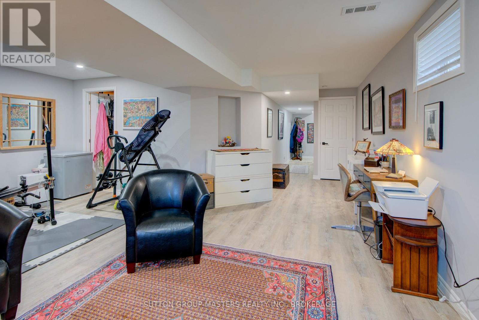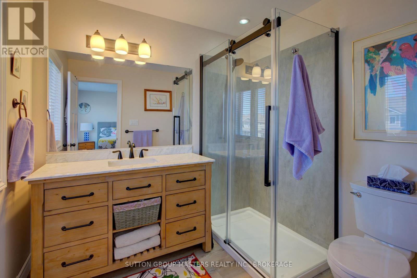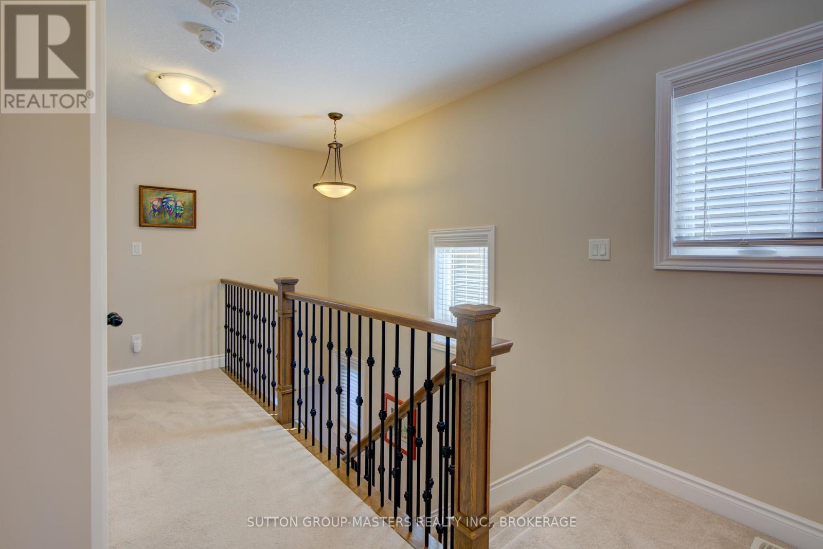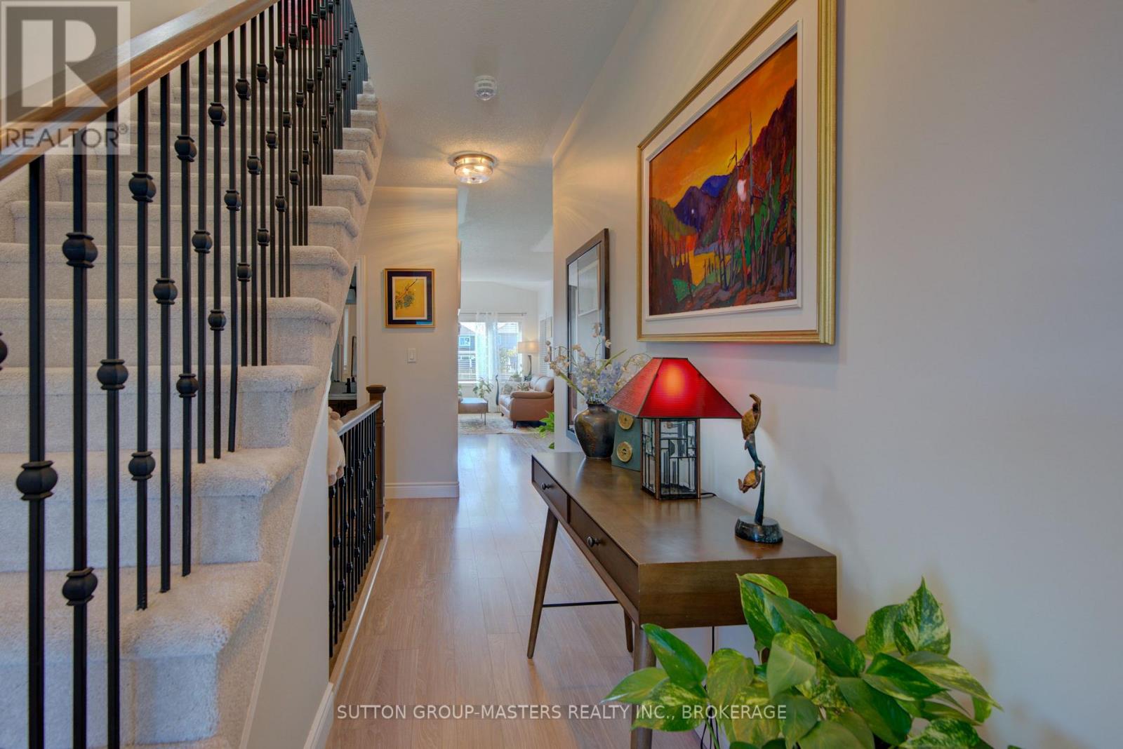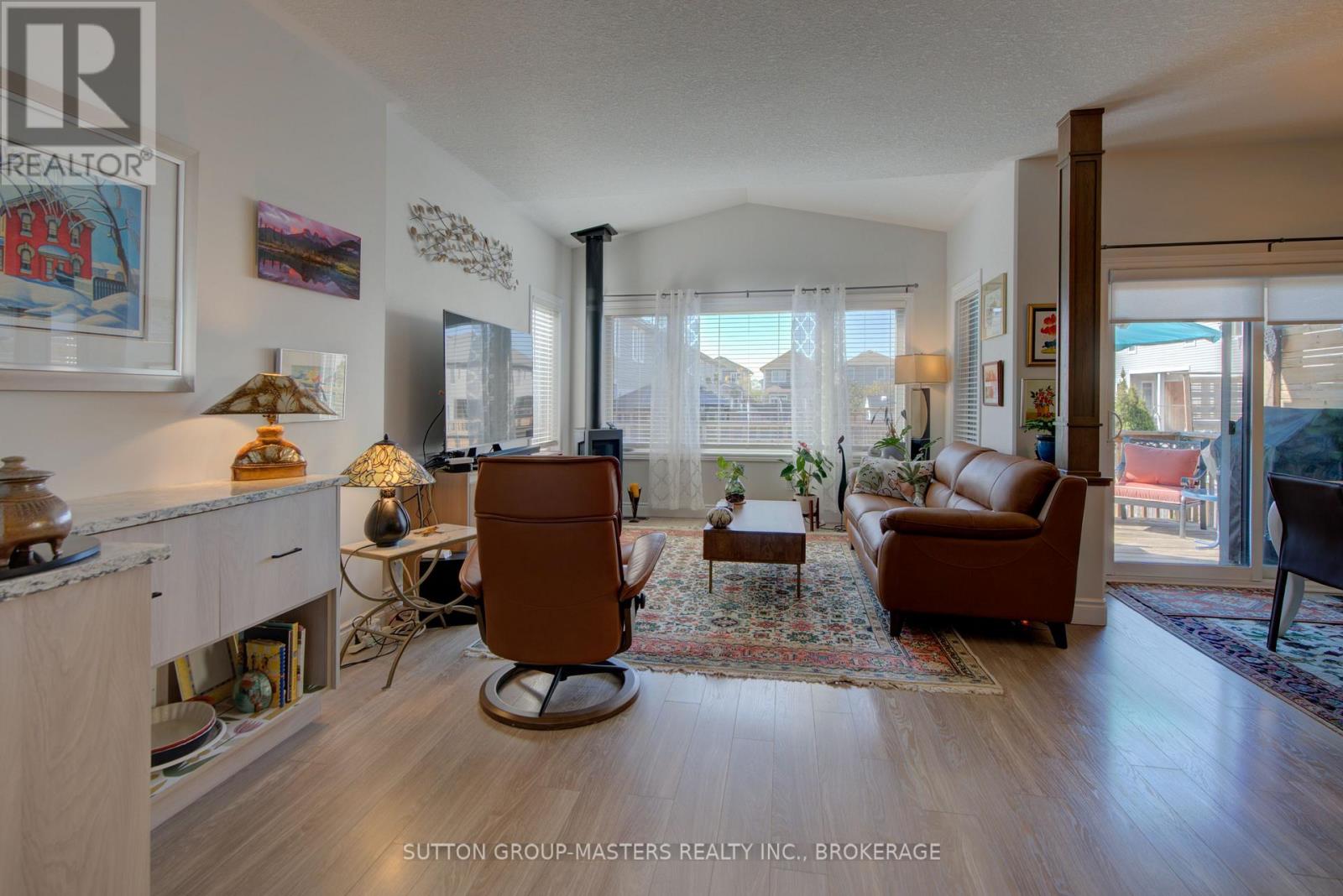 Move-in ready detached 3-bedroom, 2.5-bath home located in Kingston's sought-after West End, just minutes from the future site of Kingston General Hospital. The bright, open-concept main floor is flooded with natural light from eight windows, custom blinds and patio doors. The living room impresses with a vaulted ceiling and cozy corner fireplace. The adjacent kitchen is thoughtfully designed with a center island offering seating, quartz countertops, matching backsplash, pot lighting, crown molding on cupboards and pantry, an induction stove, touch faucet, and under-cabinet lighting. The dining area, located just off the kitchen, provides easy access to the covered rear patio through patio doors-perfect for indoor-outdoor living. The fully fenced backyard features a stamped concrete patio, ideal for entertaining or relaxing with family and friends. Upstairs you'll find three well-appointed bedrooms, including a spacious primary suite complete with a walk-in closet and a 3-piece ensuite featuring a stand-up shower. The second floor also includes a convenient laundry room with ample shelving and a laundry table. The professionally finished basement offers vinyl plank flooring and a large recreation room, providing plenty of space for family enjoyment. Additional highlights include on-demand hot water, central air conditioning, and an updated HRV (2024) and a gas line to BBQ outside. Just minutes to the 401, shopping and schools. (id:28469)