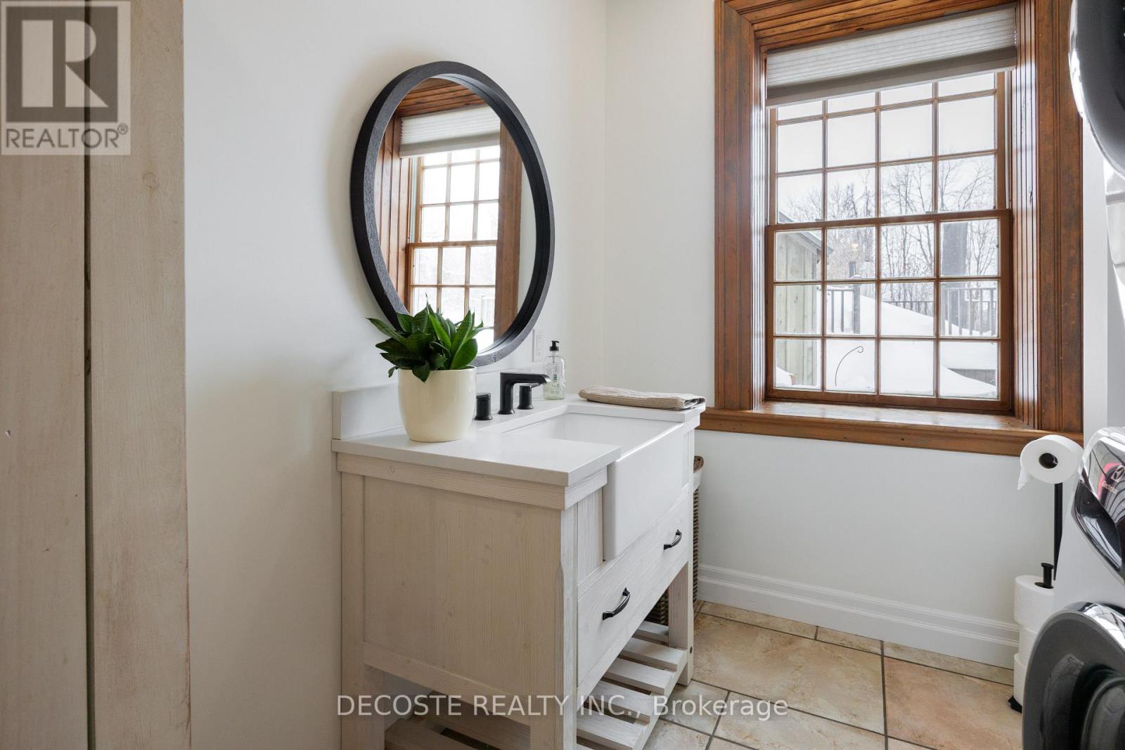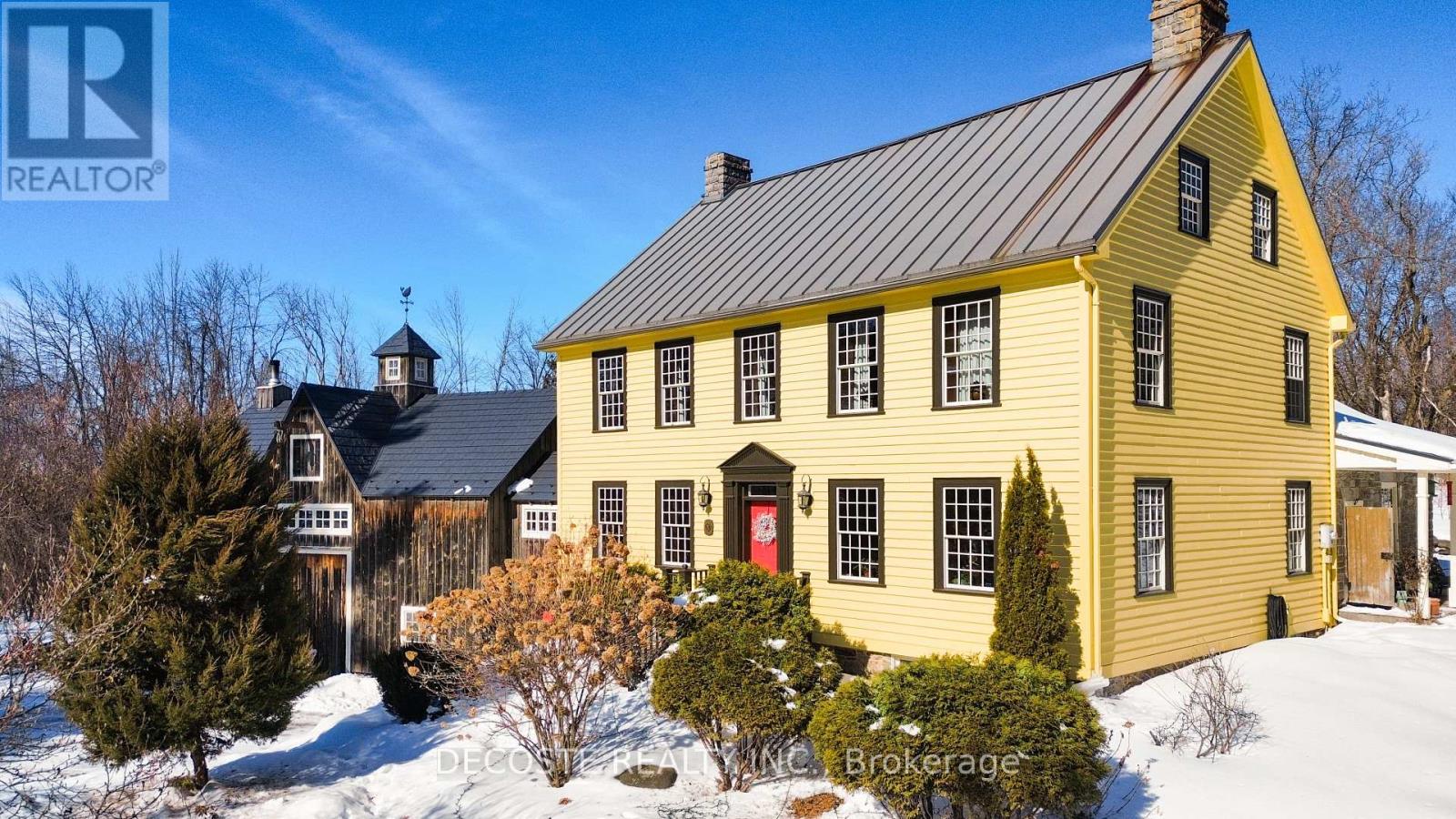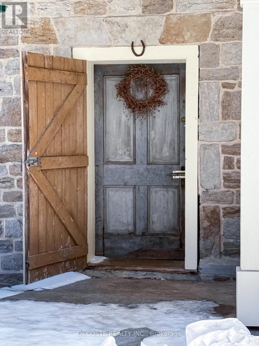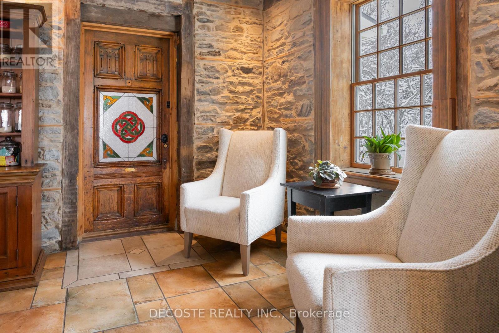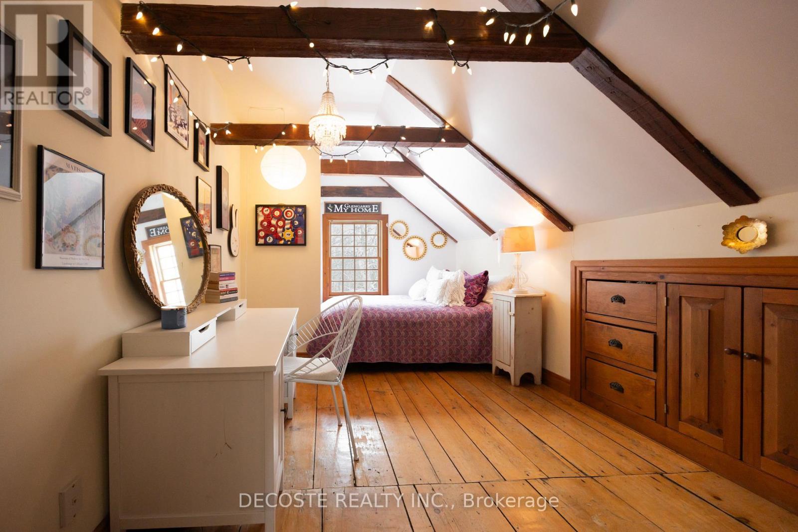 Historic Stone Estate on Over 6.5 Acres - The Curry House (Circa 1806). Step into history with this extraordinary stone residence known as The Curry House, built in 1806 and believed to be the third oldest home in Glengarry. Set on 6.5 picturesque acres, this remarkable property has been meticulously maintained and thoughtfully preserved, offering a rare opportunity to own a true piece of local heritage while enjoying the comforts of modern family living. This impressive 4-level home features 6 spacious bedrooms and 3 full bathrooms, making it ideal for a large or multi-generational family. Timeless character is showcased throughout with exposed interior stone walls, original pine plank flooring, rich wood mouldings, and beautiful exposed beams that highlight the home's historic craftsmanship. Two wood-burning stoves add warmth and ambiance, enhancing the inviting atmosphere. The main level offers a functional kitchen with ceramic flooring, a formal living room perfect for quiet relaxation, and a spectacular great room designed for entertaining. The soaring vaulted ceiling and striking fireplace create a dramatic yet welcoming space for gatherings with family and friends. From here, step outside to the expansive rear deck overlooking the private grounds and the impressive 28-ft saltwater pool - a perfect setting for summer enjoyment. The third-storey loft provides additional living space with three bedrooms, a full bathroom, and breathtaking views of the surrounding countryside, offering flexibility for guests, office space, or growing families. A drive-in garage provides ample storage and room for vehicles, while the surrounding acreage offers privacy, open space, and endless possibilities. Filled with history, charm, and warmth that simply cannot be replicated, this exceptional estate offers peaceful country living just a short drive from Montreal. A truly rare opportunity to own a landmark property where timeless elegance meets everyday comfort. (id:28469)
