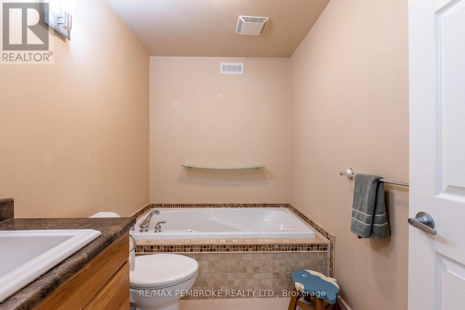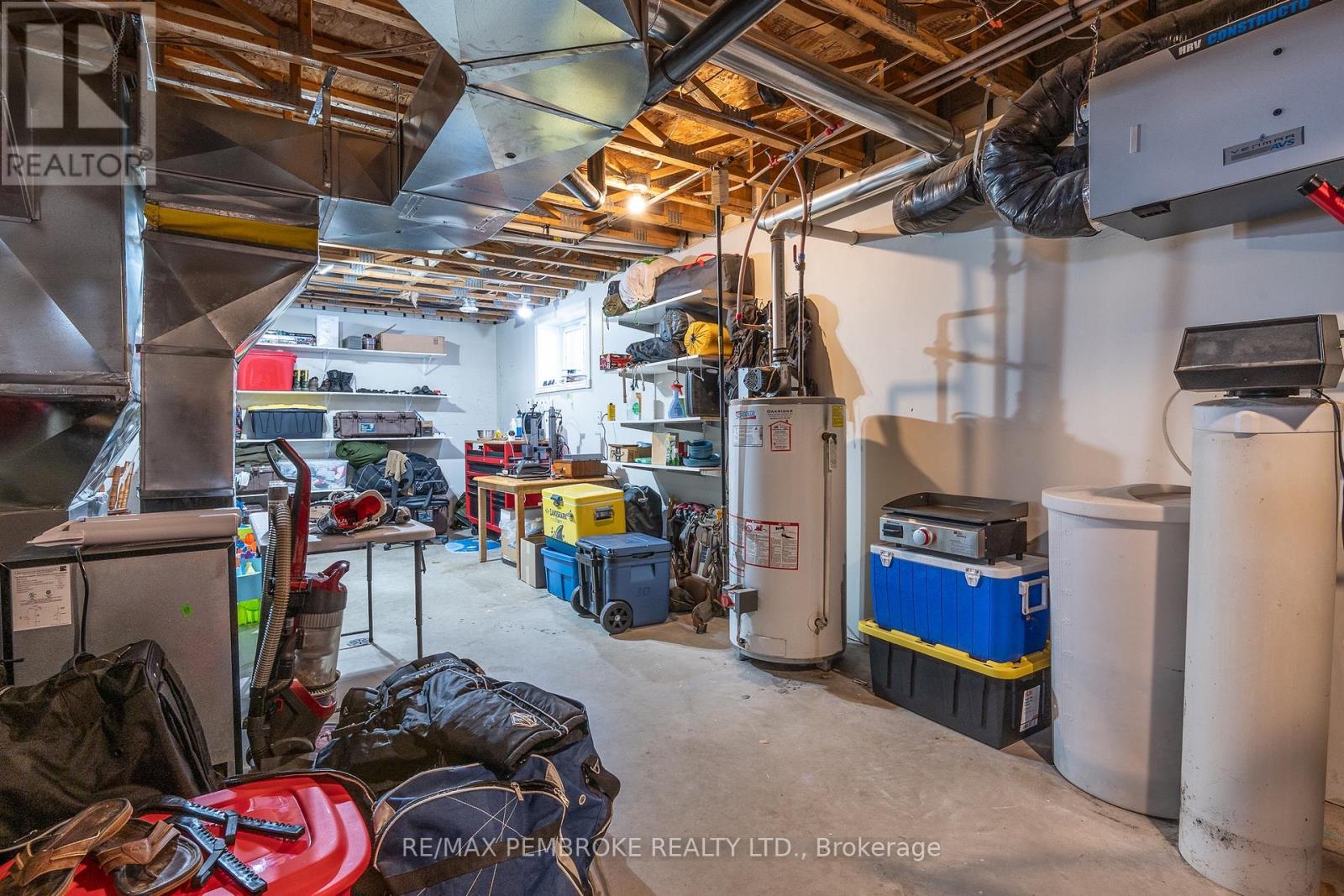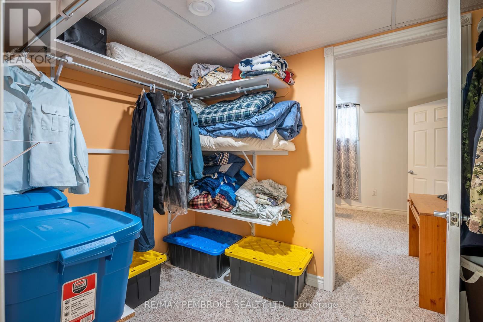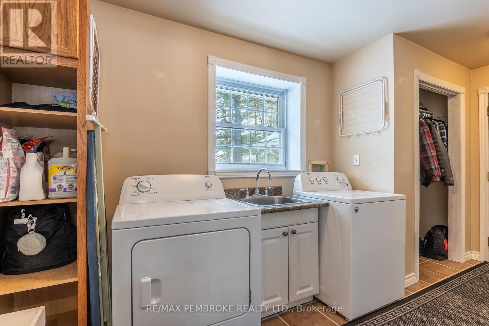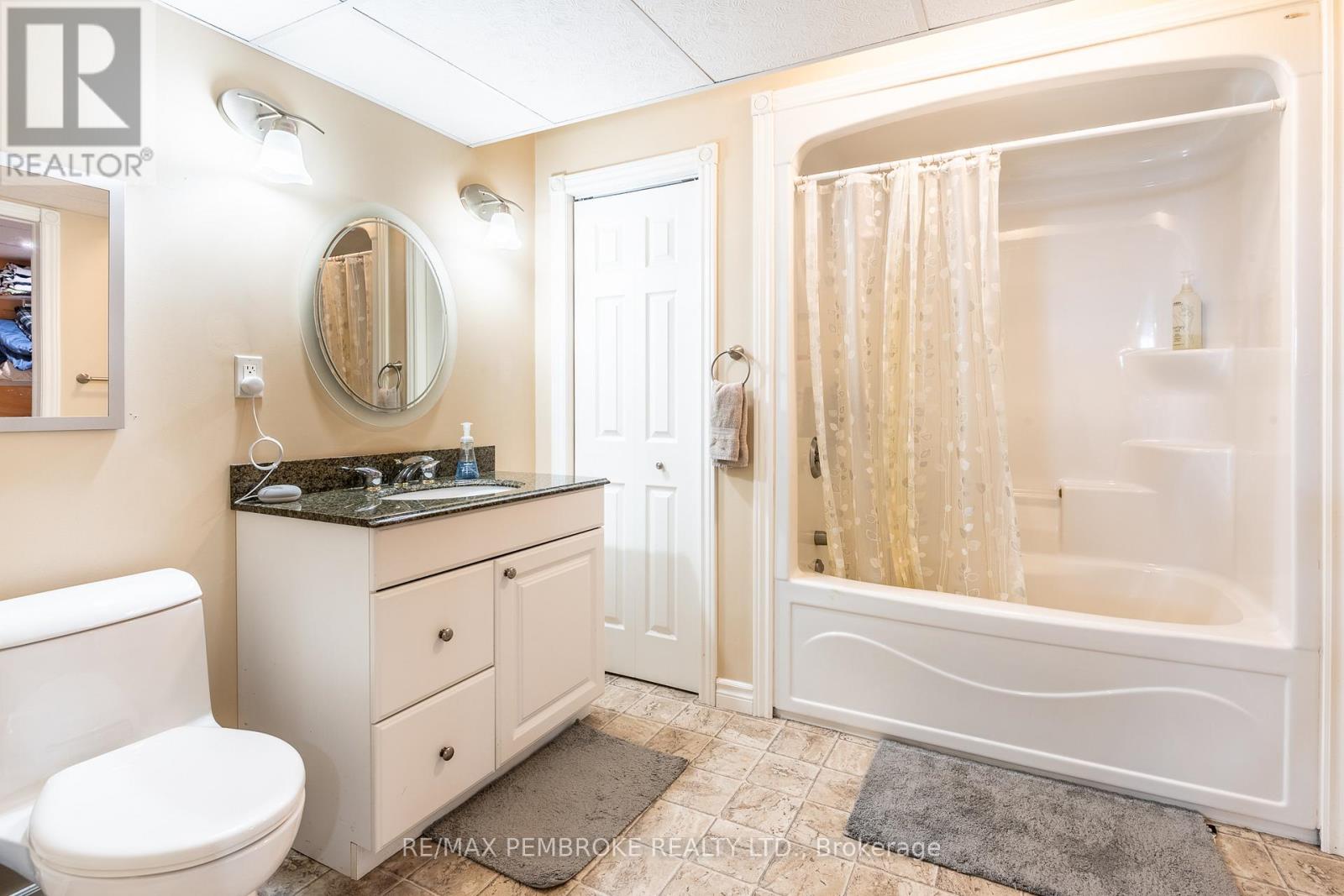 Set on a beautifully treed 1-acre lot, this custom-built home offers the perfect balance of privacy, space, and convenience, just minutes from town. With approximately 1750 sq ft of thoughtfully designed living space, this property is ideal for those seeking a quiet, nature-filled setting without sacrificing accessibility. The main level welcomes you with soaring vaulted ceilings and an open-concept layout, where large windows flood the home with natural light and frame the surrounding mature trees. The kitchen, dining, and living areas flow seamlessly, creating an inviting space for both everyday living and entertaining. A well-appointed primary suite features a private ensuite and walk-in closet, while two additional bedrooms and a full bathroom complete the main floor. A practical mudroom and main floor laundry are conveniently located off the attached insulated garage, which measures approximately 26' x 29'. The fully finished lower level expands your living space with a hardwood staircase, a spacious recreation area with a bar, a fourth bedroom with a walk-in closet, and a third full bathroom, ideal for guests or extended family. Direct access to the attached garage and a large mechanical/storage room add to the home's functionality. Built for efficiency, the home features an ICF foundation extending to the trusses and a furnace installed in 2020. Outside, enjoy a generous deck, wiring for a hot tub, play structure, and storage shed, perfect for embracing outdoor living. Car enthusiasts, hobbyists, or those needing extra space will appreciate the insulated and impressive 24' x 29' detached garage. With excellent curb appeal highlighted by a brick front, this property makes a strong first impression. Located just 5 minutes from Highway 17, enjoy a 10 minute commute to Garrison Petawawa, 20 minutes to CNL, or 20 minutes Pembroke. A rare opportunity to enjoy peaceful country living with all amenities close at hand. (id:28469)