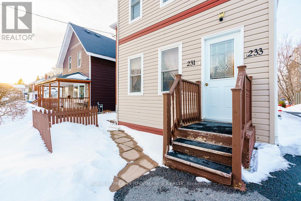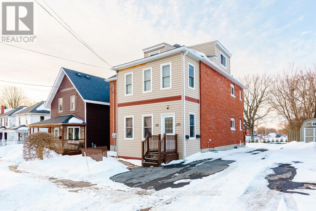 Don't miss out on this opportunity! Extremely well maintained, massive duplex. This 5 bedroom and 3 bathroom with an oversized lot is the biggest duplex on the largest lot for sale today in Cornwall. Besides the room to roam inside and out, It is in wonderful shape; Perfect for an owner occupied investment. This beauty has High ceilings at 8'4", original hardwood flooring, and a great layout on each level. Each unit is larger than the average bungalow (Lower unit 1160 sq ft and the upper unit 1720 sq ft) The upper unit (#233) has two floors of living space, along with a second 3-piece bathroom, front 3 season covered balcony, back mudroom with stairs that lead to the back entrance, private basement, and laundry. The lower unit (#231) boasts a front 3 season mudroom, a back entrance with stairs to the private basement and laundry. Separate electric meters, 2 brand new forced air, natural gas furnaces (2025) 2 new Hot water tanks (2024), roof shingles, eaves and downspouts were new in approx 2015. There are no rear neighbors and the land behind the building was purchased so it is now an extra large lot. Zoned for RES30, there could be future potential for expansion or addition. This property has great curb appeal and has enough parking for 5 vehicles. Lower unit is currently vacant, Upper unit is occupied by a tenant. Last time this was for sale it was fought over, be the first to check it out! (id:28469)