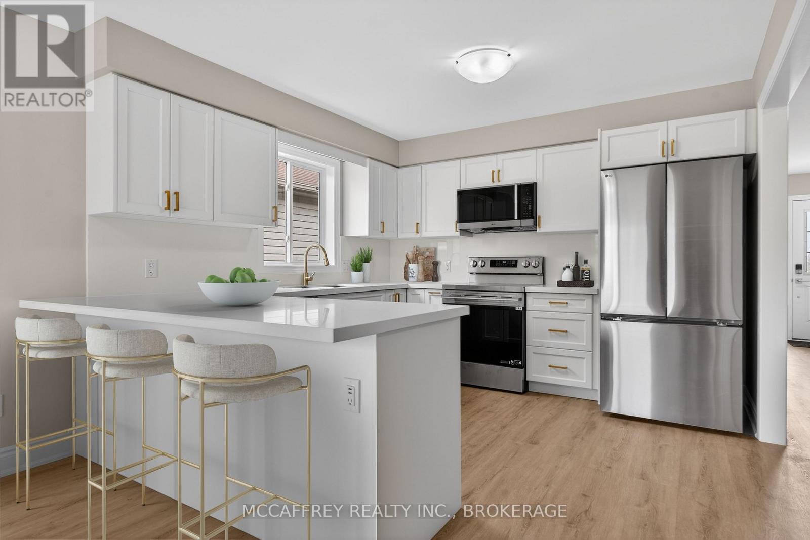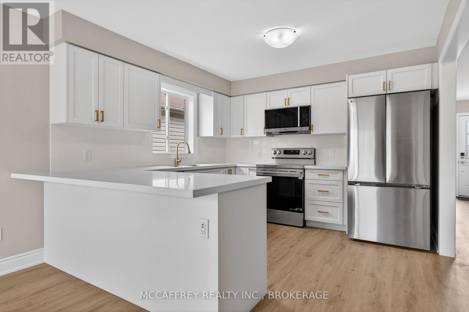 Welcome to 25 Kanvers Way, Napanee-a beautifully updated 2+2 bedroom, 3 bath home nestled in a charming neighborhood! This turn-key property boasts a host of modern upgrades that ensure worry-free living and stylish comfort for years to come. Step inside and you'll immediately notice new vinyl laminate flooring that flows seamlessly throughout both levels, perfectly complementing the freshly painted walls across every area of the home. The heart of this residence is the fully revamped kitchen, where no expense has been spared. Enjoy brand new cabinets, contemporary sink, quartz countertops and backsplash, and updated hardware. All kitchen appliances-including the stove, fridge, dishwasher, and over-the-range microwave-are brand new, ready to inspire your culinary adventures. Both bathrooms have been refreshed, featuring a quartz countertops, new sinks, and new modern taps. Throughout the home, updated light fixtures add a bright, inviting ambiance, effortlessly blending style and function. You'll also love the upgraded laundry room, equipped with a new washer, dryer, and sink, making daily chores both convenient and efficient. Downstairs, discover new oak stairs leading to a welcoming finished basement, complete with a rich, stained oak handrail. This level offers two additional bedrooms plus a versatile office space, ideal for working from home, family living, or accommodating guests. The basement's flexibility adds tremendous value and room for growing needs. Outside, the enhancements continue: New exterior light fixtures and freshly painted garage door and front door ensure exceptional curb appeal. Plus, a brand new roof (2025), and hot water tank (2023) provides lasting peace of mind for years to come. Just minutes from schools, parks, and all local amenities, this home is ready for its new owners to move in and start a new chapter. Discover a home where every detail has been thoughtfully updated to offer the modern lifestyle you deserve! (Virtual staging used) (id:28469)