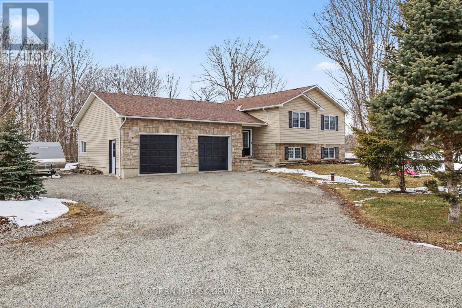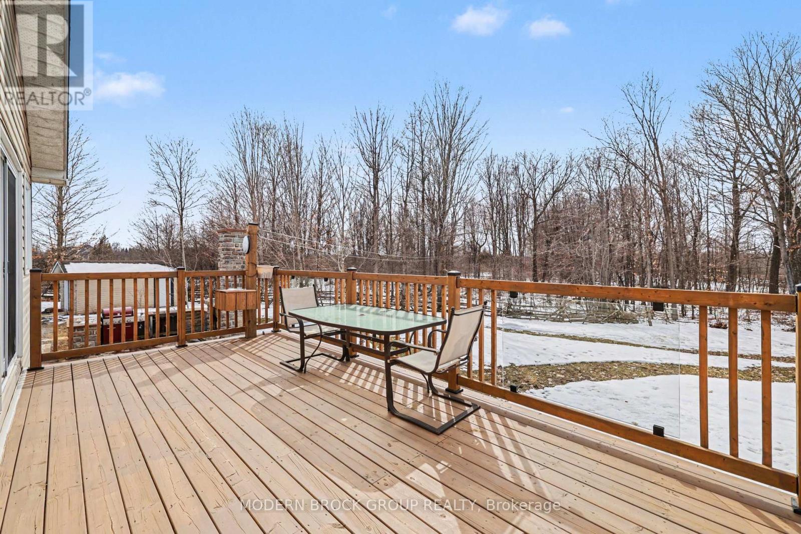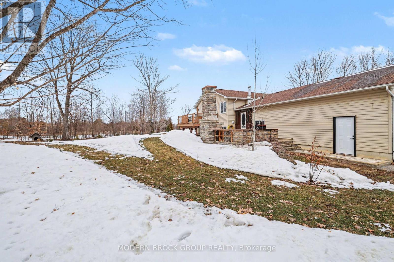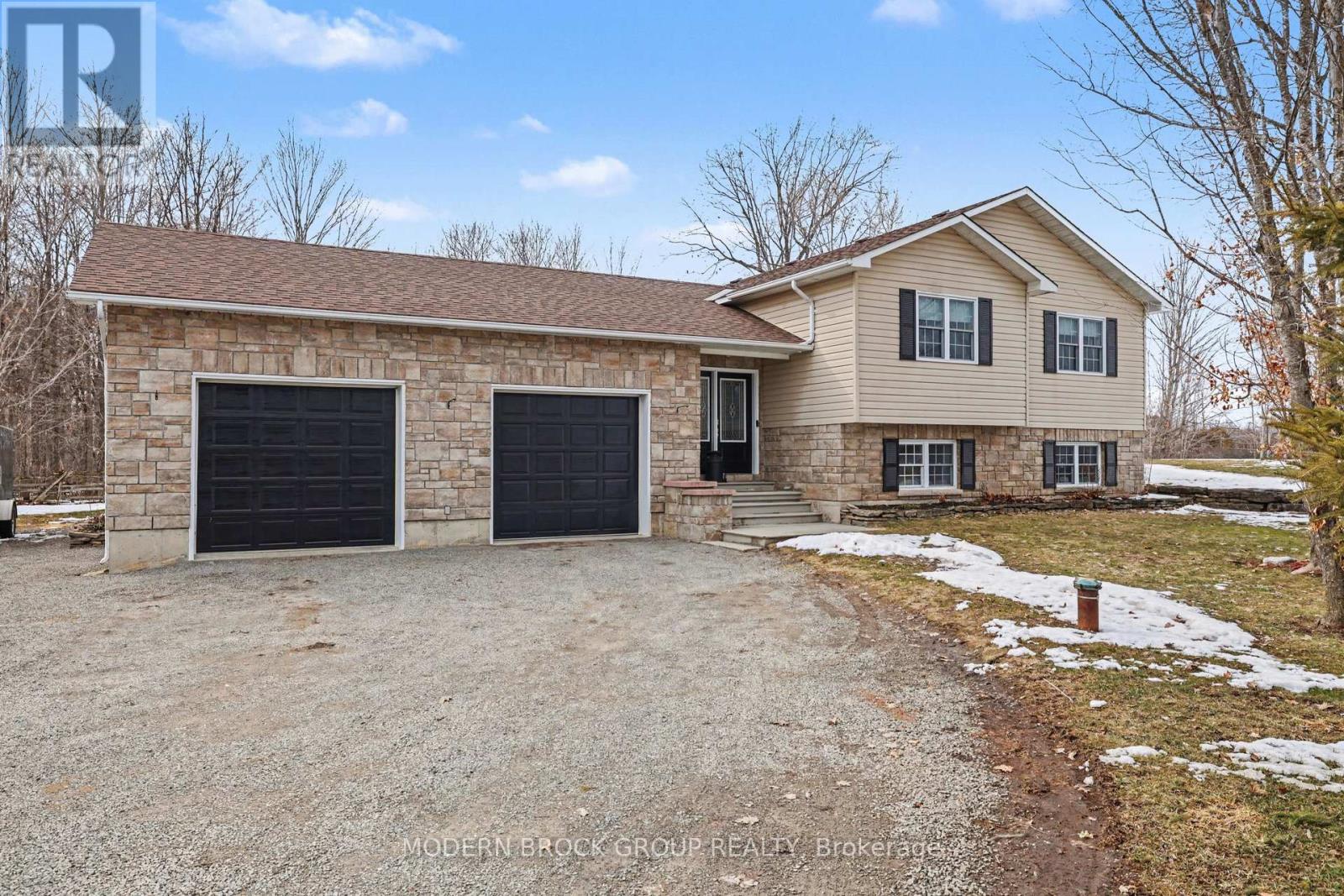 Welcome to this beautifully maintained home just outside of Toledo, offering the perfect blend of privacy and convenience, only about a 15-minute drive to Smiths Falls and about 30 minutes to Brockville. Situated on just under an acre, this 2007-built property provides ample space both inside and out. The upper level features a bright, naturally lit kitchen with dining space, updated countertops (2022), and a convenient pantry. Hardwood flooring runs throughout most of the upper level, with tile in the kitchen. Two bedrooms are located on this level, including one with a 4-piece ensuite, as well as an additional 4-piece bathroom. Sliding doors lead to the back deck, overlooking a lower stone patio-ideal for entertaining. The front entrance landing offers practical access to the attached 2-bay garage-spacious, clean, and complete with a man door to the side, along with a 2-piece bathroom and a mudroom, perfect for busy households. The finished basement includes two additional bedrooms, one currently used as the primary retreat, featuring three closets and a private ensuite with a soaker tub. Large basement windows allow for plenty of natural light. You'll also find a spacious laundry room, generous wood storage, a crawl space, and additional pantry storage. Recent upgrades include an aluminum wood shed (2024), pressure tank (2024), back deck (2024), exterior doors & shutters painted (2023) and a heat pump with A/C (2025). A well-rounded home offering comfort, functionality, and outdoor space, perfect for families or those looking to enjoy a quieter lifestyle within easy commuting distance. (id:28469)