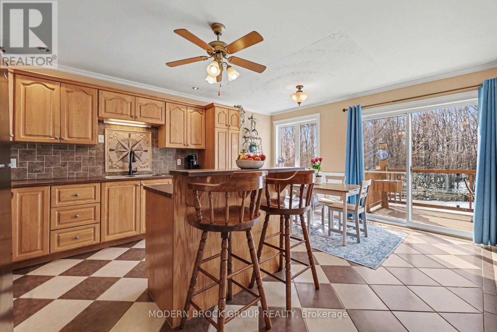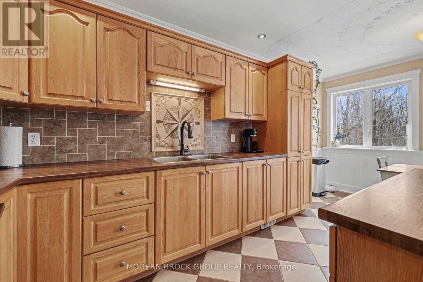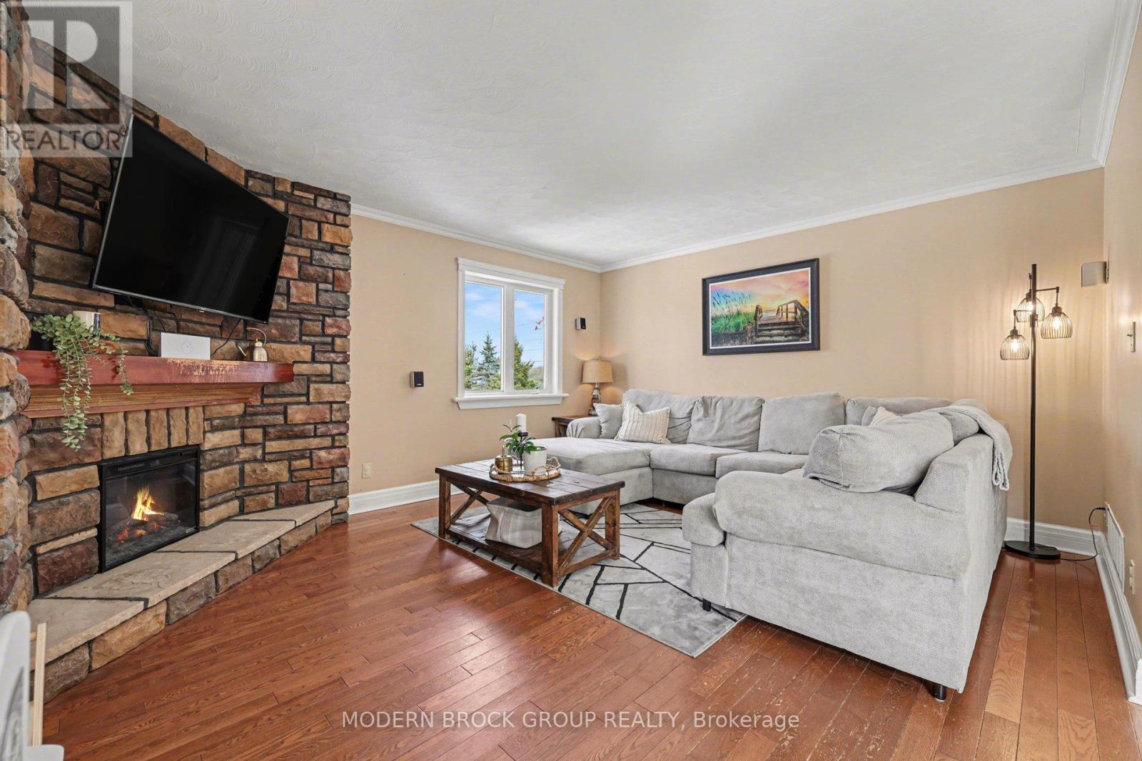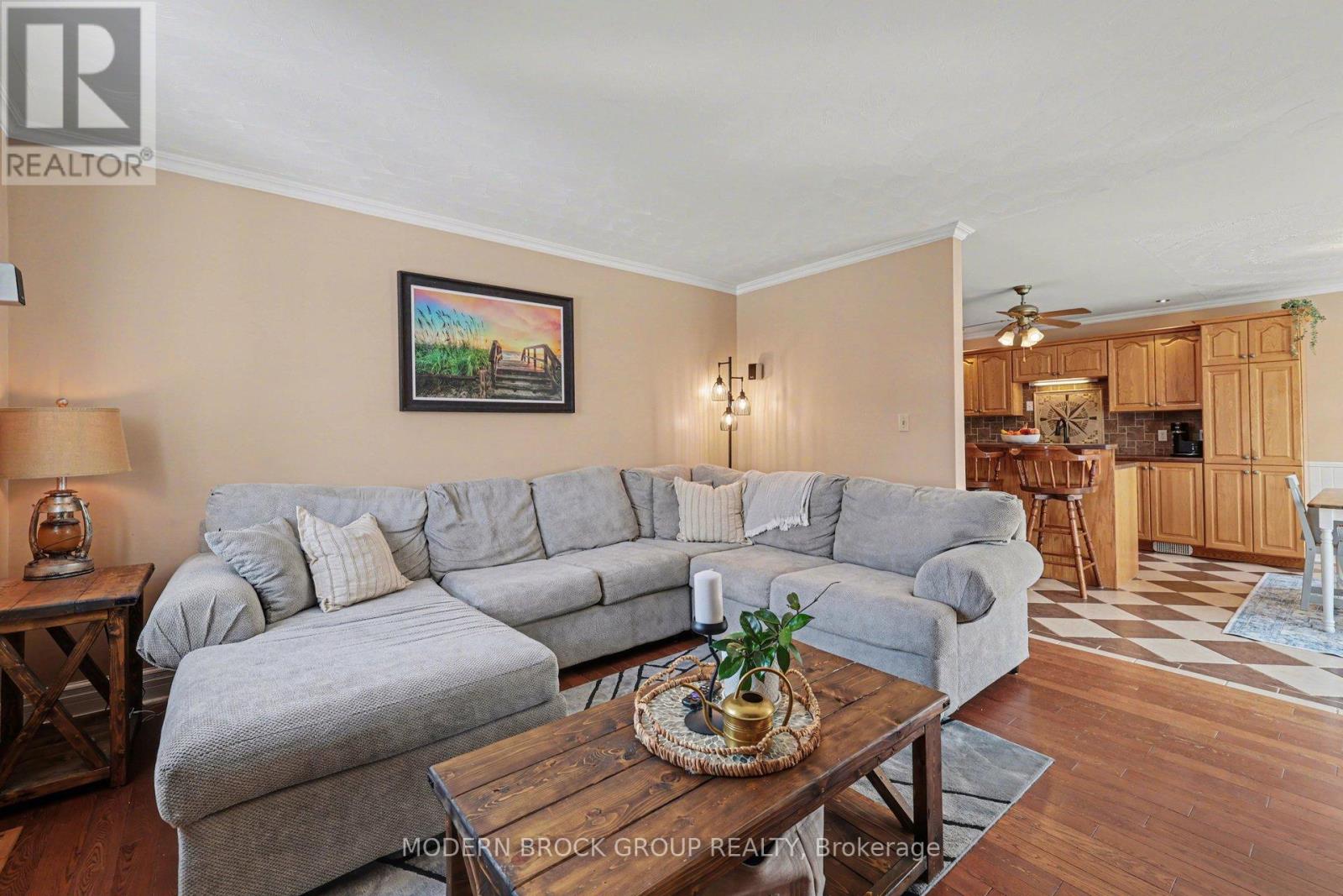 Welcome to this beautifully maintained home just outside of Toledo, offering the perfect blend of privacy and convenience, only about a 15-minute drive to Smiths Falls and about 30 minutes to Brockville. Situated on just under an acre, this 2007-built property provides ample space both inside and out. The upper level features a bright, naturally lit kitchen with dining space, updated countertops (2022), and a convenient pantry. Hardwood flooring runs throughout most of the upper level, with tile in the kitchen. Two bedrooms are located on this level, including one with a 4-piece ensuite, as well as an additional 4-piece bathroom. Sliding doors lead to the back deck, overlooking a lower stone patio-ideal for entertaining. The front entrance landing offers practical access to the attached 2-bay garage-spacious, clean, and complete with a man door to the side, along with a 2-piece bathroom and a mudroom, perfect for busy households. The finished basement includes two additional bedrooms, one currently used as the primary retreat, featuring three closets and a private ensuite with a soaker tub. Large basement windows allow for plenty of natural light. You'll also find a spacious laundry room, generous wood storage, a crawl space, and additional pantry storage. Recent upgrades include an aluminum wood shed (2024), pressure tank (2024), back deck (2024), exterior doors & shutters painted (2023) and a heat pump with A/C (2025). A well-rounded home offering comfort, functionality, and outdoor space, perfect for families or those looking to enjoy a quieter lifestyle within easy commuting distance. (id:28469)