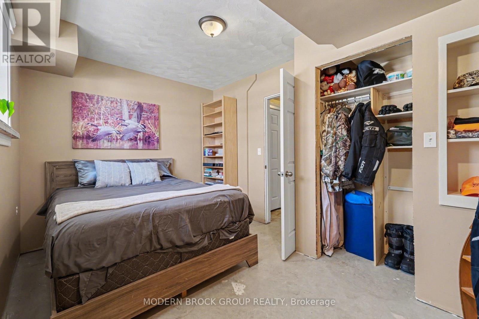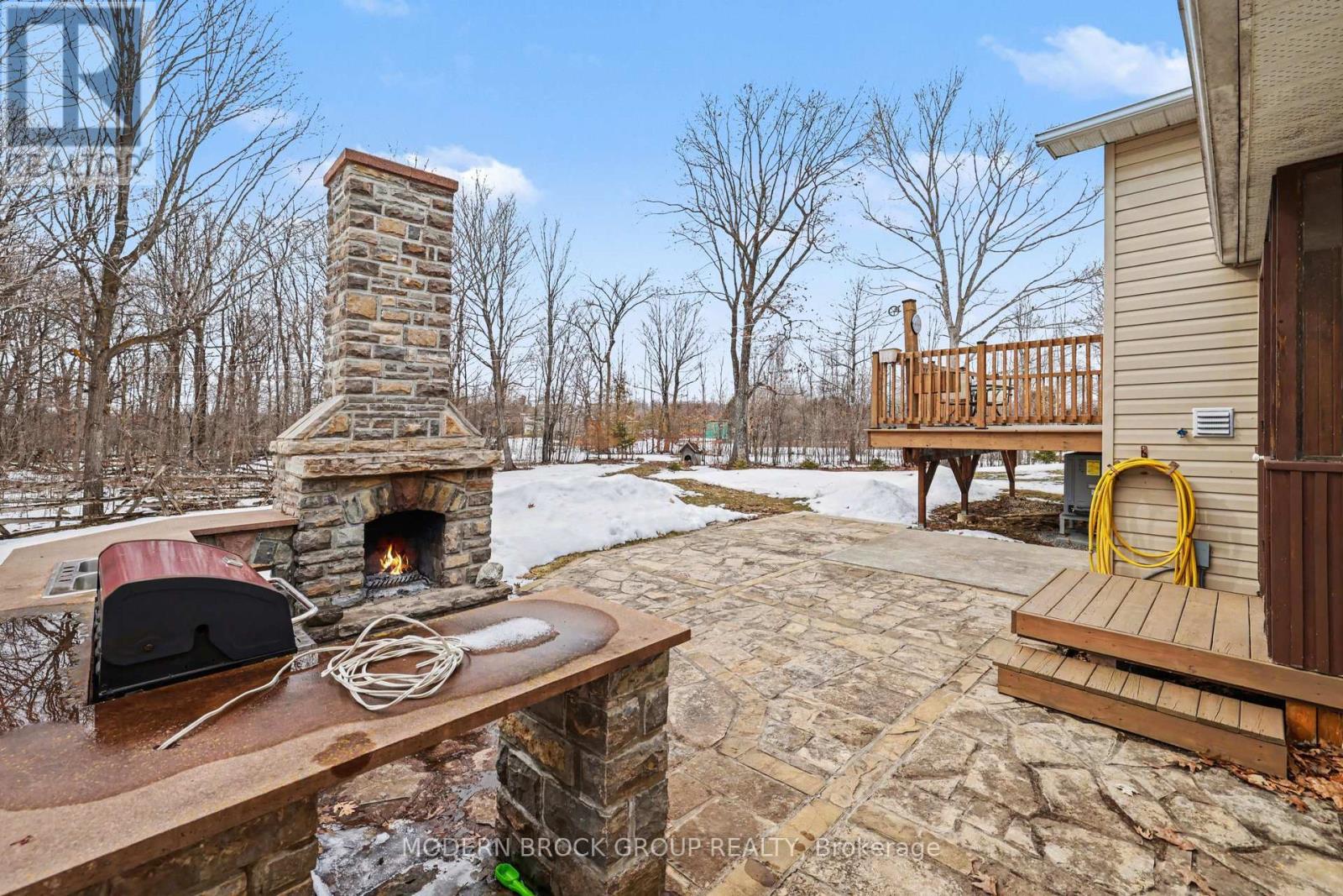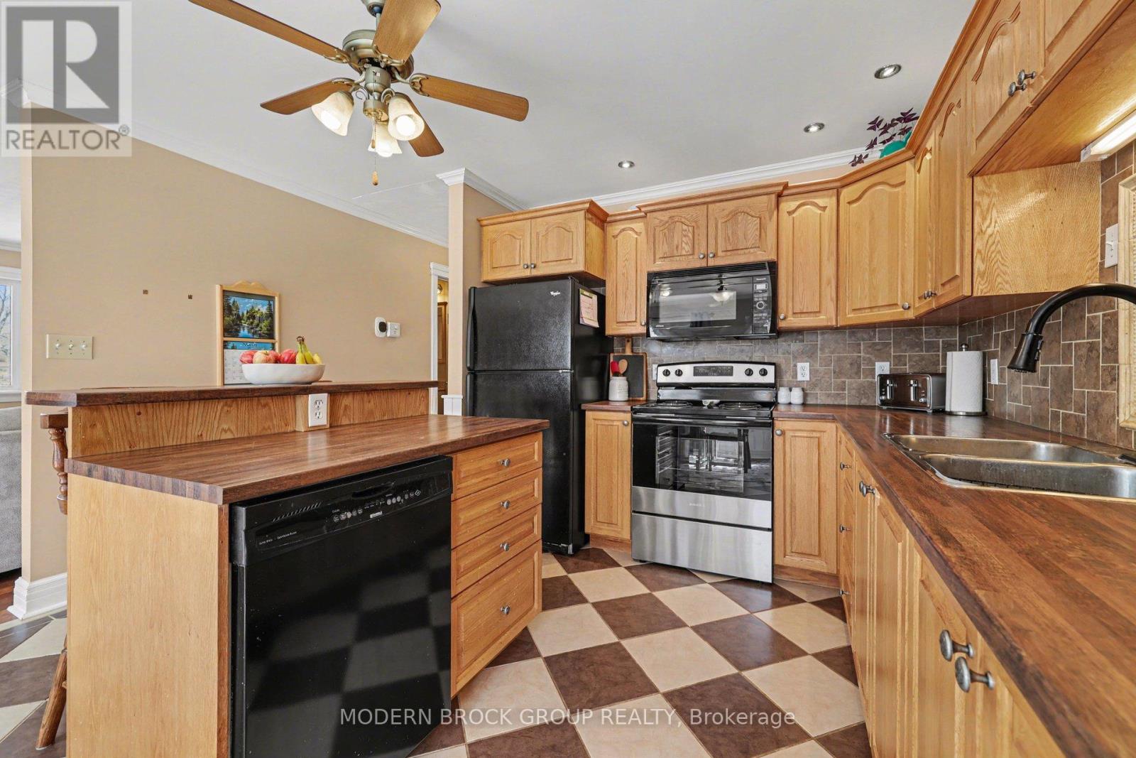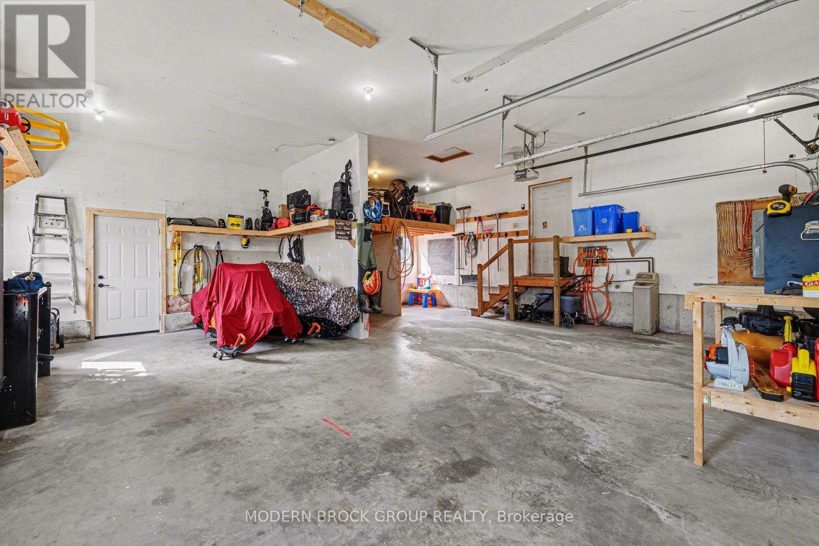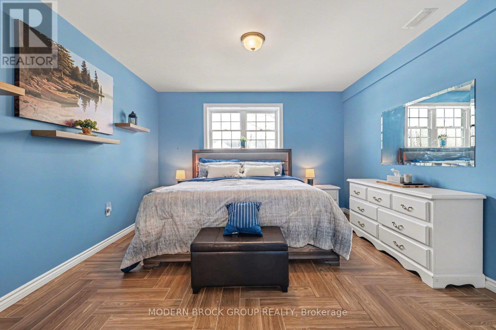 Welcome to this beautifully maintained home just outside of Toledo, offering the perfect blend of privacy and convenience, only about a 15-minute drive to Smiths Falls and about 30 minutes to Brockville. Situated on just under an acre, this 2007-built property provides ample space both inside and out. The upper level features a bright, naturally lit kitchen with dining space, updated countertops (2022), and a convenient pantry. Hardwood flooring runs throughout most of the upper level, with tile in the kitchen. Two bedrooms are located on this level, including one with a 4-piece ensuite, as well as an additional 4-piece bathroom. Sliding doors lead to the back deck, overlooking a lower stone patio-ideal for entertaining. The front entrance landing offers practical access to the attached 2-bay garage-spacious, clean, and complete with a man door to the side, along with a 2-piece bathroom and a mudroom, perfect for busy households. The finished basement includes two additional bedrooms, one currently used as the primary retreat, featuring three closets and a private ensuite with a soaker tub. Large basement windows allow for plenty of natural light. You'll also find a spacious laundry room, generous wood storage, a crawl space, and additional pantry storage. Recent upgrades include an aluminum wood shed (2024), pressure tank (2024), back deck (2024), exterior doors & shutters painted (2023) and a heat pump with A/C (2025). A well-rounded home offering comfort, functionality, and outdoor space, perfect for families or those looking to enjoy a quieter lifestyle within easy commuting distance. (id:28469)