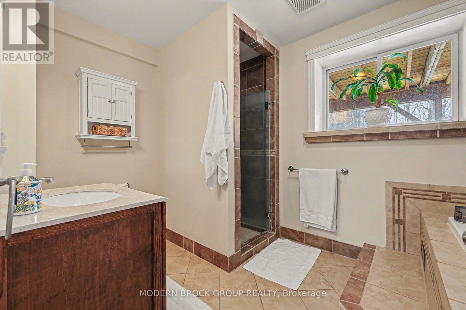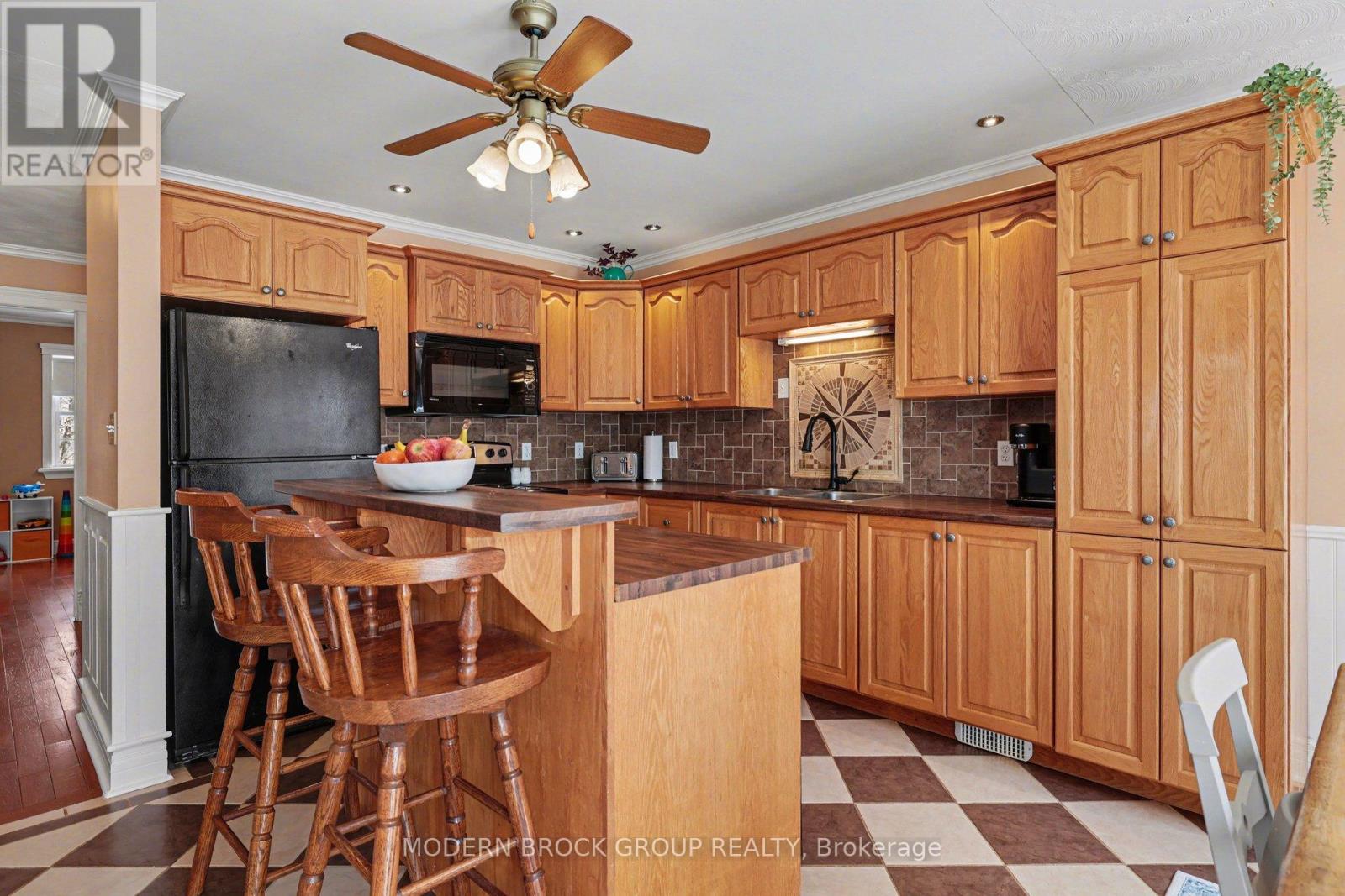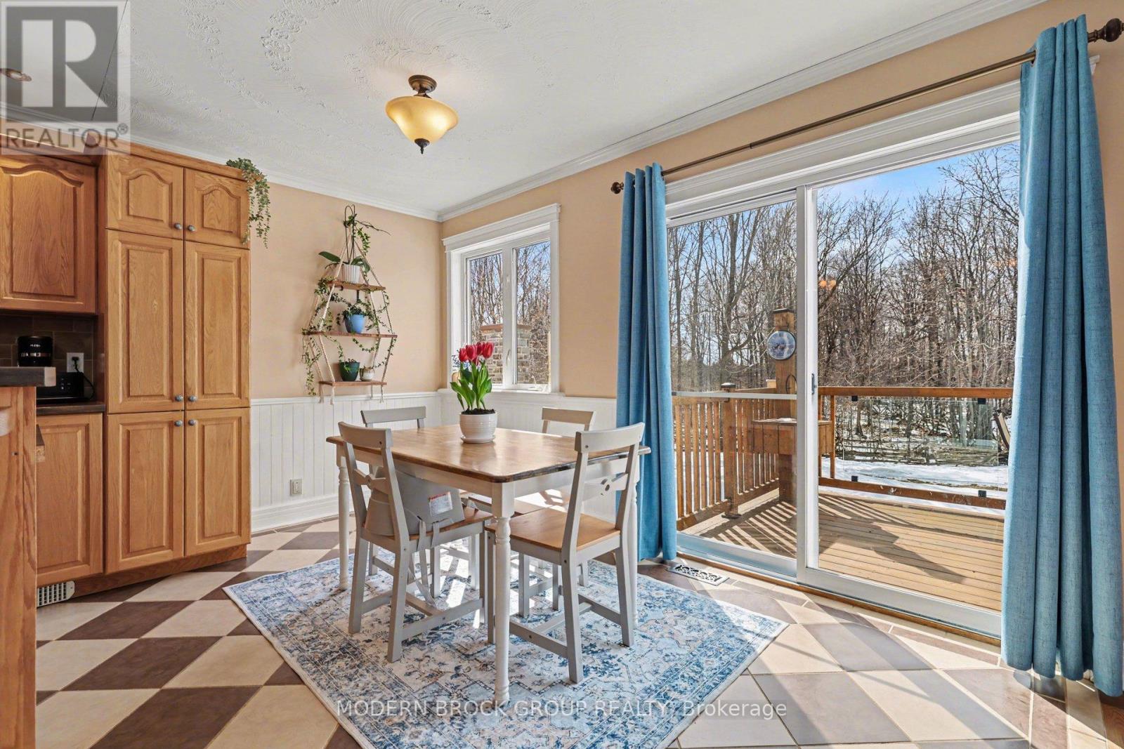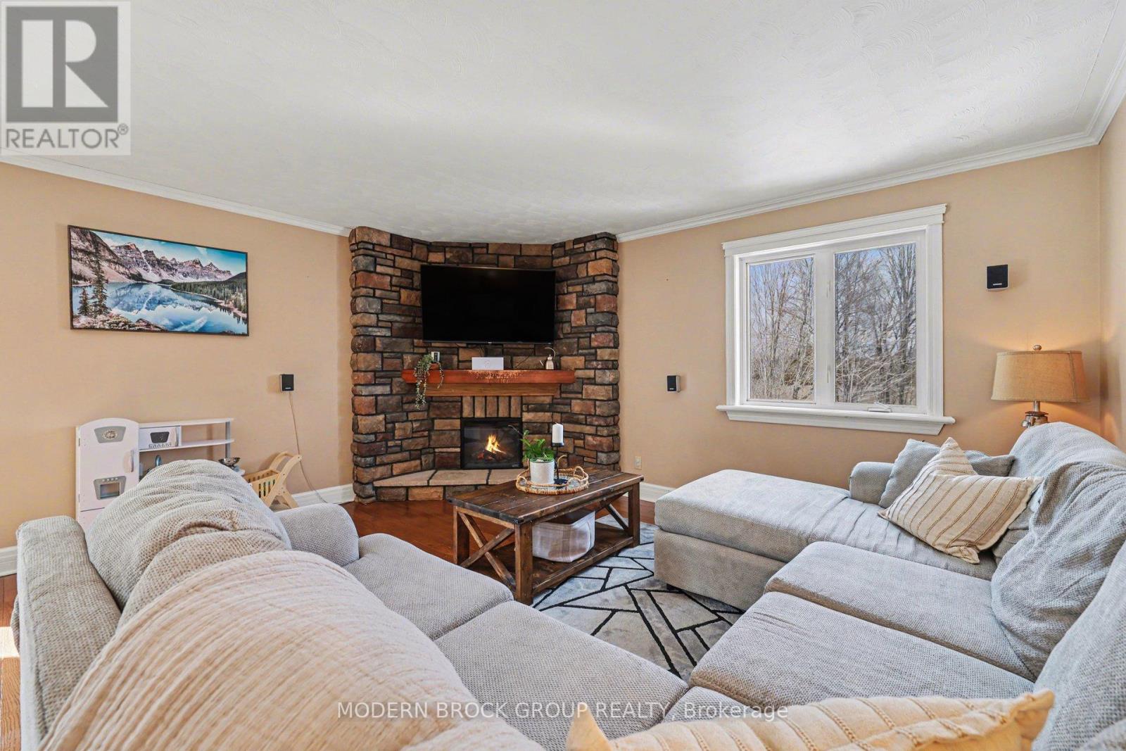 Welcome to this beautifully maintained home just outside of Toledo, offering the perfect blend of privacy and convenience, only about a 15-minute drive to Smiths Falls and about 30 minutes to Brockville. Situated on just under an acre, this 2007-built property provides ample space both inside and out. The upper level features a bright, naturally lit kitchen with dining space, updated countertops (2022), and a convenient pantry. Hardwood flooring runs throughout most of the upper level, with tile in the kitchen. Two bedrooms are located on this level, including one with a 4-piece ensuite, as well as an additional 4-piece bathroom. Sliding doors lead to the back deck, overlooking a lower stone patio-ideal for entertaining. The front entrance landing offers practical access to the attached 2-bay garage-spacious, clean, and complete with a man door to the side, along with a 2-piece bathroom and a mudroom, perfect for busy households. The finished basement includes two additional bedrooms, one currently used as the primary retreat, featuring three closets and a private ensuite with a soaker tub. Large basement windows allow for plenty of natural light. You'll also find a spacious laundry room, generous wood storage, a crawl space, and additional pantry storage. Recent upgrades include an aluminum wood shed (2024), pressure tank (2024), back deck (2024), exterior doors & shutters painted (2023) and a heat pump with A/C (2025). A well-rounded home offering comfort, functionality, and outdoor space, perfect for families or those looking to enjoy a quieter lifestyle within easy commuting distance. (id:28469)
