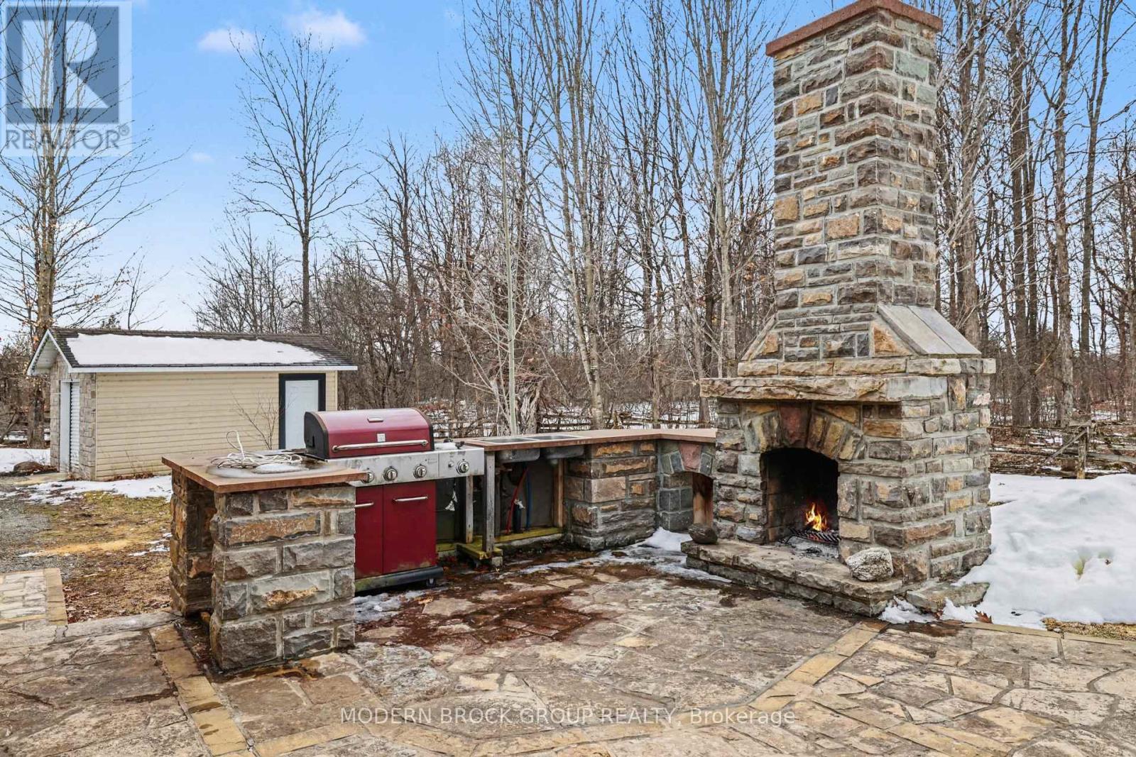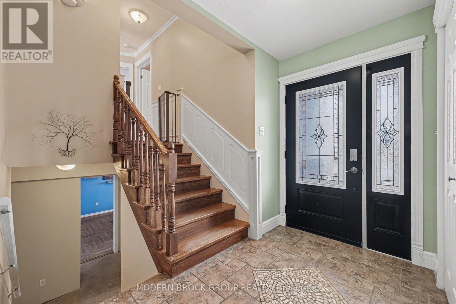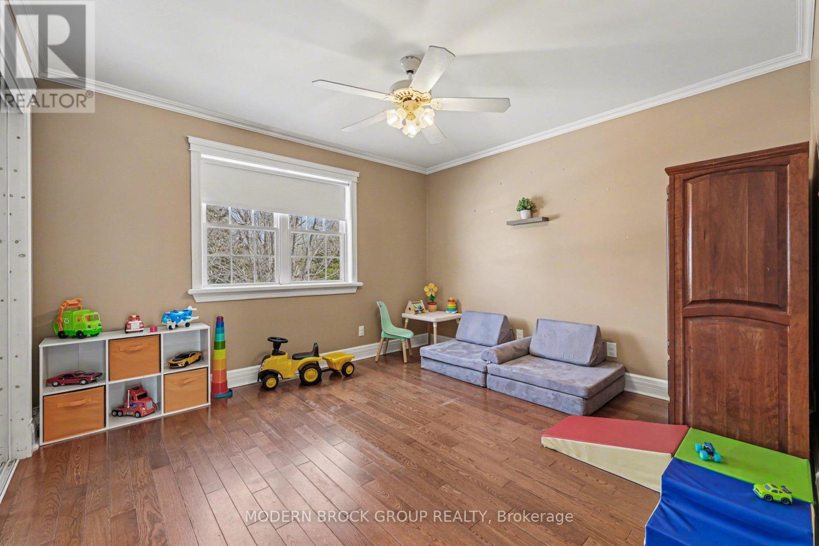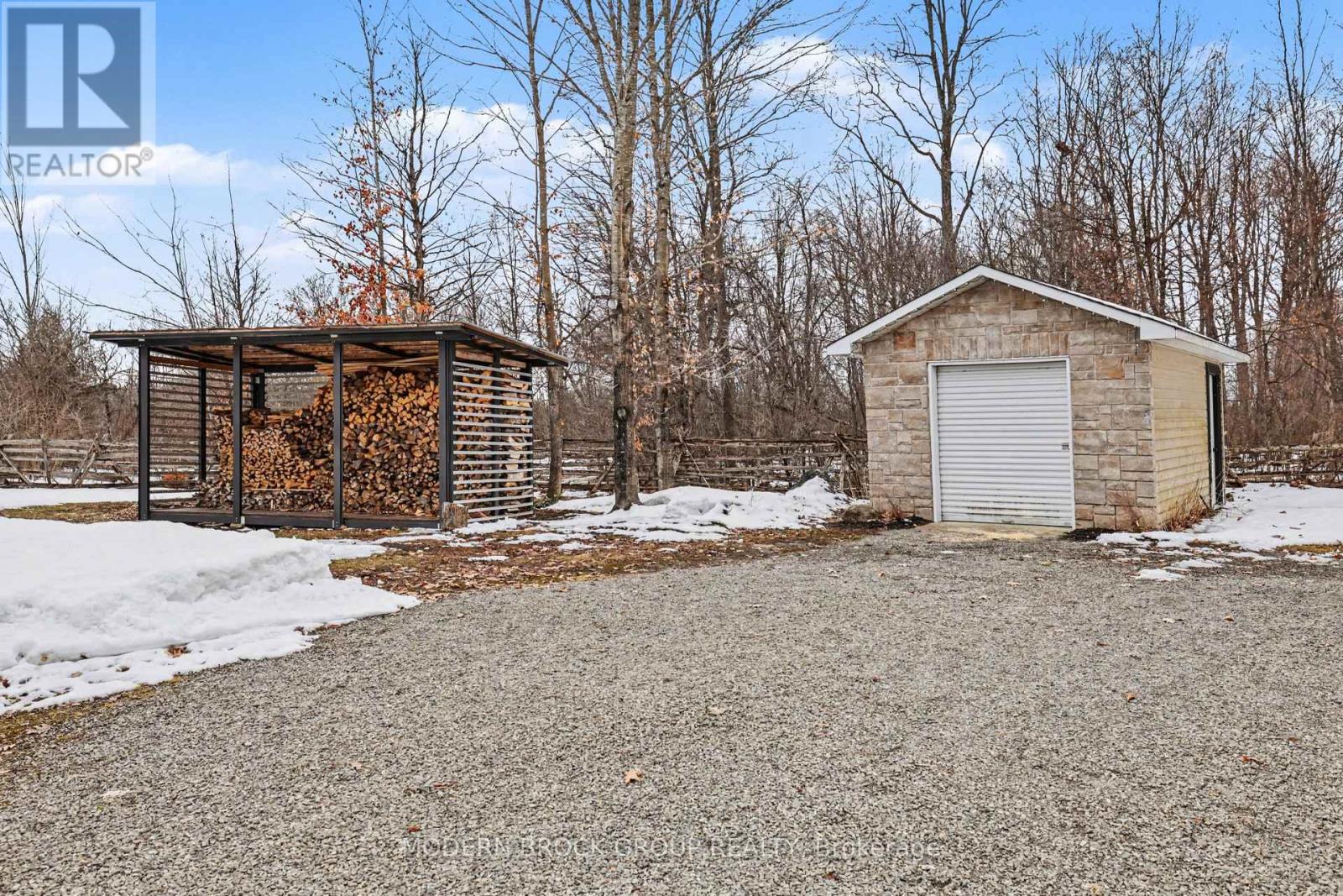 Welcome to this beautifully maintained home just outside of Toledo, offering the perfect blend of privacy and convenience, only about a 15-minute drive to Smiths Falls and about 30 minutes to Brockville. Situated on just under an acre, this 2007-built property provides ample space both inside and out. The upper level features a bright, naturally lit kitchen with dining space, updated countertops (2022), and a convenient pantry. Hardwood flooring runs throughout most of the upper level, with tile in the kitchen. Two bedrooms are located on this level, including one with a 4-piece ensuite, as well as an additional 4-piece bathroom. Sliding doors lead to the back deck, overlooking a lower stone patio-ideal for entertaining. The front entrance landing offers practical access to the attached 2-bay garage-spacious, clean, and complete with a man door to the side, along with a 2-piece bathroom and a mudroom, perfect for busy households. The finished basement includes two additional bedrooms, one currently used as the primary retreat, featuring three closets and a private ensuite with a soaker tub. Large basement windows allow for plenty of natural light. You'll also find a spacious laundry room, generous wood storage, a crawl space, and additional pantry storage. Recent upgrades include an aluminum wood shed (2024), pressure tank (2024), back deck (2024), exterior doors & shutters painted (2023) and a heat pump with A/C (2025). A well-rounded home offering comfort, functionality, and outdoor space, perfect for families or those looking to enjoy a quieter lifestyle within easy commuting distance. (id:28469)