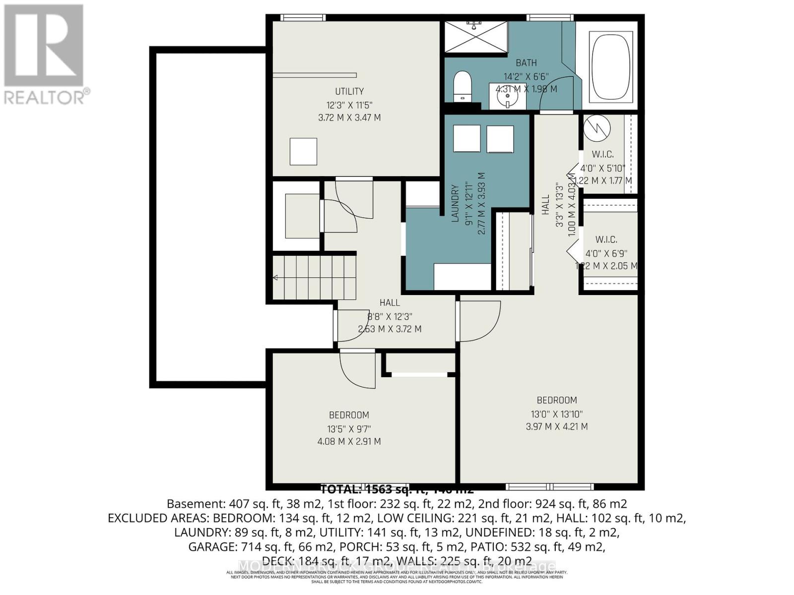Upper Level Primary Bedroom 3.73 m x 3.96 m
