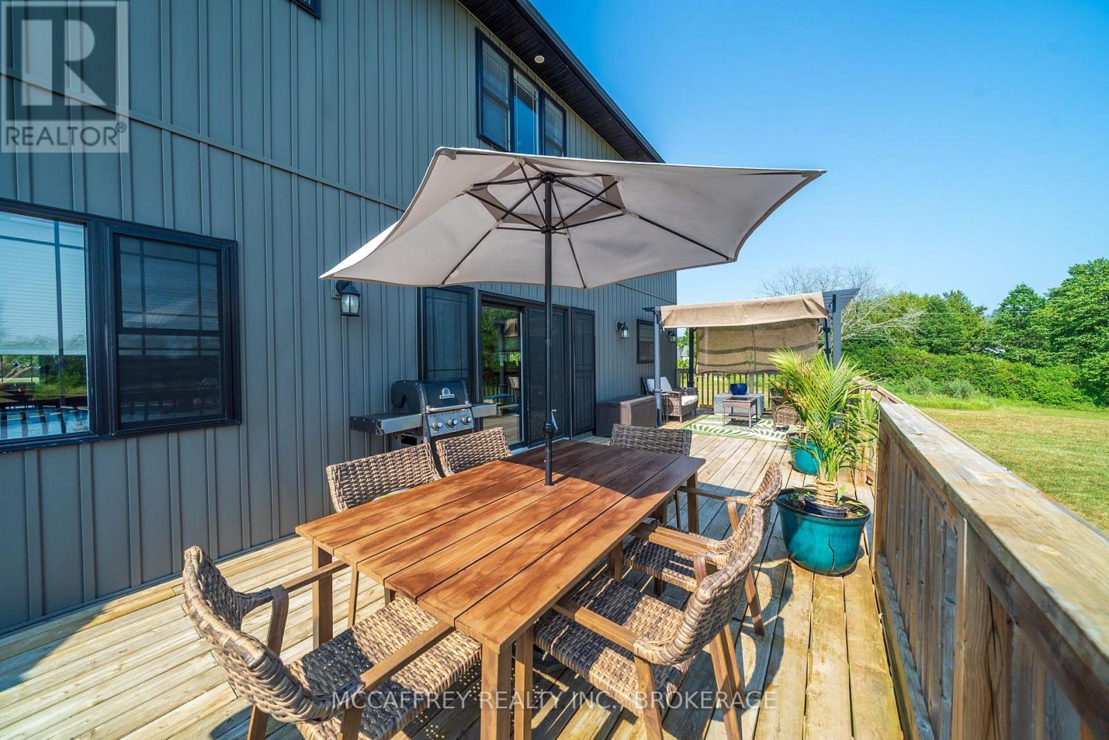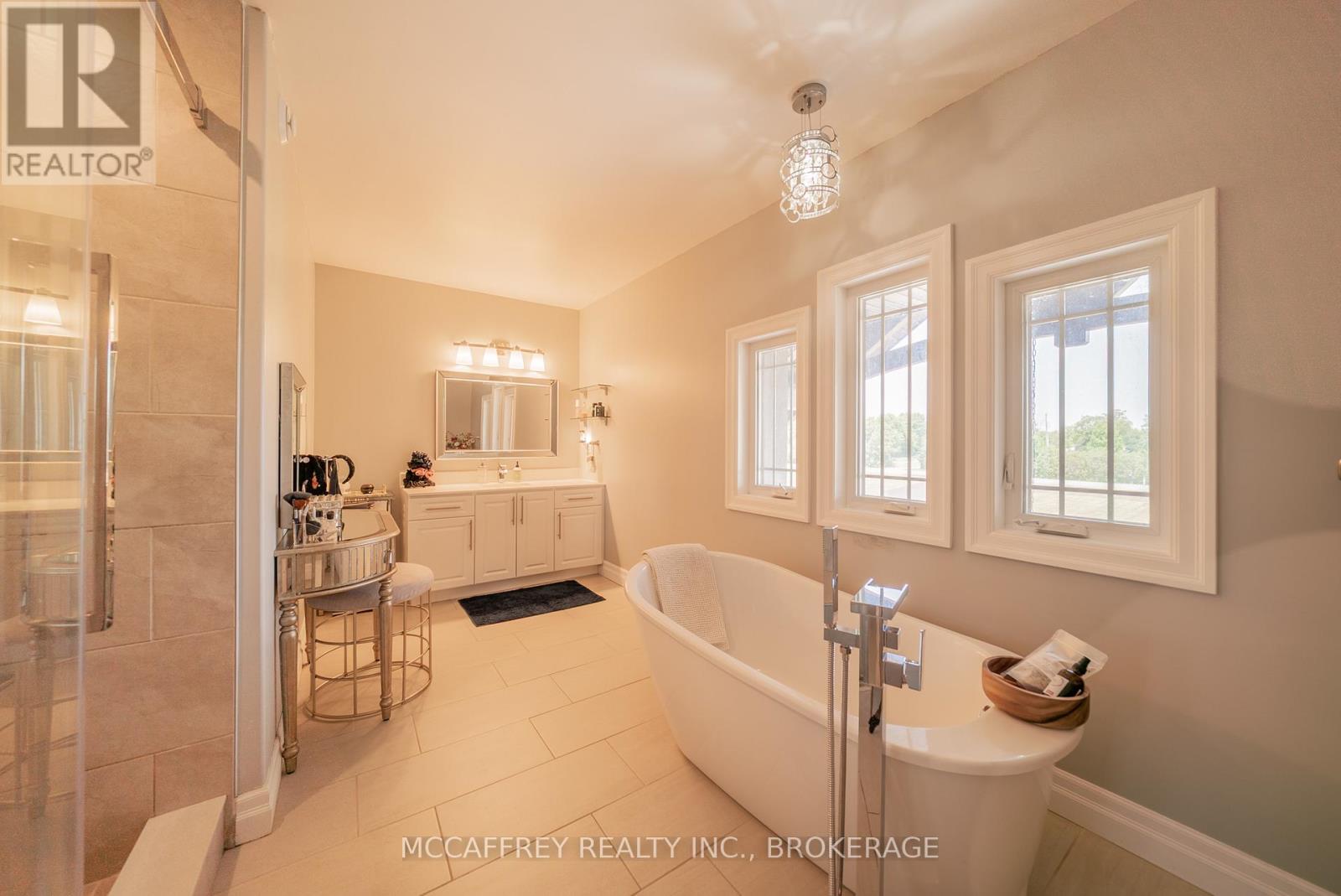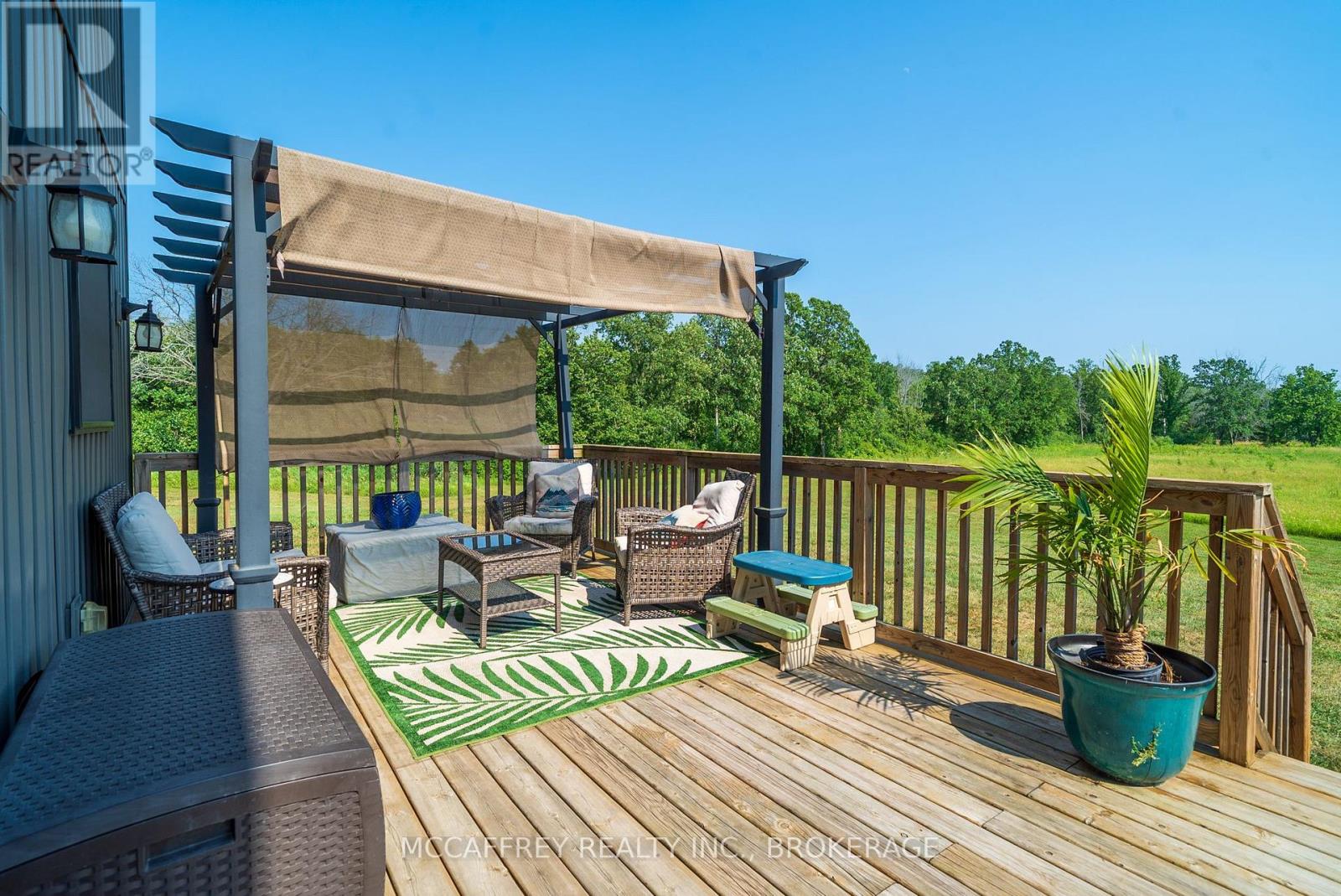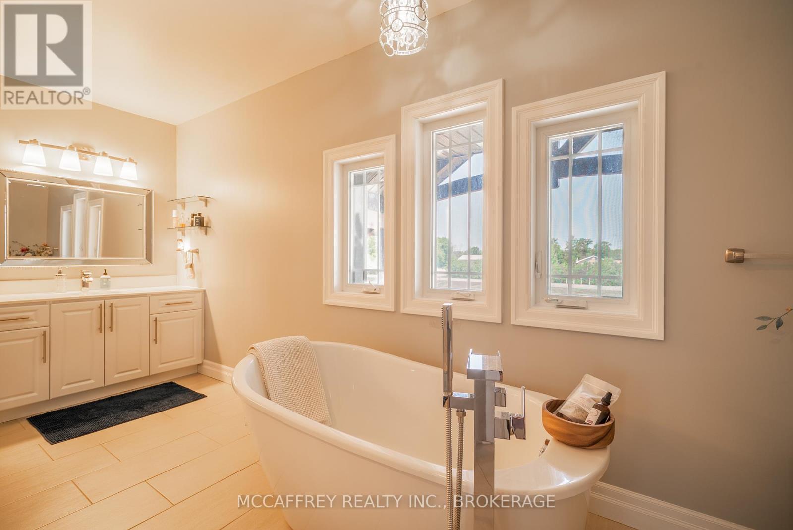 Welcome to your dream home, a breathtaking custom-built two-story residence that effortlessly combines luxury and comfort. As you approach the property, you'll be greeted by a circular driveway, and an attached two-car garage that adds convenience and ample space for parking. The grand entrance is truly a sight to behold, featuring large, elegant wood beams that exude a timeless charm and glandular appeal. Step inside and immerse yourself in a sun-drenched space where an open-concept design seamlessly unites style and functionality. The expansive kitchen is a chef's delight, complete with a large center island, generous pantry, and a dining area that invites lively gatherings and memorable moments. The spacious living room, bathed in natural light, offers the tranquility of a serene retreat. Open the patio doors to a welcoming deck, perfect for an afternoon unwind, and enjoy your private above-ground pool with picturesque views of the peaceful pond beyond. Completing the main level is a chic 2-piece bathroom, a versatile den or office space for those who work from home, and a convenient mudroom with direct access to the garage. Ascend the stunning wood staircase to the second floor, where every detail has been crafted with care. Discover three beautifully appointed bedrooms and a well-equipped laundry room with a sink for added ease. The primary bedroom is a true oasis, featuring a walk-in closet and a luxurious 4-piece ensuite that promises relaxation with its indulgent soaker tub and sleek glass shower. The lower level offers even more, leading you to a vibrant finished recreation room, a perfect canvas for family entertainment or personal retreat. This level also includes a fifth bedroom, a 4-piece bathroom, and a generous utility room with abundant storage. This spectacular home is your sanctuary, where every corner is designed to inspire and comfort. Embrace the elegance, the space, and the breathtaking views this is a property not to be missed! (id:28469)
