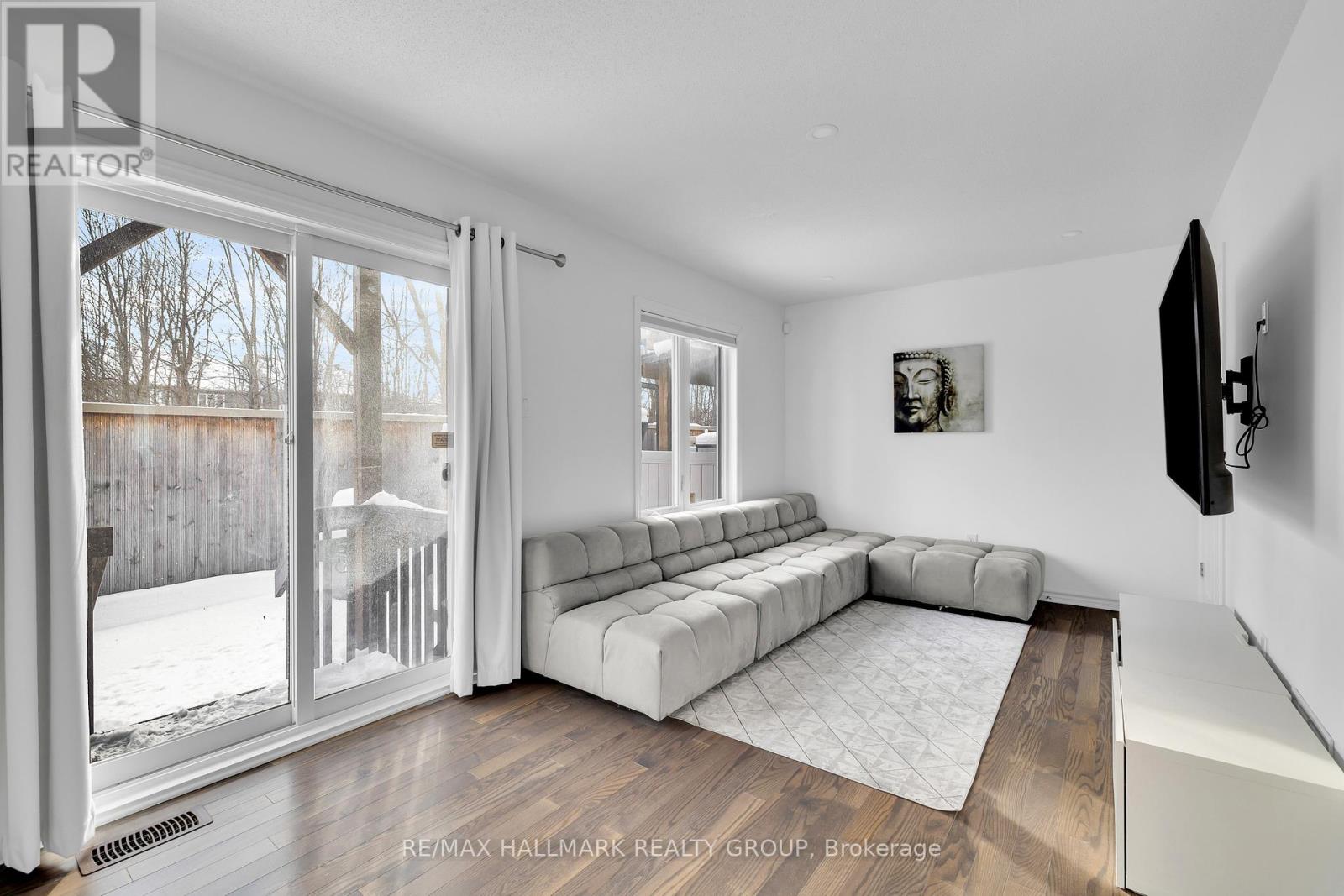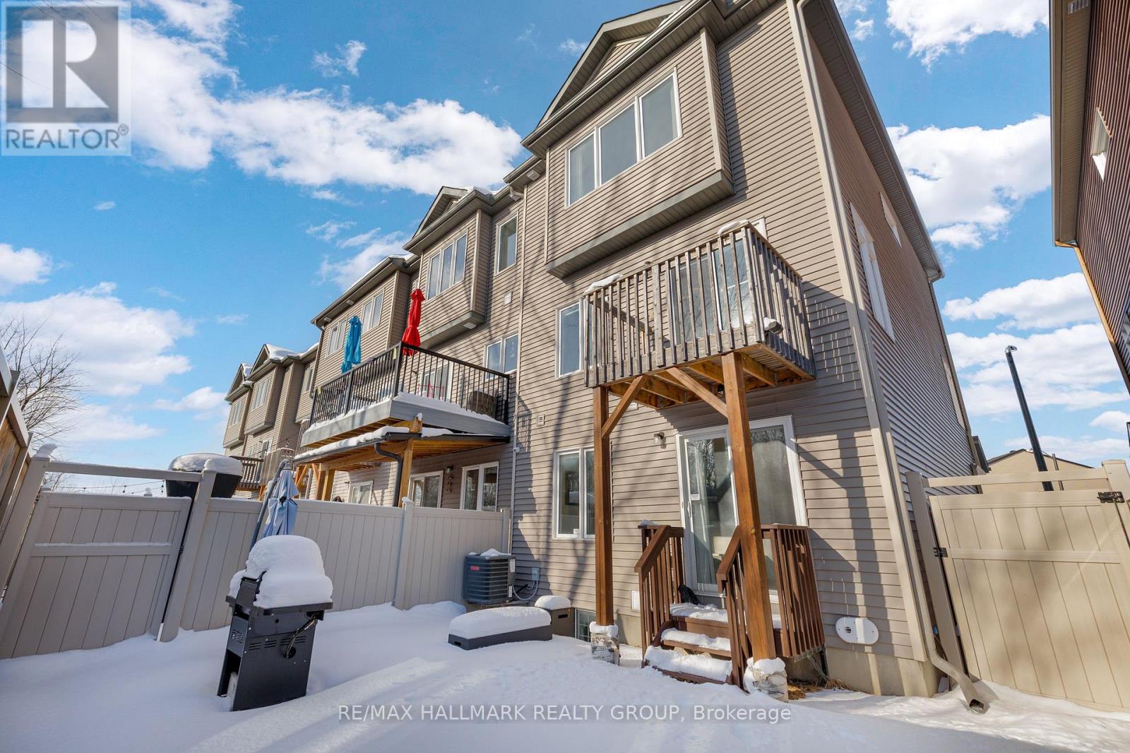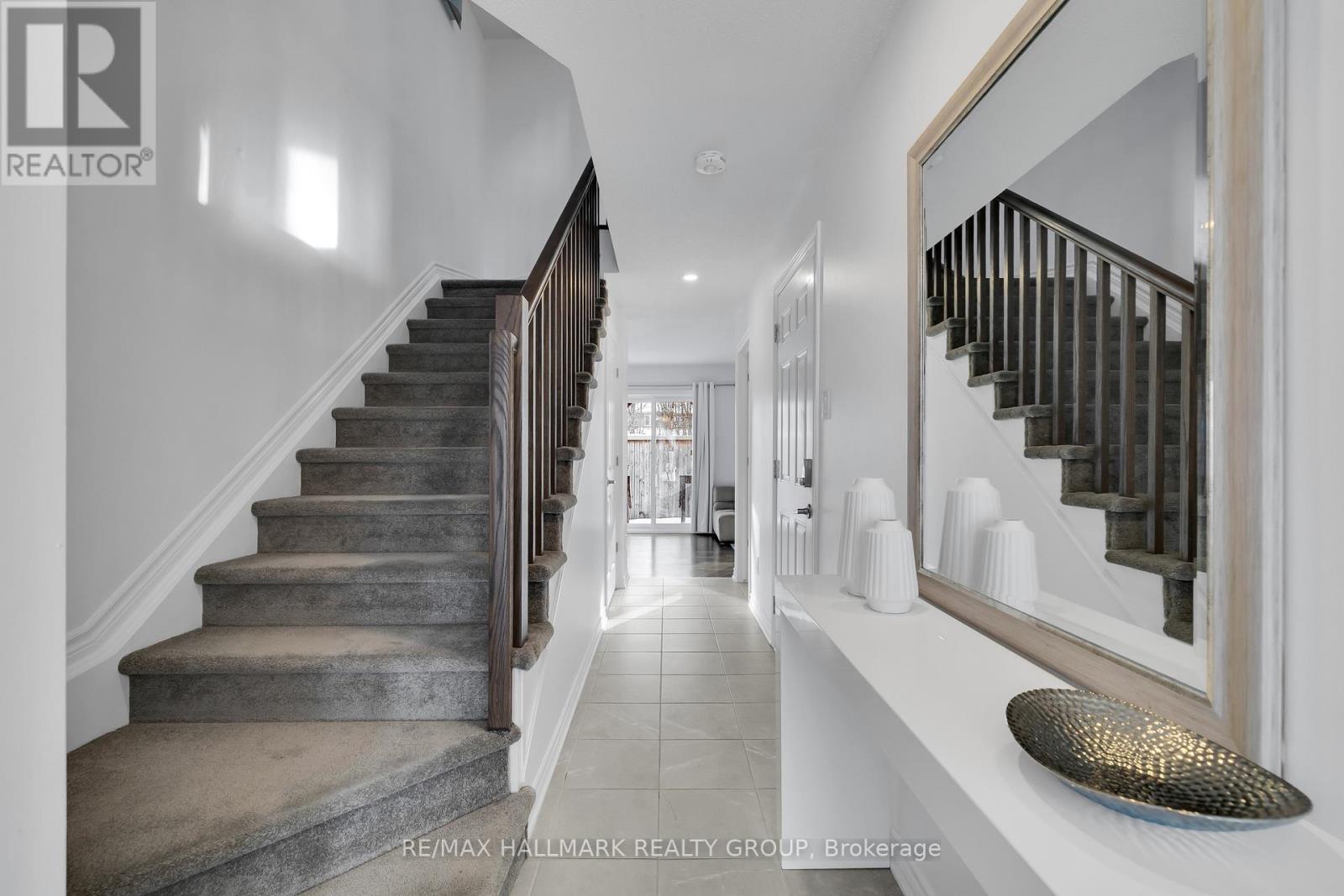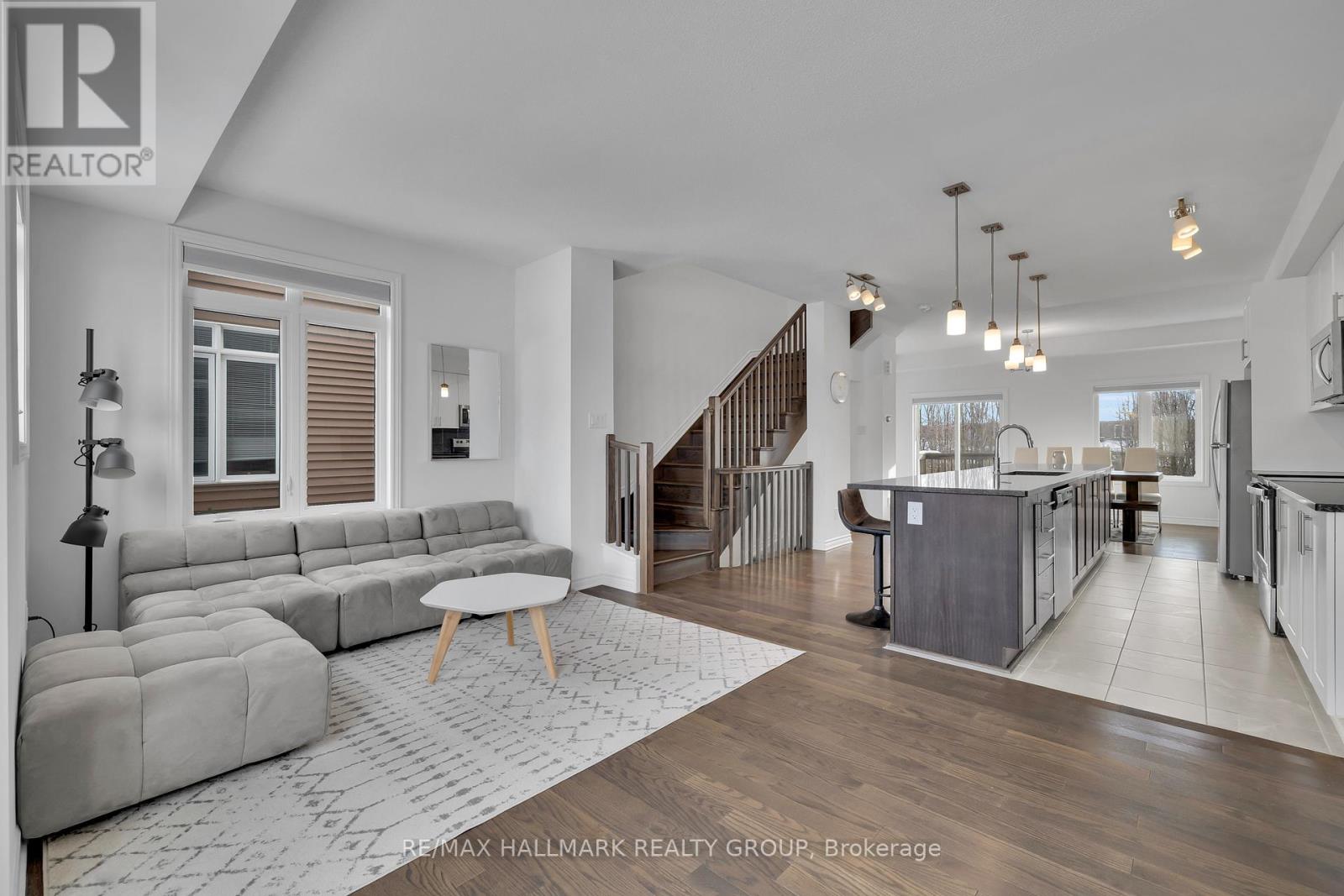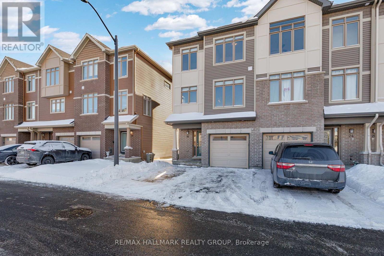 **OPEN HOUSE THURSDAY JANUARY 29th at 5-7PM** -- Welcome to 26 Barn Swallow Private, a meticulously maintained end-unit 3-storey townhome built in 2019 and presented in true model home condition. This bright and thoughtfully designed residence offers 3 bedrooms, 3 bathrooms, and a functional layout ideal for modern living.A tiled entry welcomes you into the main level, where upgraded hardwood flooring highlights a versatile living space at the rear of the home with direct access to a private, professionally landscaped backyard, perfect for relaxing or entertaining. The second level features a stunning open-concept kitchen, dining, and living area, anchored by an oversized stone island with seating for 6 to 8 guests. Side windows flood the space with natural light, showcasing dark hardwood floors, crisp white cabinetry, and stainless steel appliances. A dedicated dining area opens to a balcony overlooking a mature, tree-lined ravine, offering a peaceful backdrop rarely found in townhome living.The third floor hosts three well-proportioned bedrooms, including a spacious primary retreat large enough for a king-size bed, complete with two walk-in closets and a sleek ensuite featuring a full glass shower. The additional bedrooms are ideal for children, guests, or a home office.The unfinished basement provides excellent flexibility and is currently used as a gym, with potential for a family room, bedroom, or additional living space to suit your needs.Ideally located just off Earl Armstrong Road between Prince of Wales Drive and Limebank or Riverside Drive, this home offers convenient access throughout the city, nearby shopping, schools, and everyday amenities. The private road includes 11 additional visitor parking spaces, along with nearby street parking. (id:28469)