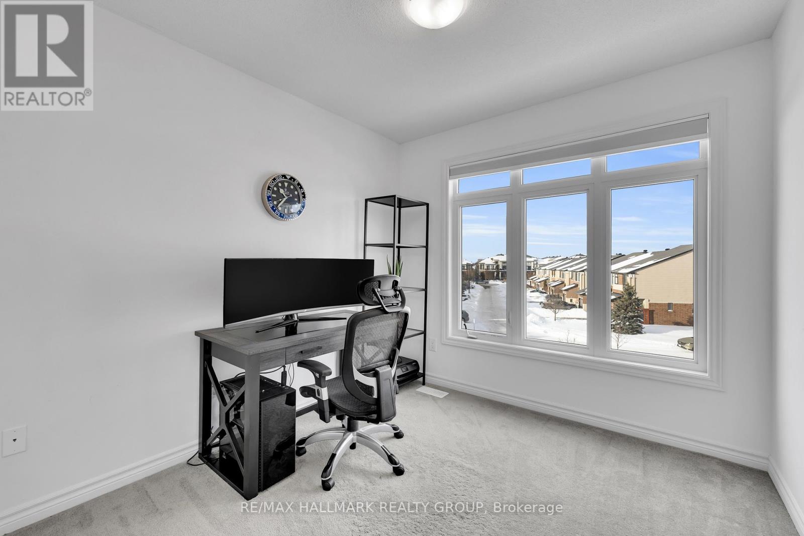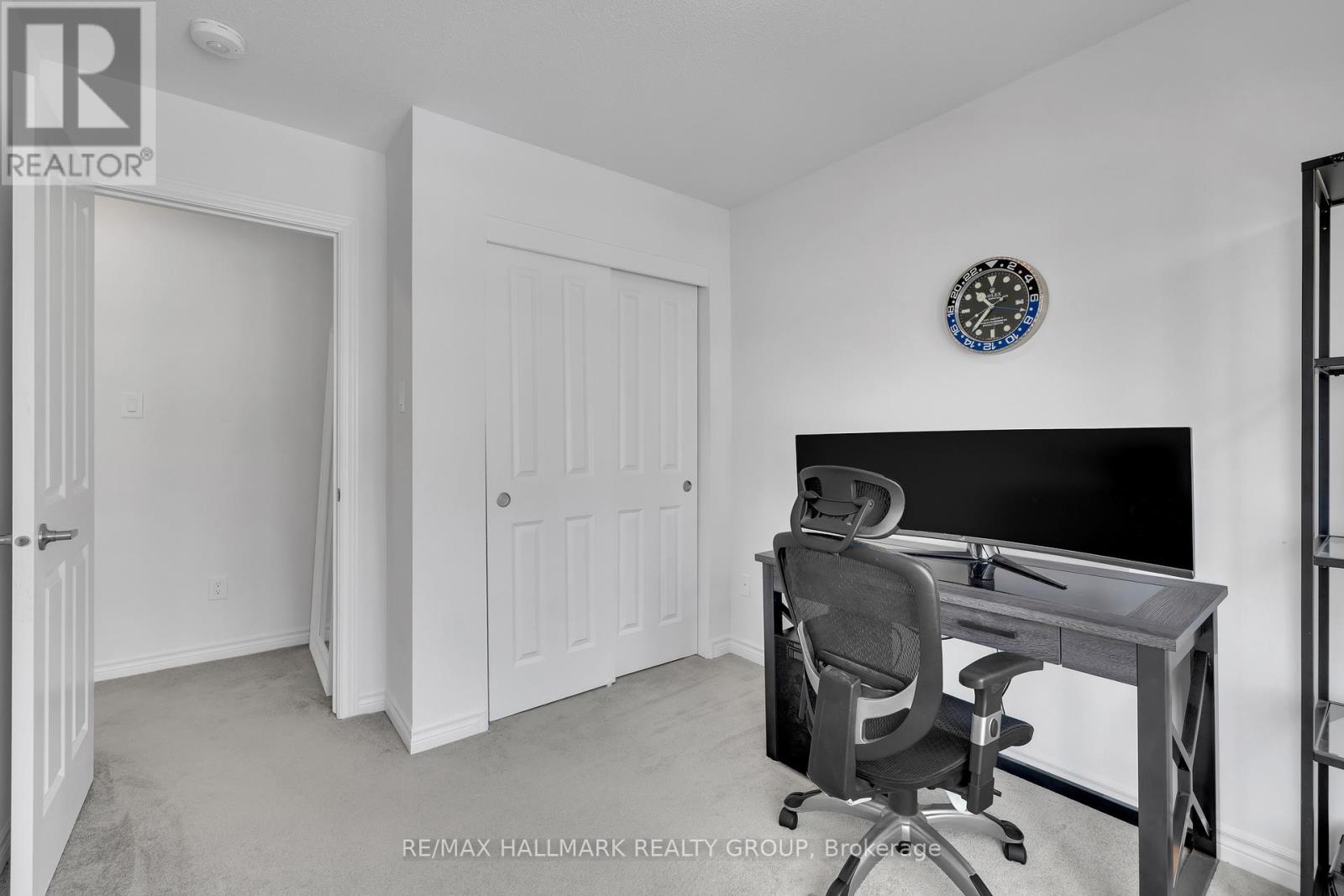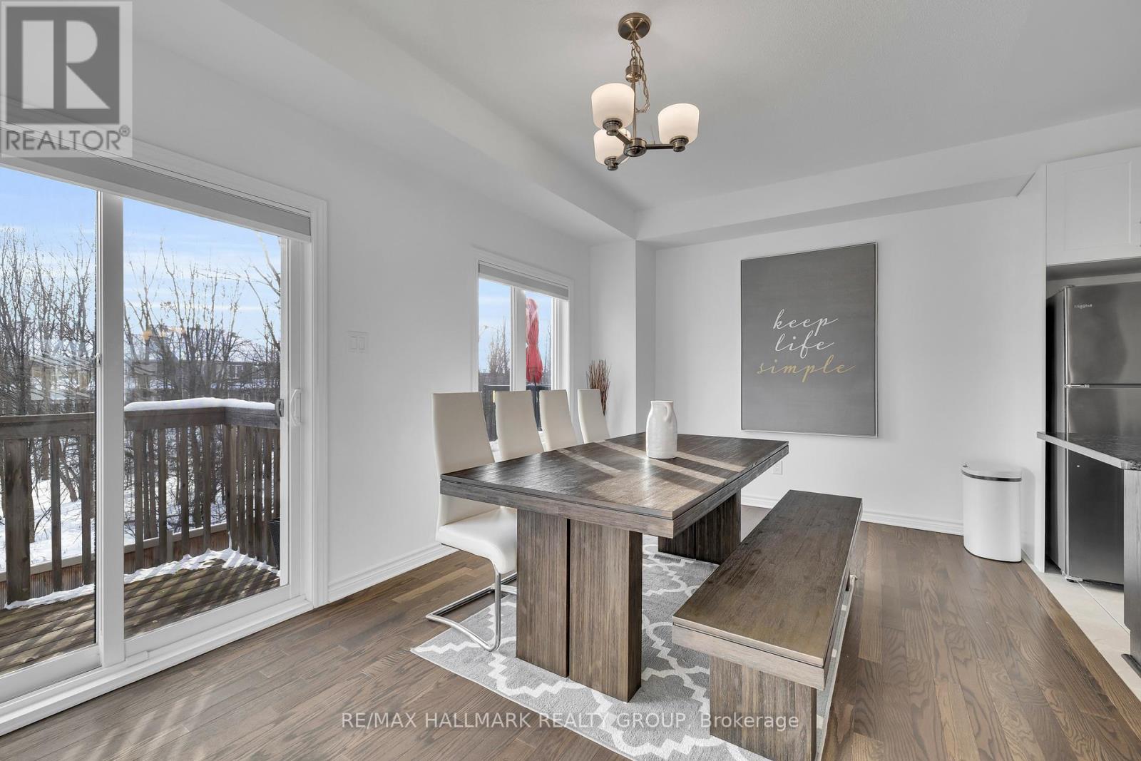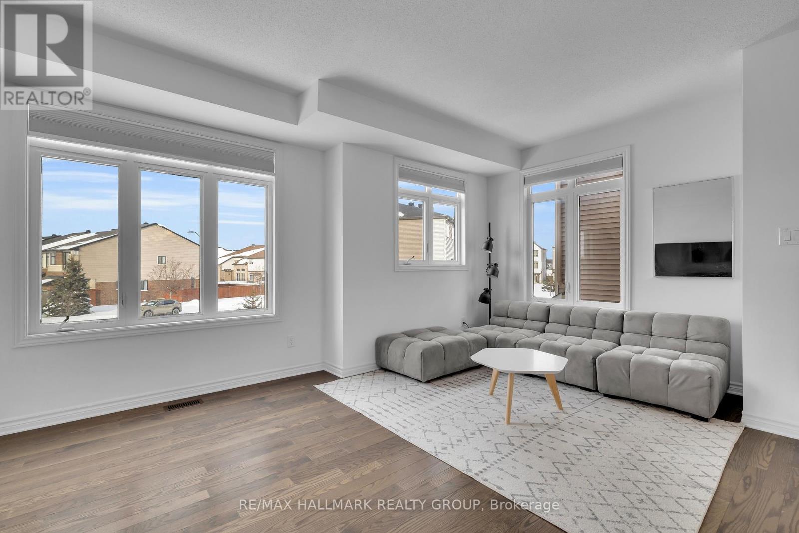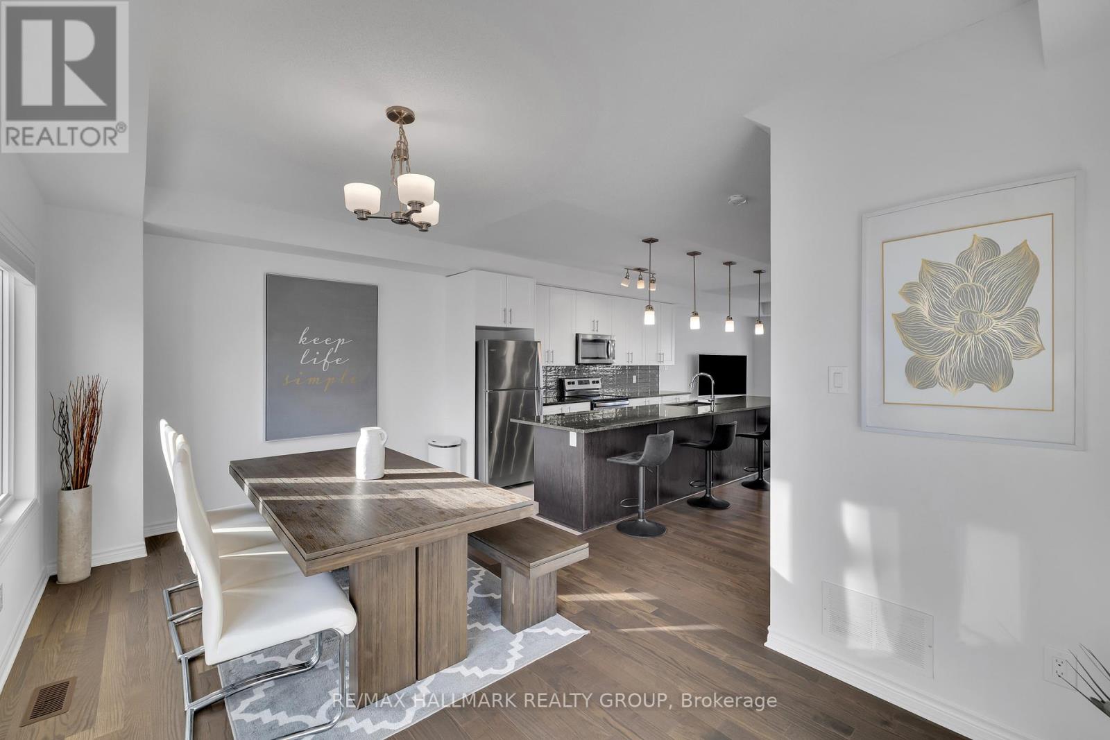 **OPEN HOUSE THURSDAY JANUARY 29th at 5-7PM** -- Welcome to 26 Barn Swallow Private, a meticulously maintained end-unit 3-storey townhome built in 2019 and presented in true model home condition. This bright and thoughtfully designed residence offers 3 bedrooms, 3 bathrooms, and a functional layout ideal for modern living.A tiled entry welcomes you into the main level, where upgraded hardwood flooring highlights a versatile living space at the rear of the home with direct access to a private, professionally landscaped backyard, perfect for relaxing or entertaining. The second level features a stunning open-concept kitchen, dining, and living area, anchored by an oversized stone island with seating for 6 to 8 guests. Side windows flood the space with natural light, showcasing dark hardwood floors, crisp white cabinetry, and stainless steel appliances. A dedicated dining area opens to a balcony overlooking a mature, tree-lined ravine, offering a peaceful backdrop rarely found in townhome living.The third floor hosts three well-proportioned bedrooms, including a spacious primary retreat large enough for a king-size bed, complete with two walk-in closets and a sleek ensuite featuring a full glass shower. The additional bedrooms are ideal for children, guests, or a home office.The unfinished basement provides excellent flexibility and is currently used as a gym, with potential for a family room, bedroom, or additional living space to suit your needs.Ideally located just off Earl Armstrong Road between Prince of Wales Drive and Limebank or Riverside Drive, this home offers convenient access throughout the city, nearby shopping, schools, and everyday amenities. The private road includes 11 additional visitor parking spaces, along with nearby street parking. (id:28469)