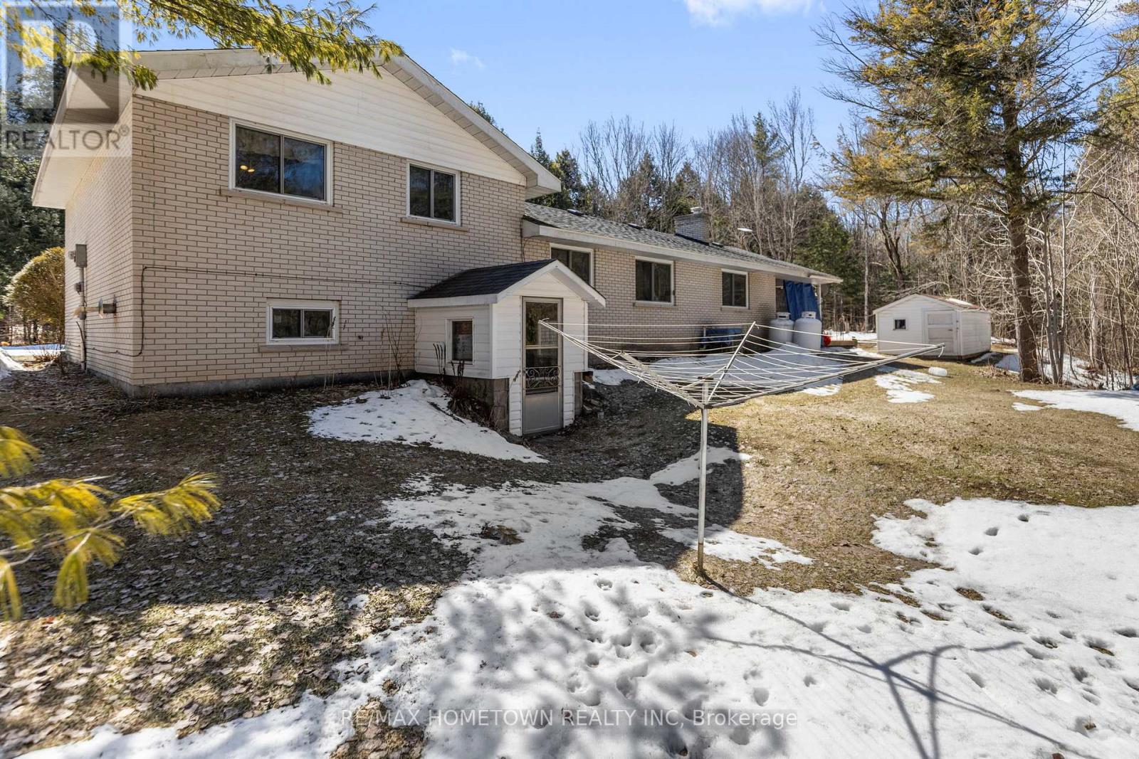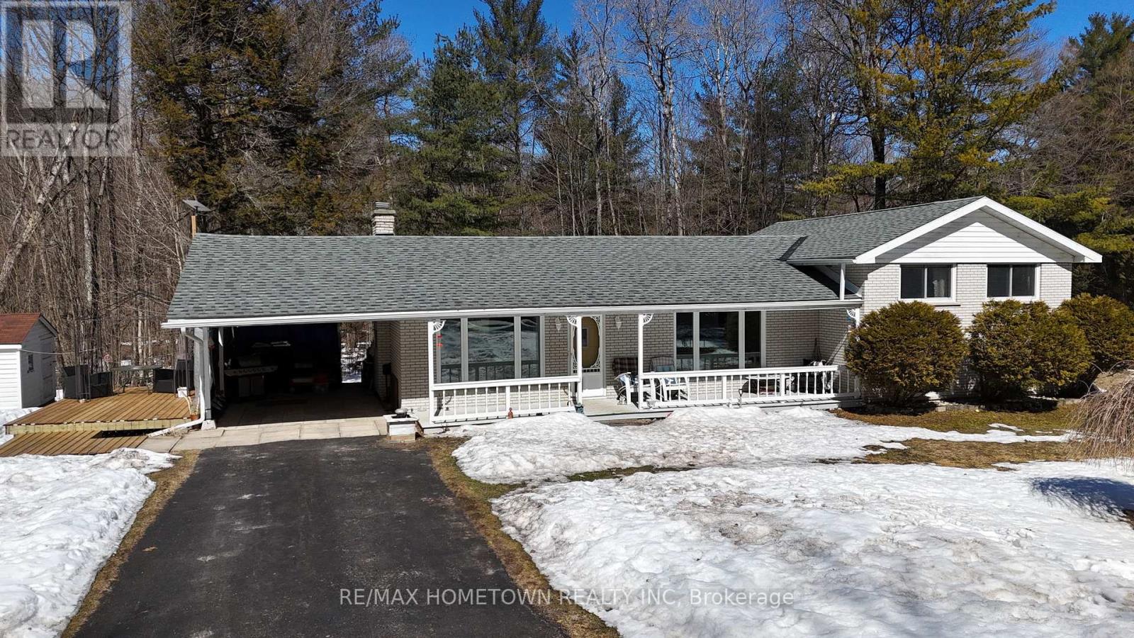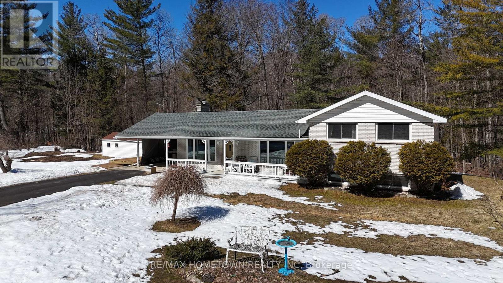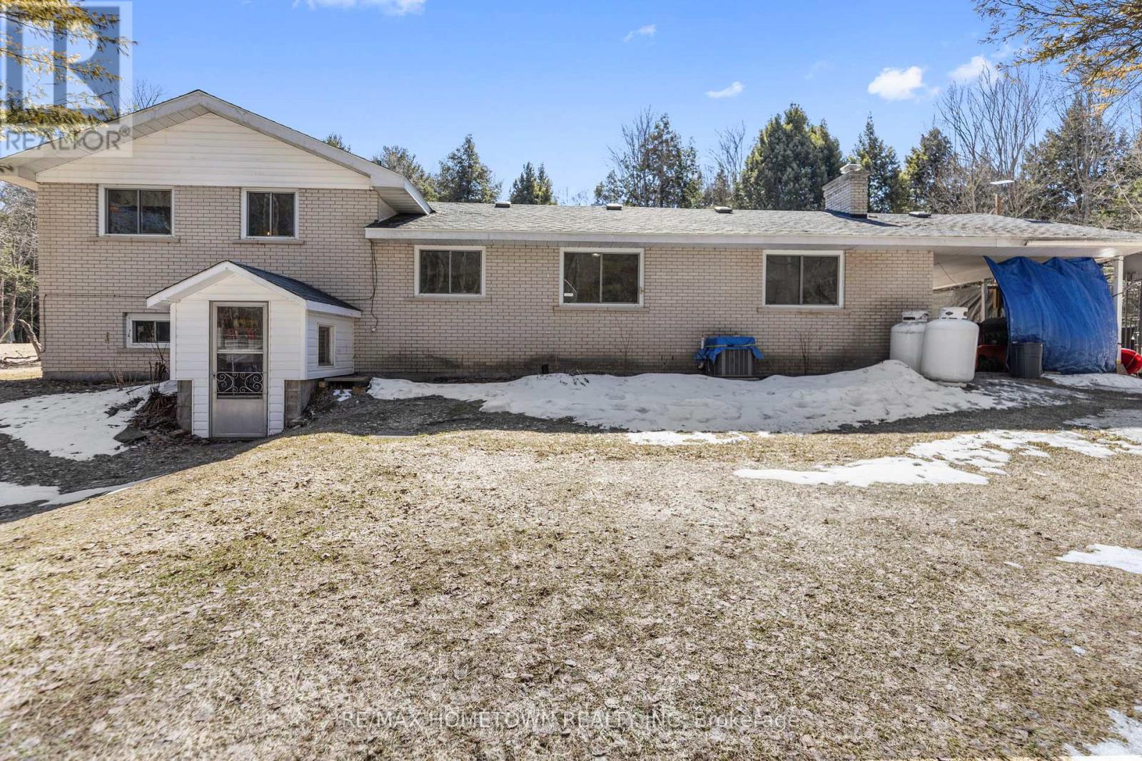 If you're looking for a peaceful setting with easy access to everyday amenities, this home offers the best of both. Conveniently located just minutes from Highway 401, you can quickly head east to Brockville or west to Gananoque and Kingston. This 3-bedroom, 1.5-bath home has seen several important updates, including the furnace, A/C, breaker panel, and well. Previous listing details note the roof was completed in 2021, with windows dated 2013 and 2014. With 1,388 sq ft of living space, the home is set back from the road, offering privacy and plenty of outdoor room for kids to play or simply enjoy the surrounding trees. The covered veranda and attached carport create a great outdoor hangout space in the warmer months, with ample room to add a pool or expand your outdoor setup. Inside, you're welcomed by a spacious living room featuring a fireplace. From there, step into the kitchen, which offers plenty of counter and cupboard space and flows nicely into a dining area ideal for family meals and entertaining. Upstairs, you'll find three well-sized bedrooms and a 4-piece bathroom. The lower level is bright, thanks to large windows, and offers excellent potential for an in-law suite. It's currently being used as a fourth bedroom or recreation space, complete with a 2-piece bath, laundry area, and a walkout to the backyard. The basement provides additional storage space. A solid home with room to grow in a quiet, convenient location. Come take a look. Furnace 2026, Electrical Panel 2025, Central Air 2025, well upgrade. Sellers were told the roof was done 2021, and windows in the house are stamped 2013-2014 (id:28469)