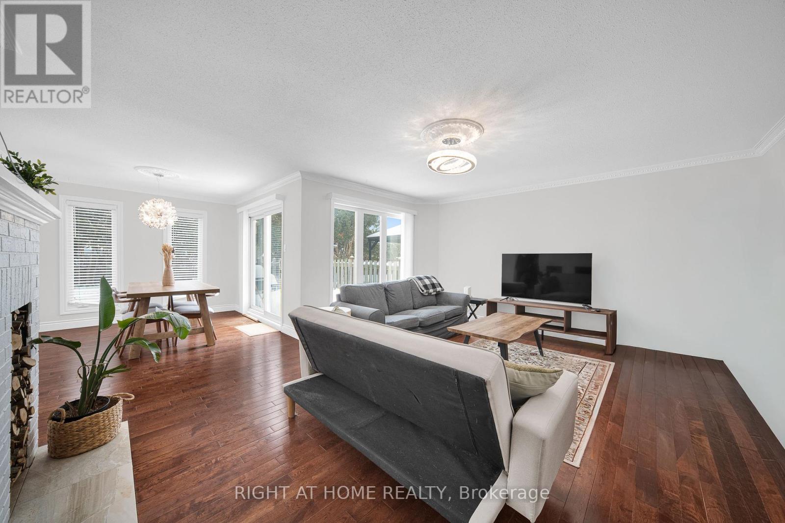 Beautifully maintained and move-in ready single-family home on quiet Quirt Street offering 3 bedrooms upstairs plus 1 bedroom in the fully finished basement and 3.5 bathrooms. The main floor features a spacious foyer, oversized living room with wood-burning fireplace, gleaming hardwood floors in the living and dining areas, and a renovated eat-in kitchen with stainless steel appliances. A circular staircase leads to the second level with newly installed hardwood flooring, a large primary bedroom with walk-in closet and 4-piece ensuite, two additional well-sized bedrooms, an oversized linen closet, and a full main bath, while the stairs are finished with new Berber carpet. The professionally finished lower level includes a generous family room with wood-burning fireplace, an office, a fourth bedroom, and a newly added powder room. Sliding doors open to a fully fenced, oversized backyard with a stone patio, ideal for entertaining or relaxing, all conveniently located close to shopping, O-Train/Transitway, parks, and recreation. Pride of ownership throughout! ** This is a linked property.** (id:28469)