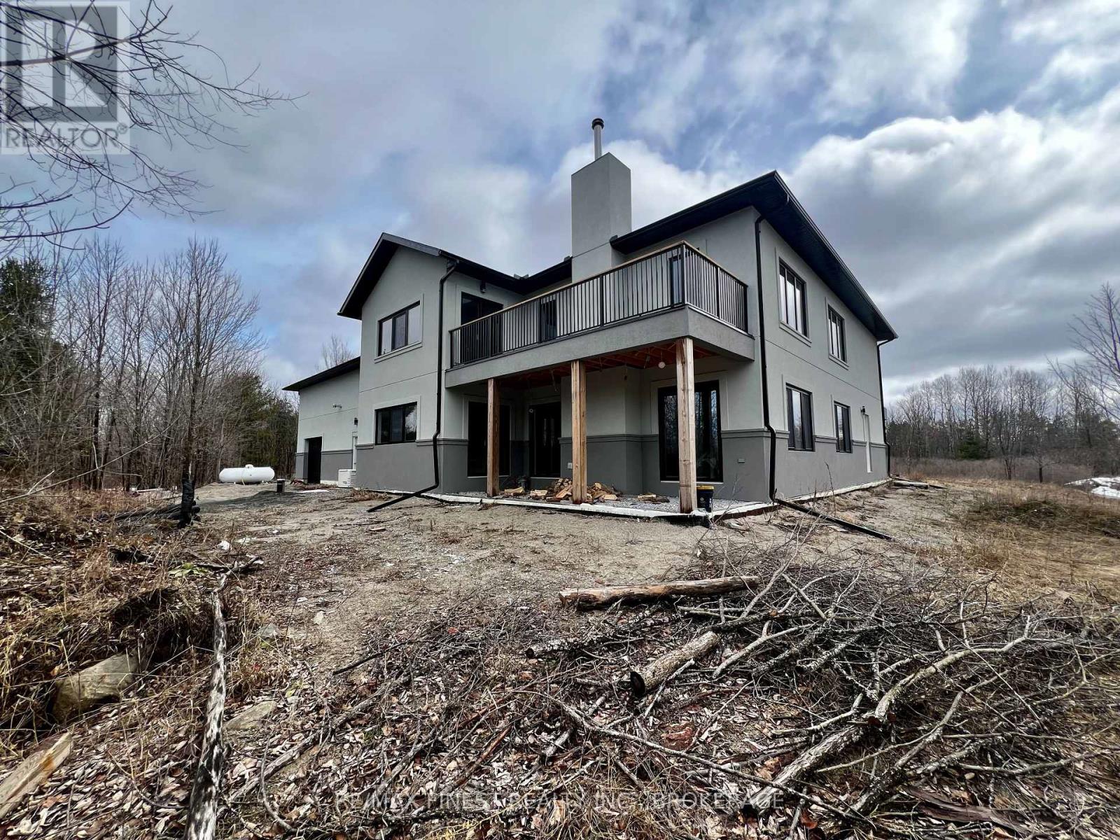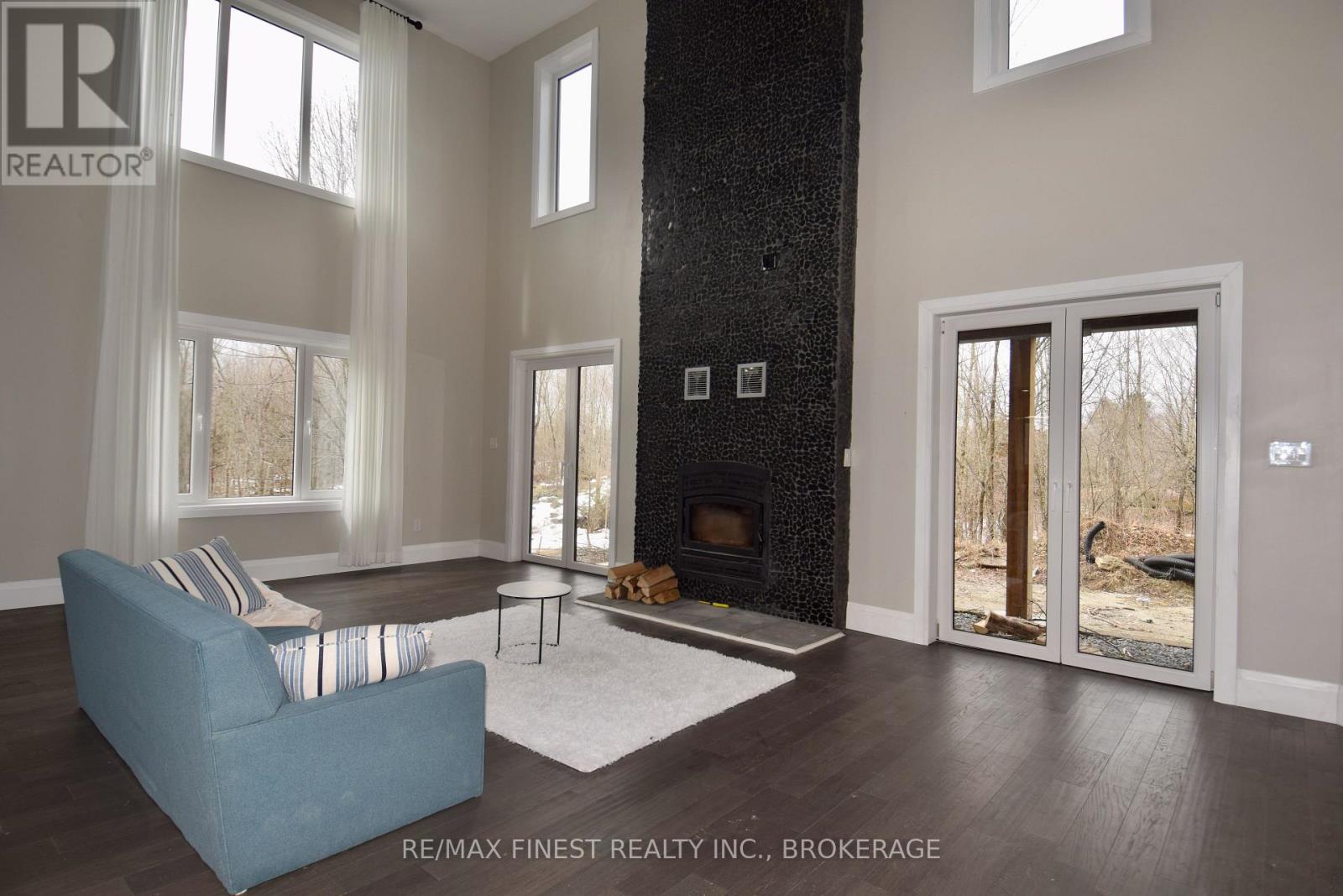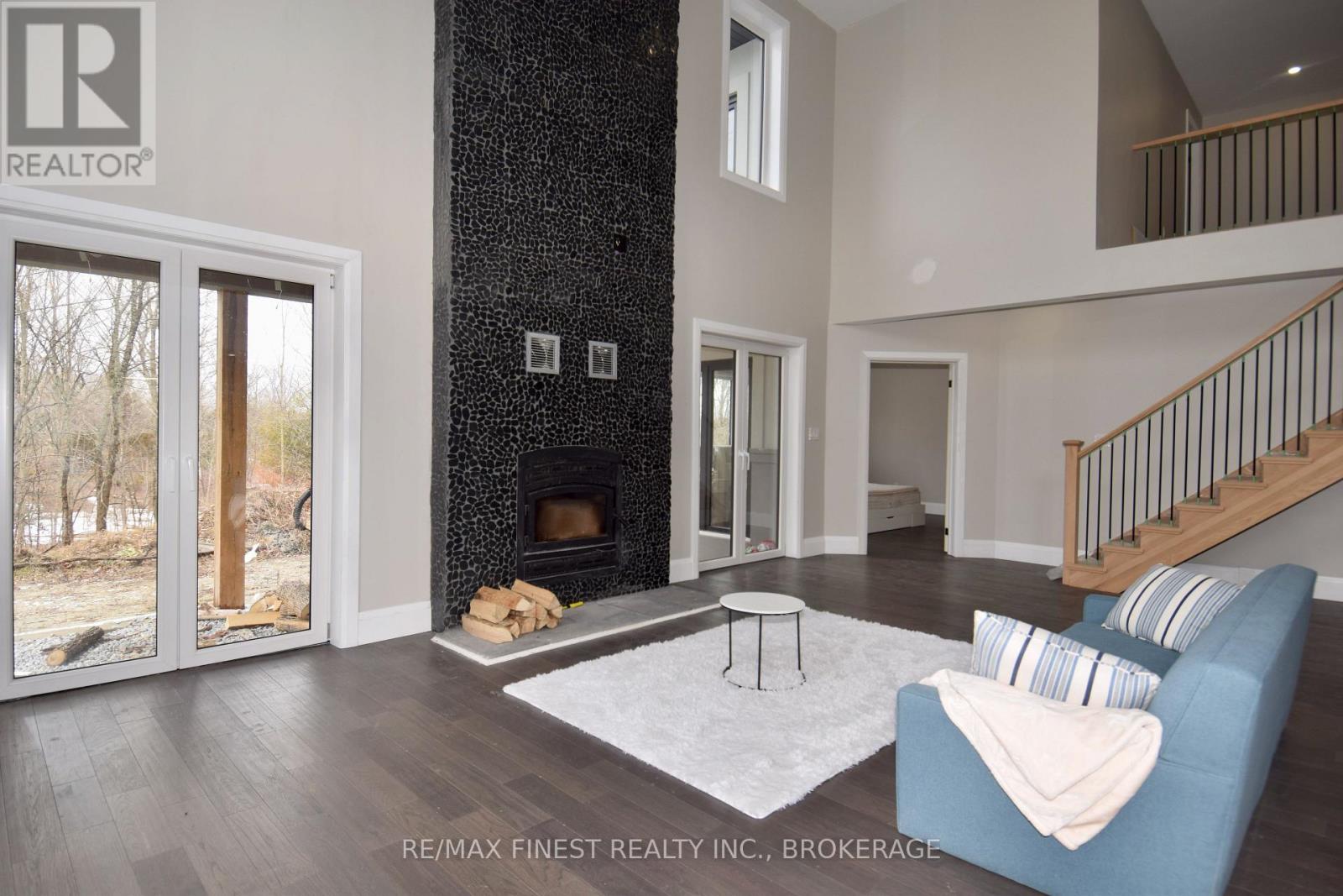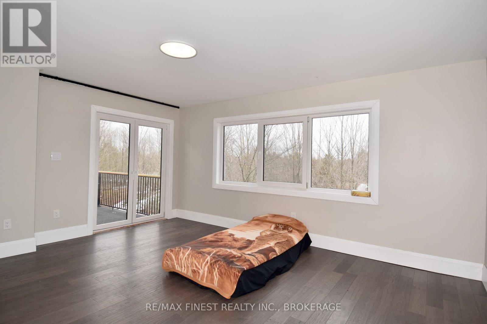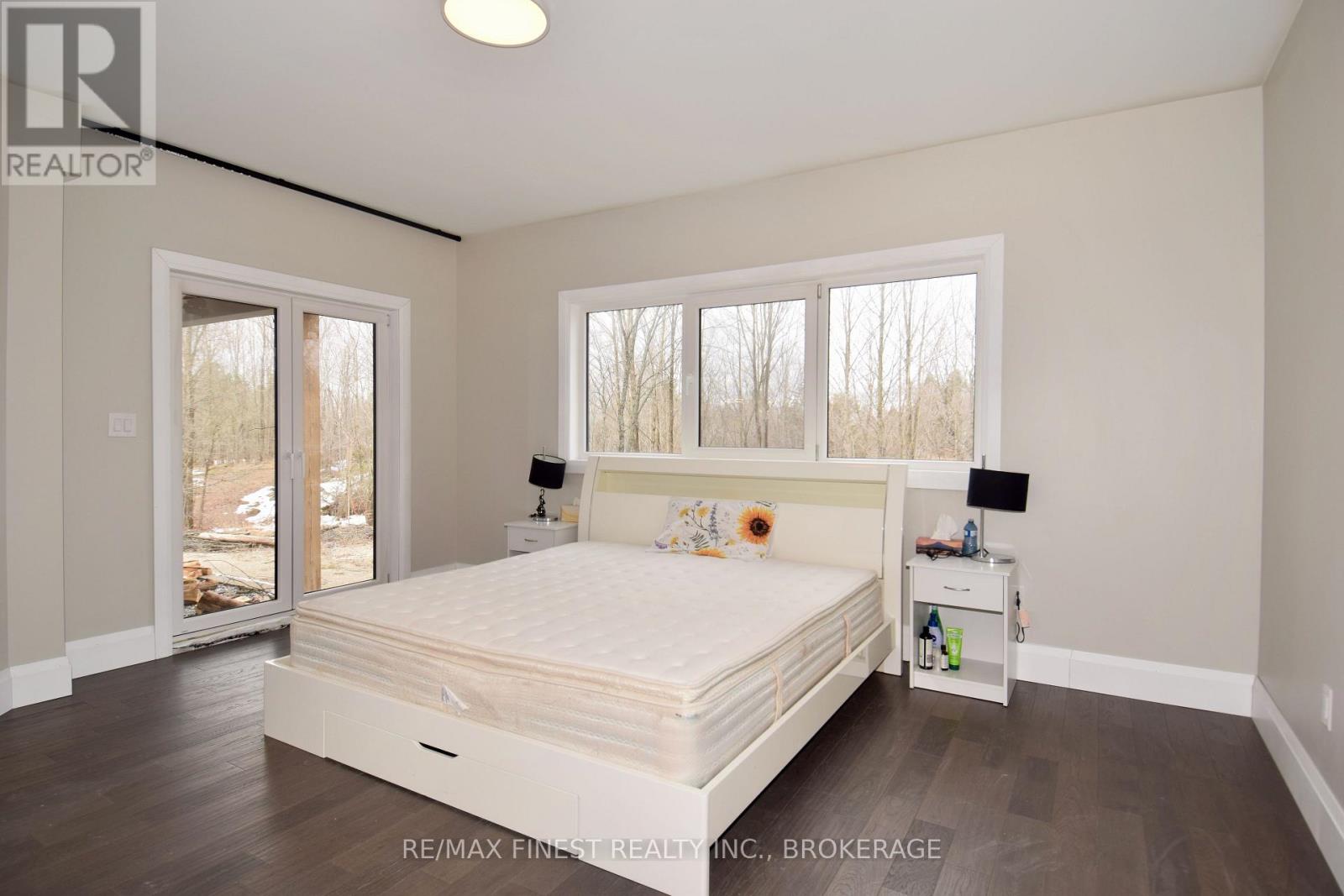 Welcome to your private country estate an exceptional custom-built two-storey executive homeset on over 50 acres of pristine land in the sought after Bob's Lake region. Offering more than3,500 square feet of finished living space, this stunning new construction delivers the perfect balance of luxury, comfort, and complete privacy, surrounded by panoramic views of rolling, treed landscapes. Thoughtfully designed and custom throughout, the home features soaring ceilings and a breathtaking cathedral great room anchored by a floor to ceiling fireplace, creating a warm and inviting focal point. The chef inspired kitchen is equally impressive, complete with stone countertops, an oversized island ideal for entertaining, formal dining area and a separate pantry. The main level offers a highly functional layout, including a private home office, a spacious primary suite with a full ensuite and large walk-in closet, as well as main floor laundry and a guest bathroom. Upstairs, you'll find three generously sized bedrooms, each with its own walk-in closet and access to a second storey deck where you can take in the peaceful natural surroundings. A large upper level bathroom with separate shower and tub completes the space. Quality finishes include European windows, hardwood and tile throughout, in-floor heating, and multiple access points to the outdoors and garage. The impressive 29 x 40 ft garage is a true hobbyist's dream, featuring a man door, double car door, and full transport-size door-perfect for storing vehicles, equipment, or recreational toys. Set well back from the road with a long private driveway, this property offers unmatched seclusion and natural beauty. Enjoy your own large pond, mature trees, and abundant wildlife including deer-ideal for outdoor enthusiasts, hunters, or anyone seeking a peaceful retreat. Located in a region known for its many lakes and recreational opportunities, this is your chance to escape the city and embrace country living at its finest. (id:28469)