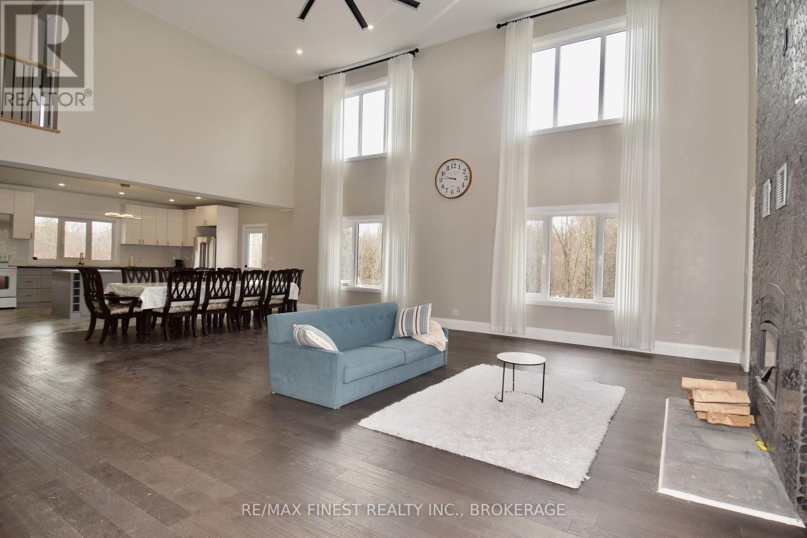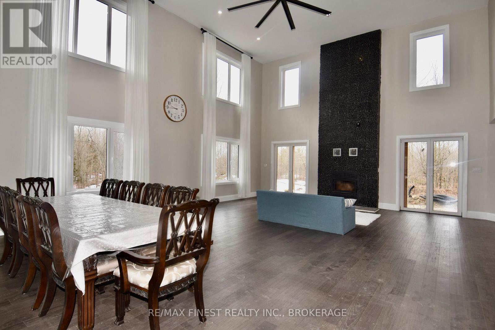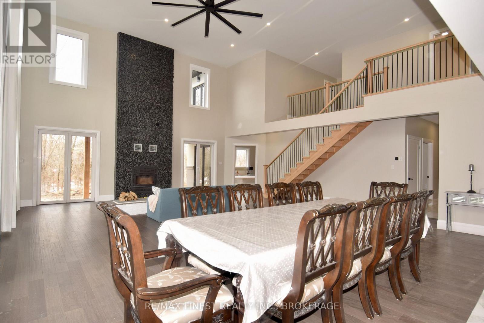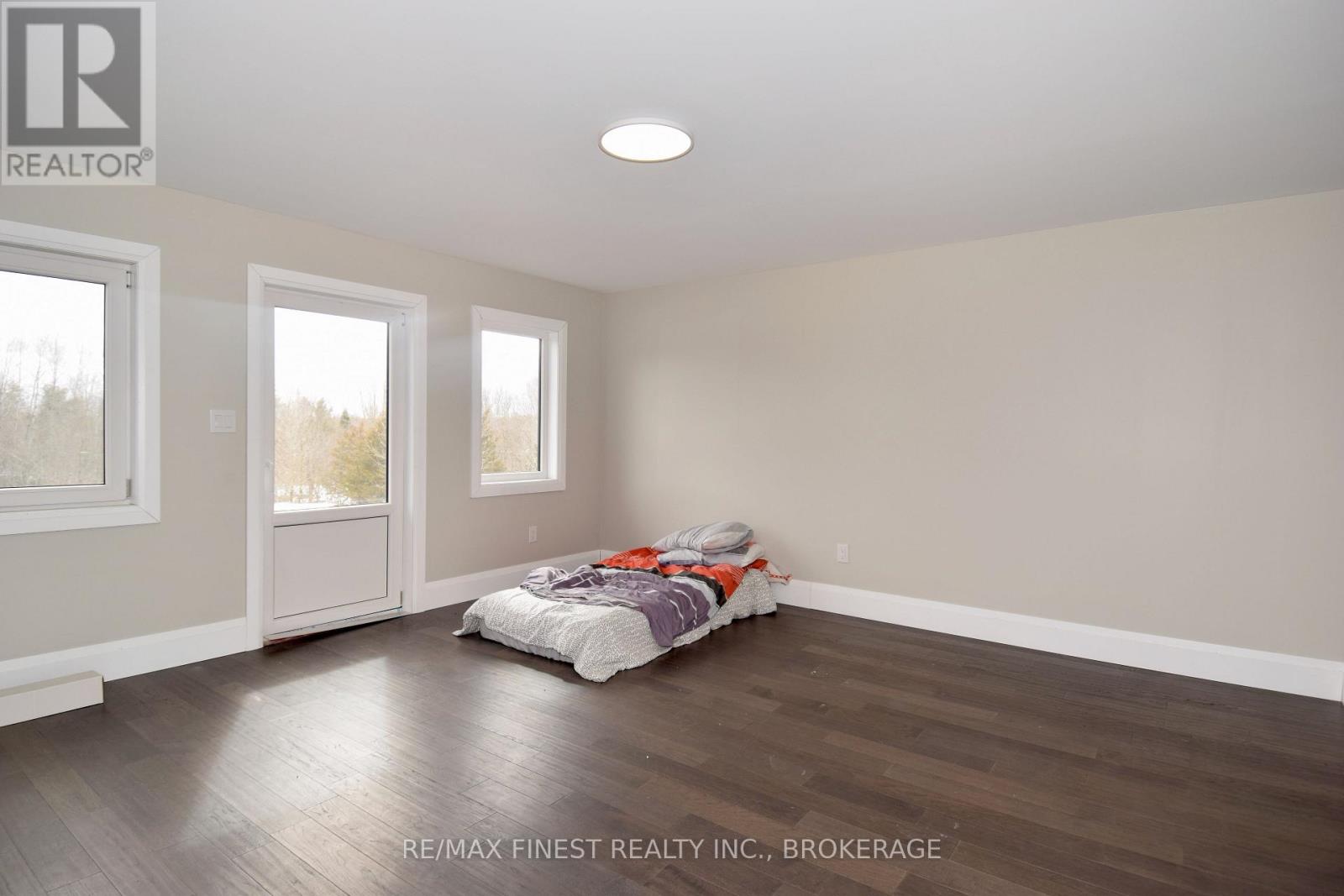 Welcome to your private country estate an exceptional custom-built two-storey executive homeset on over 50 acres of pristine land in the sought after Bob's Lake region. Offering more than3,500 square feet of finished living space, this stunning new construction delivers the perfect balance of luxury, comfort, and complete privacy, surrounded by panoramic views of rolling, treed landscapes. Thoughtfully designed and custom throughout, the home features soaring ceilings and a breathtaking cathedral great room anchored by a floor to ceiling fireplace, creating a warm and inviting focal point. The chef inspired kitchen is equally impressive, complete with stone countertops, an oversized island ideal for entertaining, formal dining area and a separate pantry. The main level offers a highly functional layout, including a private home office, a spacious primary suite with a full ensuite and large walk-in closet, as well as main floor laundry and a guest bathroom. Upstairs, you'll find three generously sized bedrooms, each with its own walk-in closet and access to a second storey deck where you can take in the peaceful natural surroundings. A large upper level bathroom with separate shower and tub completes the space. Quality finishes include European windows, hardwood and tile throughout, in-floor heating, and multiple access points to the outdoors and garage. The impressive 29 x 40 ft garage is a true hobbyist's dream, featuring a man door, double car door, and full transport-size door-perfect for storing vehicles, equipment, or recreational toys. Set well back from the road with a long private driveway, this property offers unmatched seclusion and natural beauty. Enjoy your own large pond, mature trees, and abundant wildlife including deer-ideal for outdoor enthusiasts, hunters, or anyone seeking a peaceful retreat. Located in a region known for its many lakes and recreational opportunities, this is your chance to escape the city and embrace country living at its finest. (id:28469)