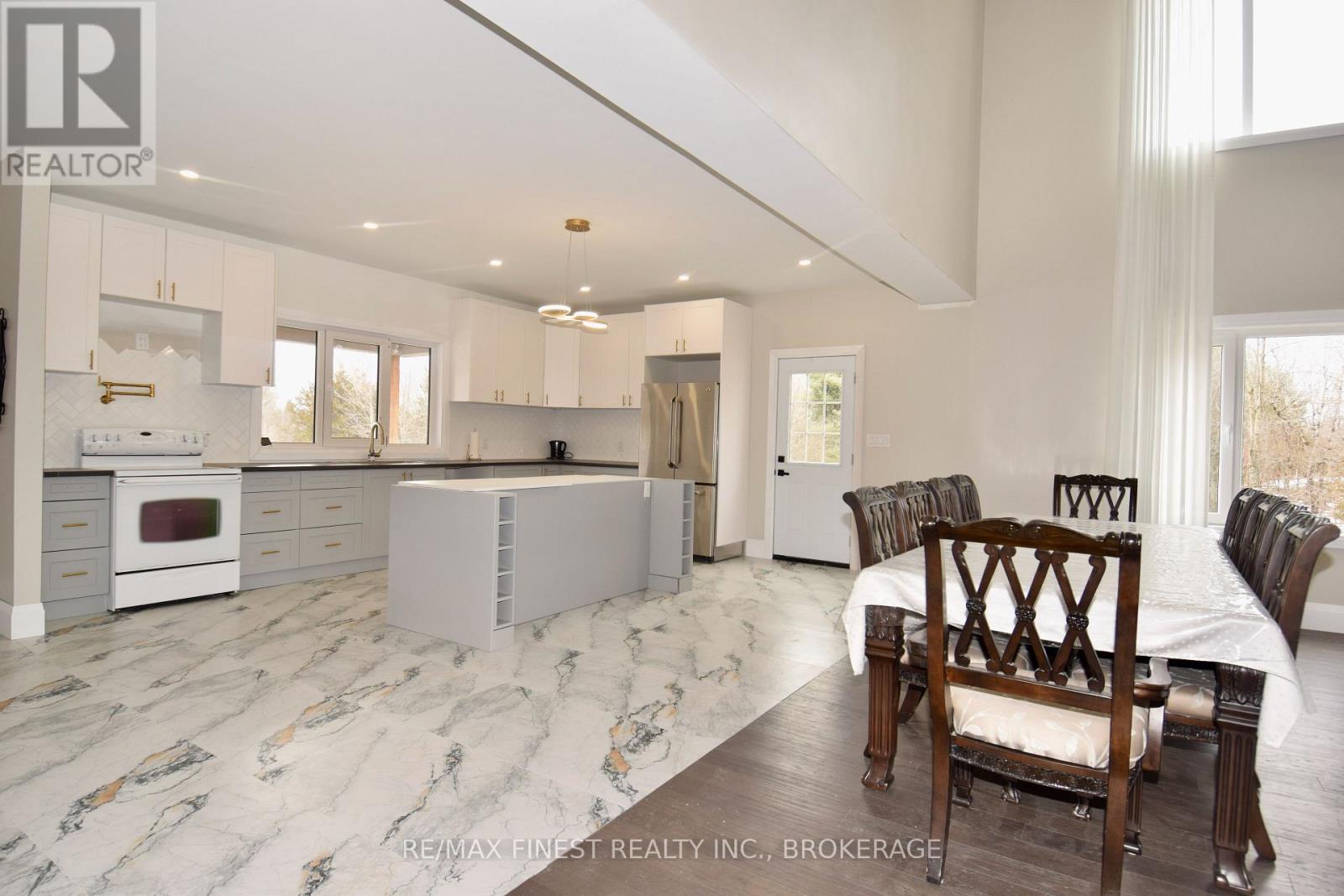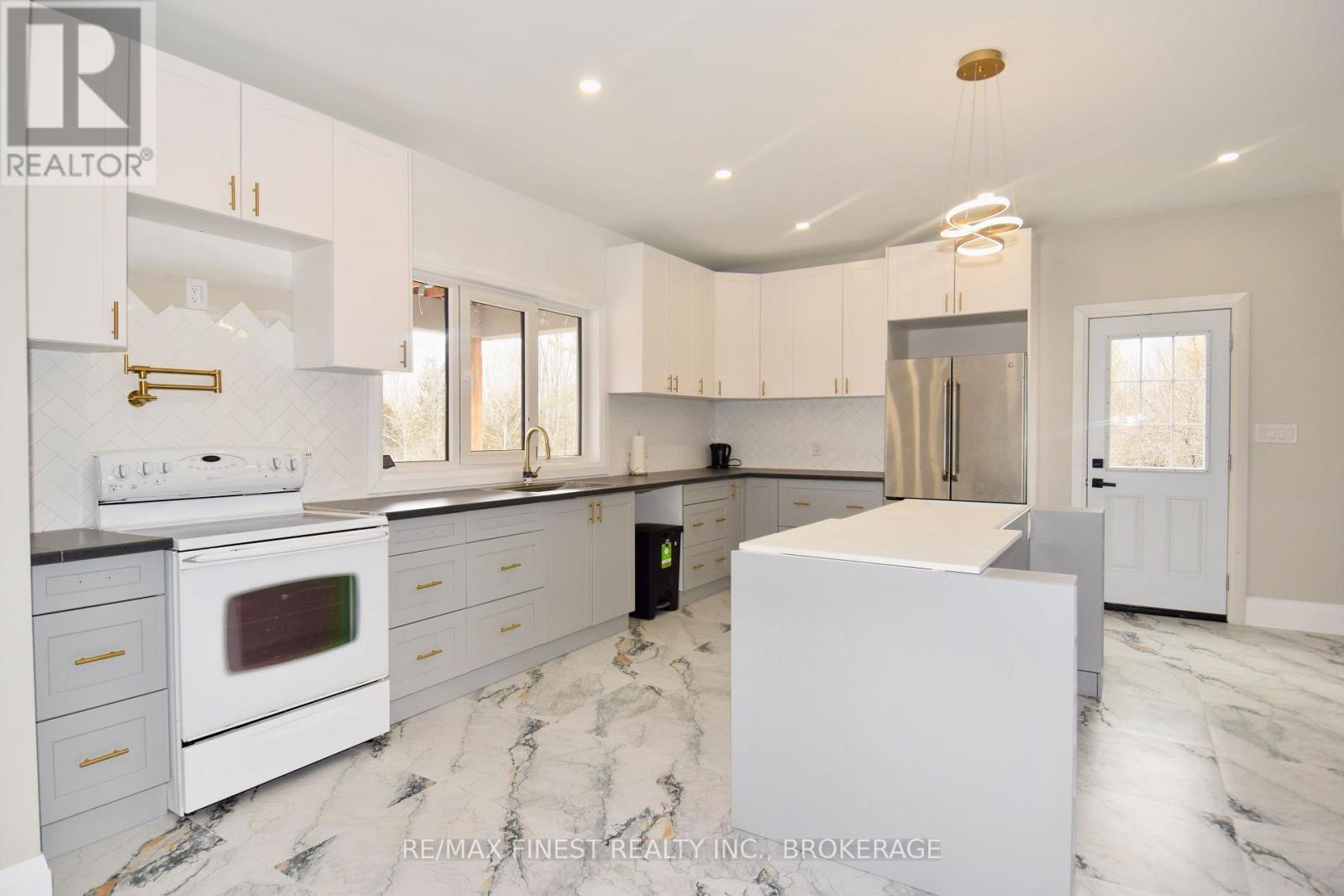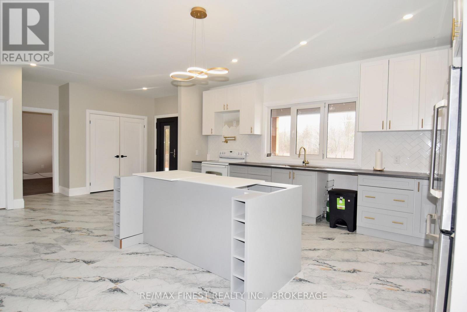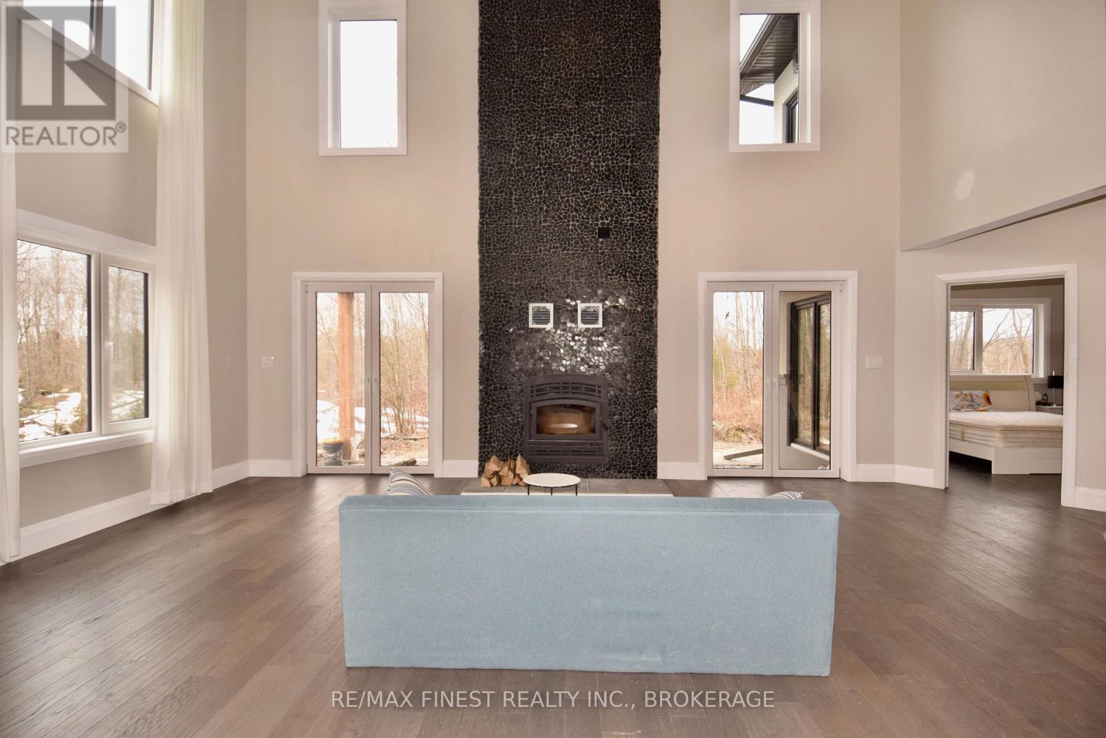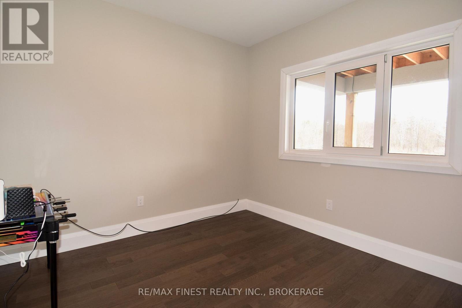 Welcome to your private country estate an exceptional custom-built two-storey executive homeset on over 50 acres of pristine land in the sought after Bob's Lake region. Offering more than3,500 square feet of finished living space, this stunning new construction delivers the perfect balance of luxury, comfort, and complete privacy, surrounded by panoramic views of rolling, treed landscapes. Thoughtfully designed and custom throughout, the home features soaring ceilings and a breathtaking cathedral great room anchored by a floor to ceiling fireplace, creating a warm and inviting focal point. The chef inspired kitchen is equally impressive, complete with stone countertops, an oversized island ideal for entertaining, formal dining area and a separate pantry. The main level offers a highly functional layout, including a private home office, a spacious primary suite with a full ensuite and large walk-in closet, as well as main floor laundry and a guest bathroom. Upstairs, you'll find three generously sized bedrooms, each with its own walk-in closet and access to a second storey deck where you can take in the peaceful natural surroundings. A large upper level bathroom with separate shower and tub completes the space. Quality finishes include European windows, hardwood and tile throughout, in-floor heating, and multiple access points to the outdoors and garage. The impressive 29 x 40 ft garage is a true hobbyist's dream, featuring a man door, double car door, and full transport-size door-perfect for storing vehicles, equipment, or recreational toys. Set well back from the road with a long private driveway, this property offers unmatched seclusion and natural beauty. Enjoy your own large pond, mature trees, and abundant wildlife including deer-ideal for outdoor enthusiasts, hunters, or anyone seeking a peaceful retreat. Located in a region known for its many lakes and recreational opportunities, this is your chance to escape the city and embrace country living at its finest. (id:28469)