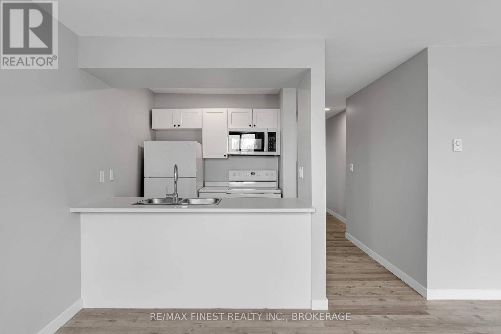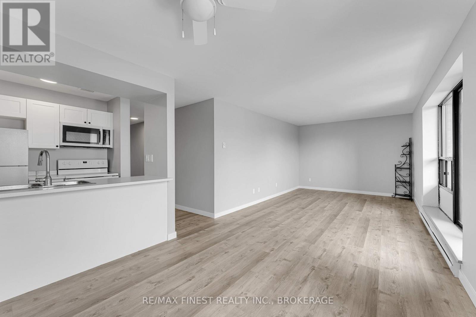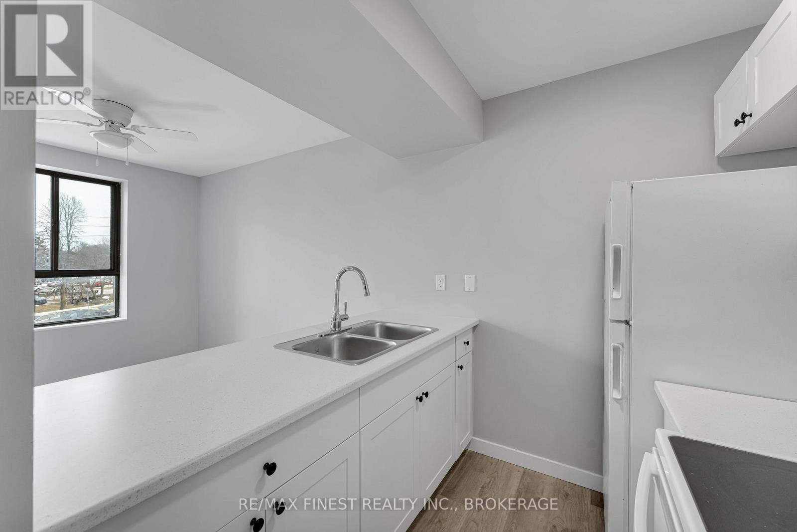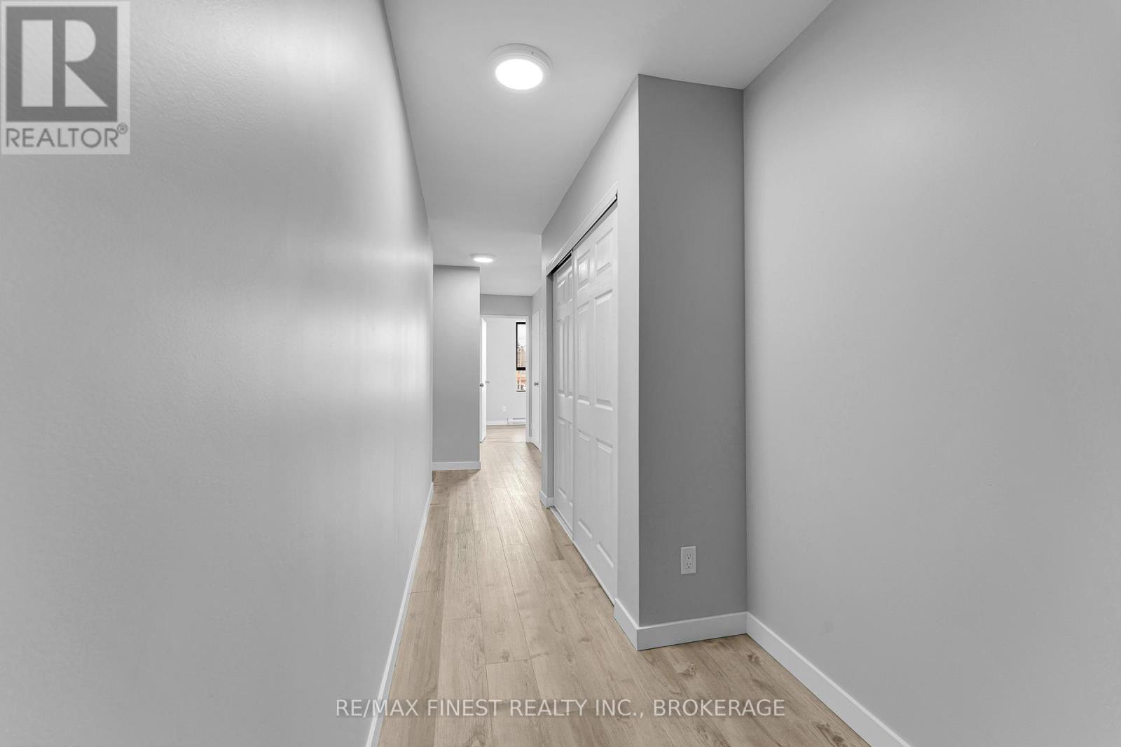 $750 MonthlyRare 3-bedroom end unit in prime central Kingston! Welcome to this beautifully and fully renovated, carpet-free condo offering over 1,000 sq. ft. of stylish, move-in-ready living space. This rare 3-bedroom unit provides exceptional privacy and features a spacious layout with ample closet space. Enjoy a tastefully renovated 4-piece crisp and clean bathroom area. The modern galley kitchen has been refreshed with updated fridge, stove and microwave with a partially opened wall, creating a more open feel to the bright dining and living areas. Three generously sized bedrooms include a spacious primary with double closets. Step out onto the south-facing balcony, where a mature tree provides additional privacy. Additional highlights include a large in-unit storage room, convenient laundry on each level, a convenient elevator, and a fantastic location just minutes to shopping, parks, transit, Queens University, St Lawrence college and more! (id:28469)