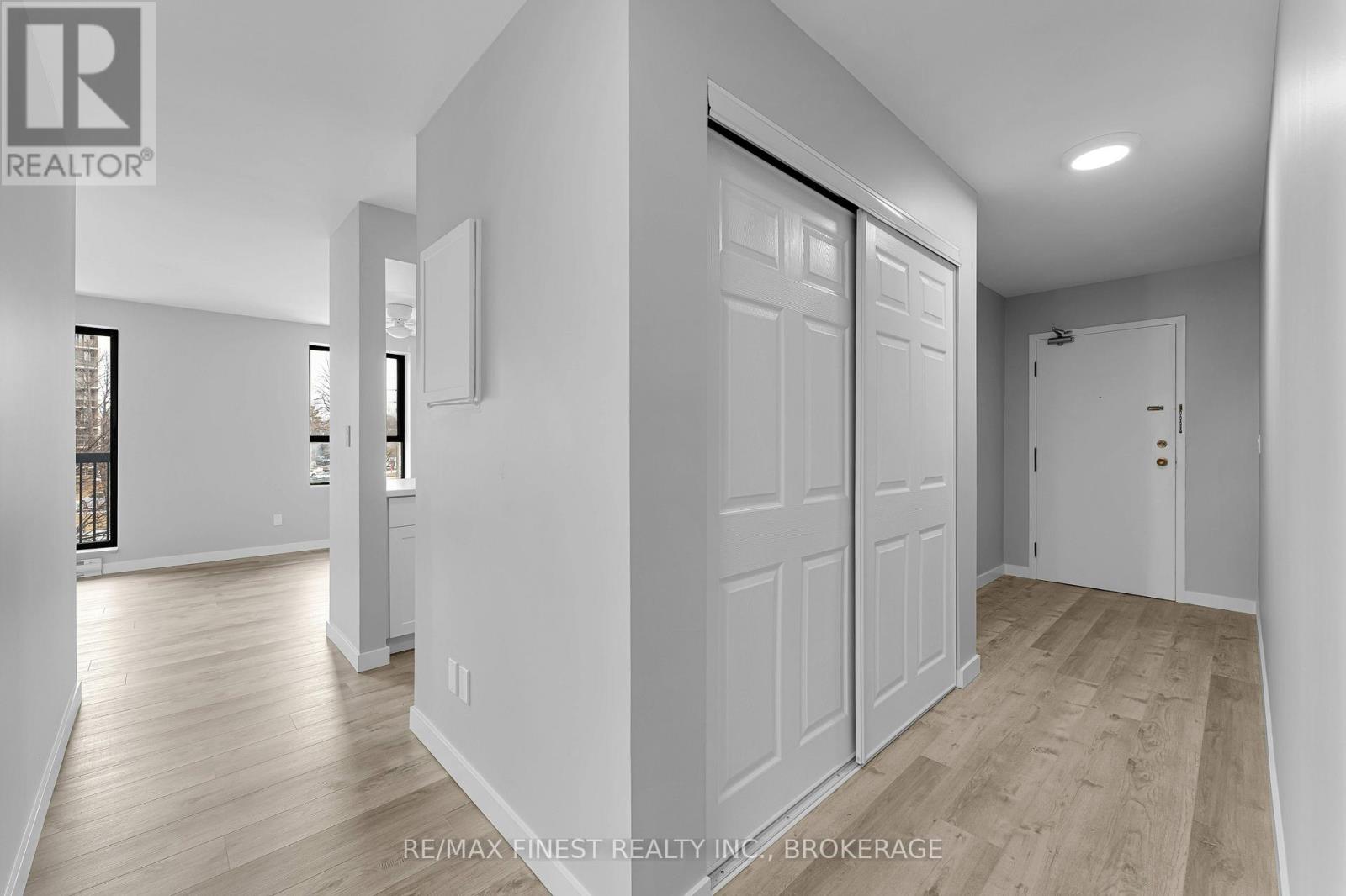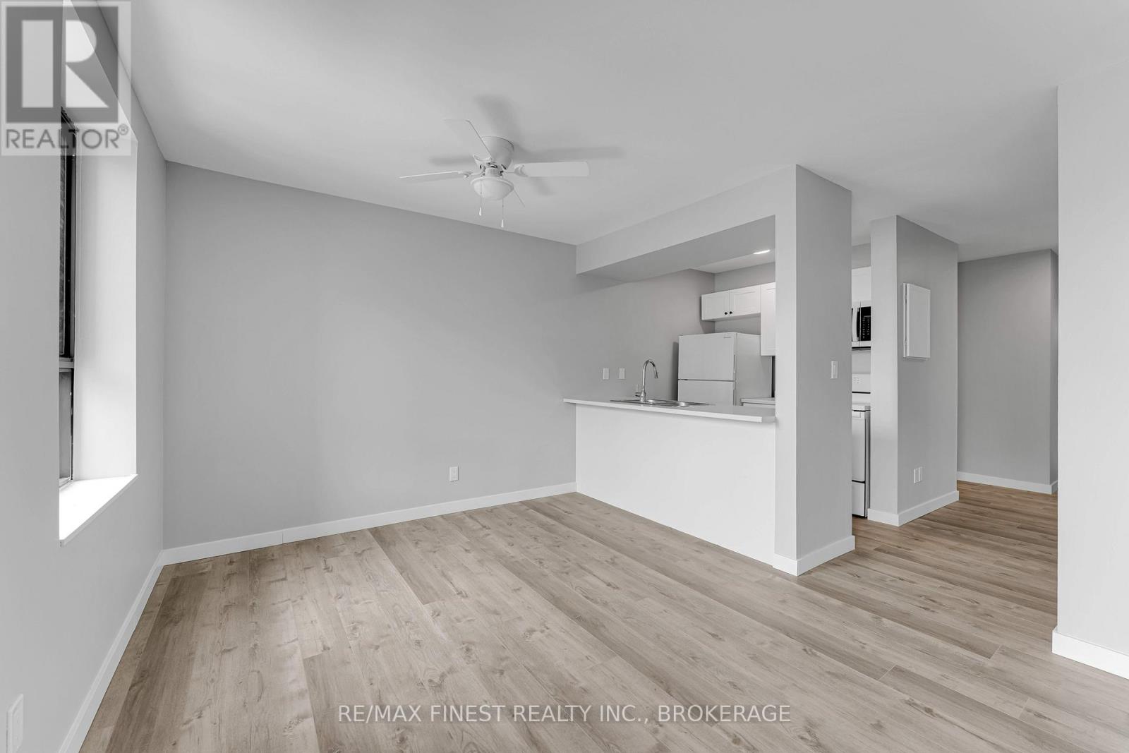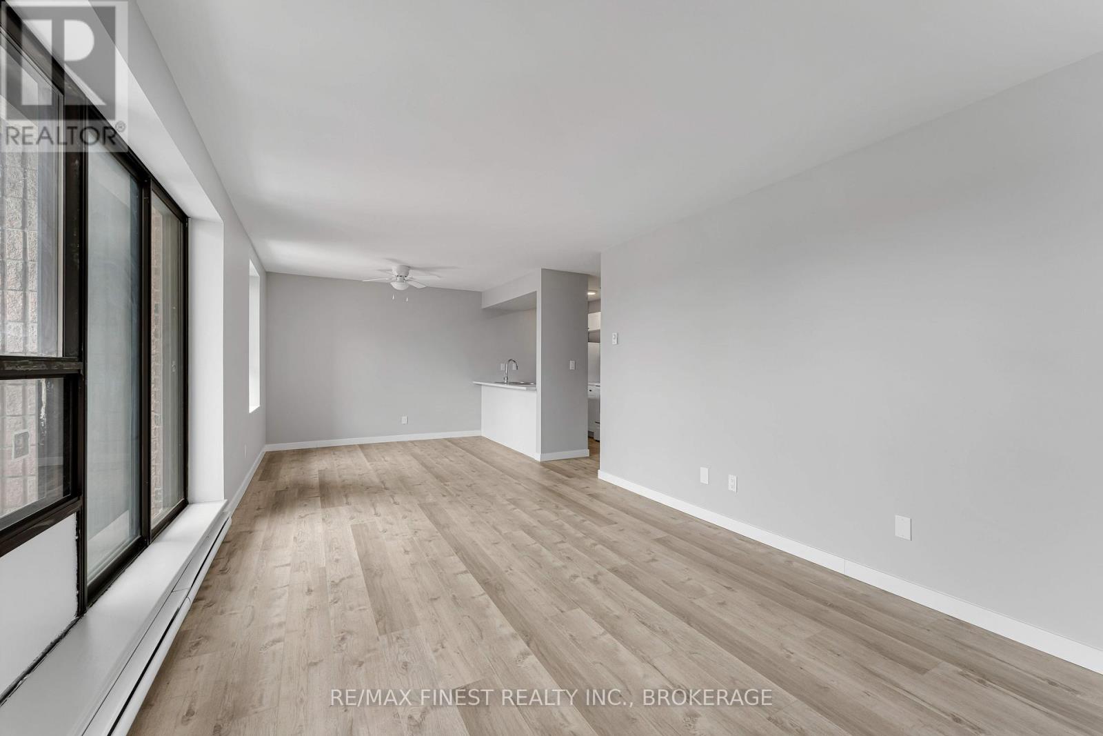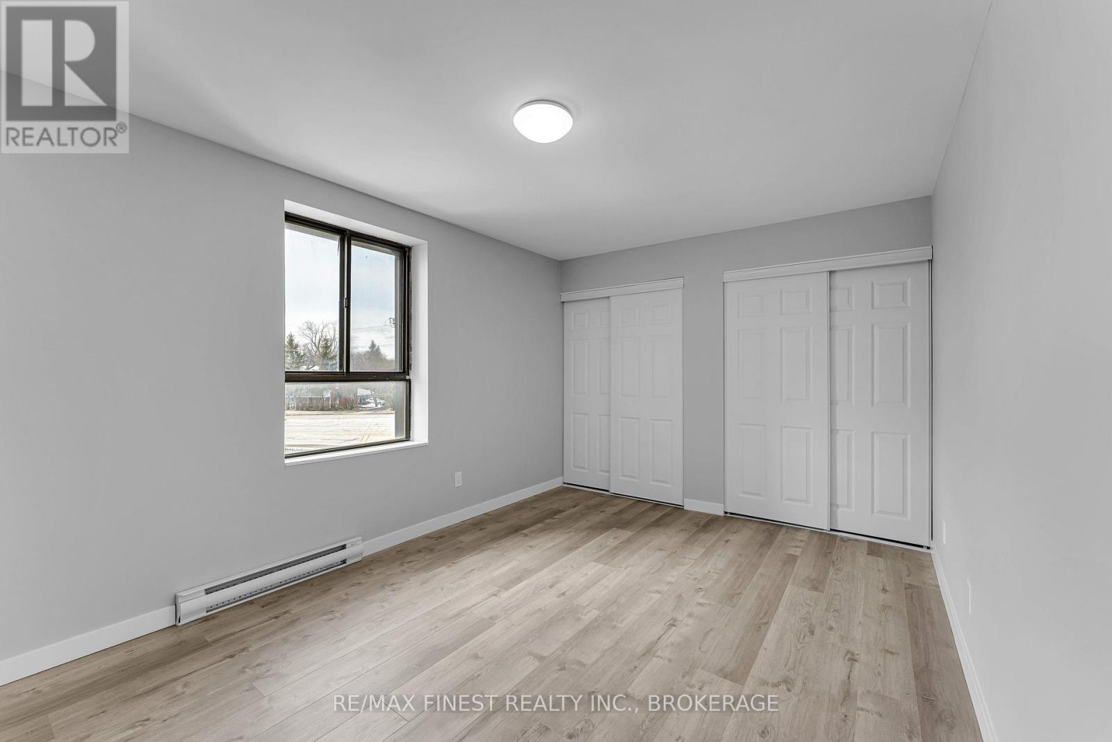 $750 MonthlyRare 3-bedroom end unit in prime central Kingston! Welcome to this beautifully and fully renovated, carpet-free condo offering over 1,000 sq. ft. of stylish, move-in-ready living space. This rare 3-bedroom unit provides exceptional privacy and features a spacious layout with ample closet space. Enjoy a tastefully renovated 4-piece crisp and clean bathroom area. The modern galley kitchen has been refreshed with updated fridge, stove and microwave with a partially opened wall, creating a more open feel to the bright dining and living areas. Three generously sized bedrooms include a spacious primary with double closets. Step out onto the south-facing balcony, where a mature tree provides additional privacy. Additional highlights include a large in-unit storage room, convenient laundry on each level, a convenient elevator, and a fantastic location just minutes to shopping, parks, transit, Queens University, St Lawrence college and more! (id:28469)