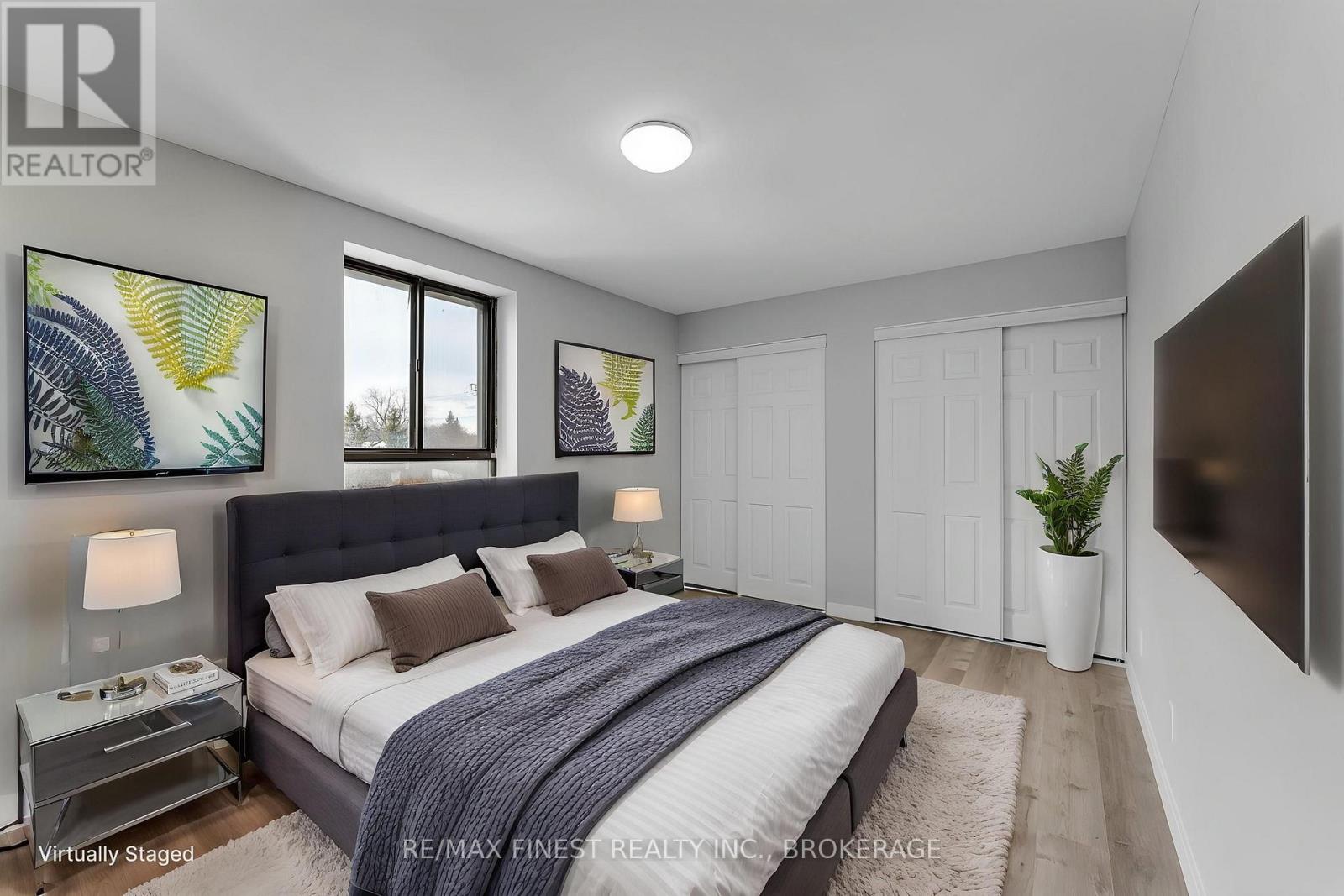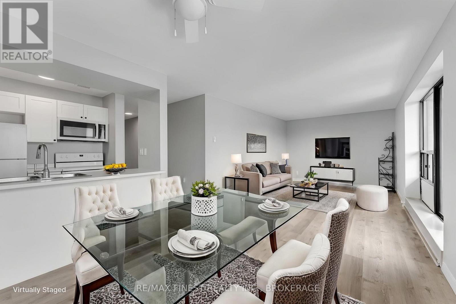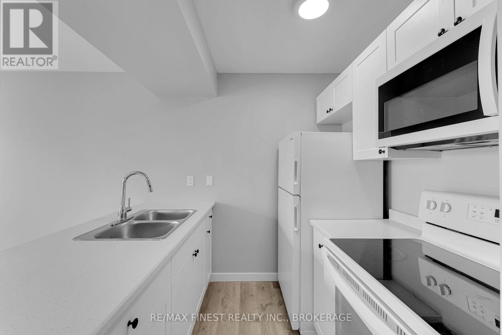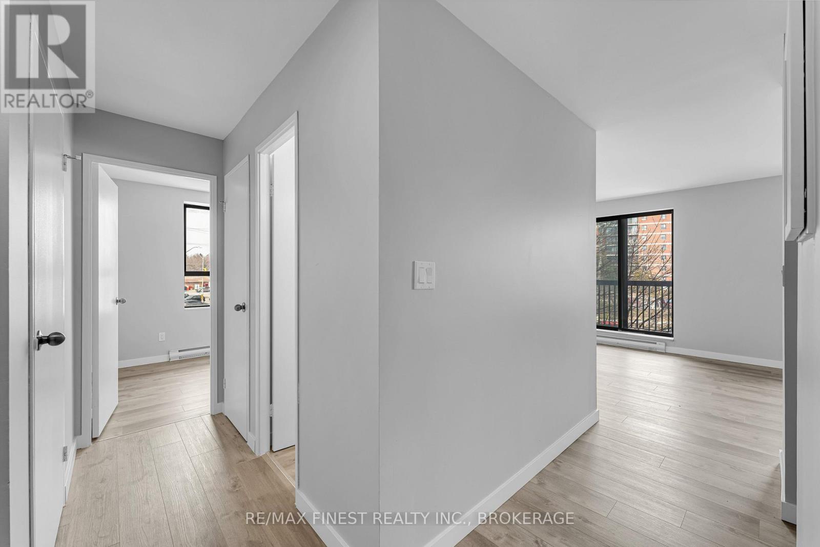 $750 MonthlyRare 3-bedroom end unit in prime central Kingston! Welcome to this beautifully and fully renovated, carpet-free condo offering over 1,000 sq. ft. of stylish, move-in-ready living space. This rare 3-bedroom unit provides exceptional privacy and features a spacious layout with ample closet space. Enjoy a tastefully renovated 4-piece crisp and clean bathroom area. The modern galley kitchen has been refreshed with updated fridge, stove and microwave with a partially opened wall, creating a more open feel to the bright dining and living areas. Three generously sized bedrooms include a spacious primary with double closets. Step out onto the south-facing balcony, where a mature tree provides additional privacy. Additional highlights include a large in-unit storage room, convenient laundry on each level, a convenient elevator, and a fantastic location just minutes to shopping, parks, transit, Queens University, St Lawrence college and more! (id:28469)