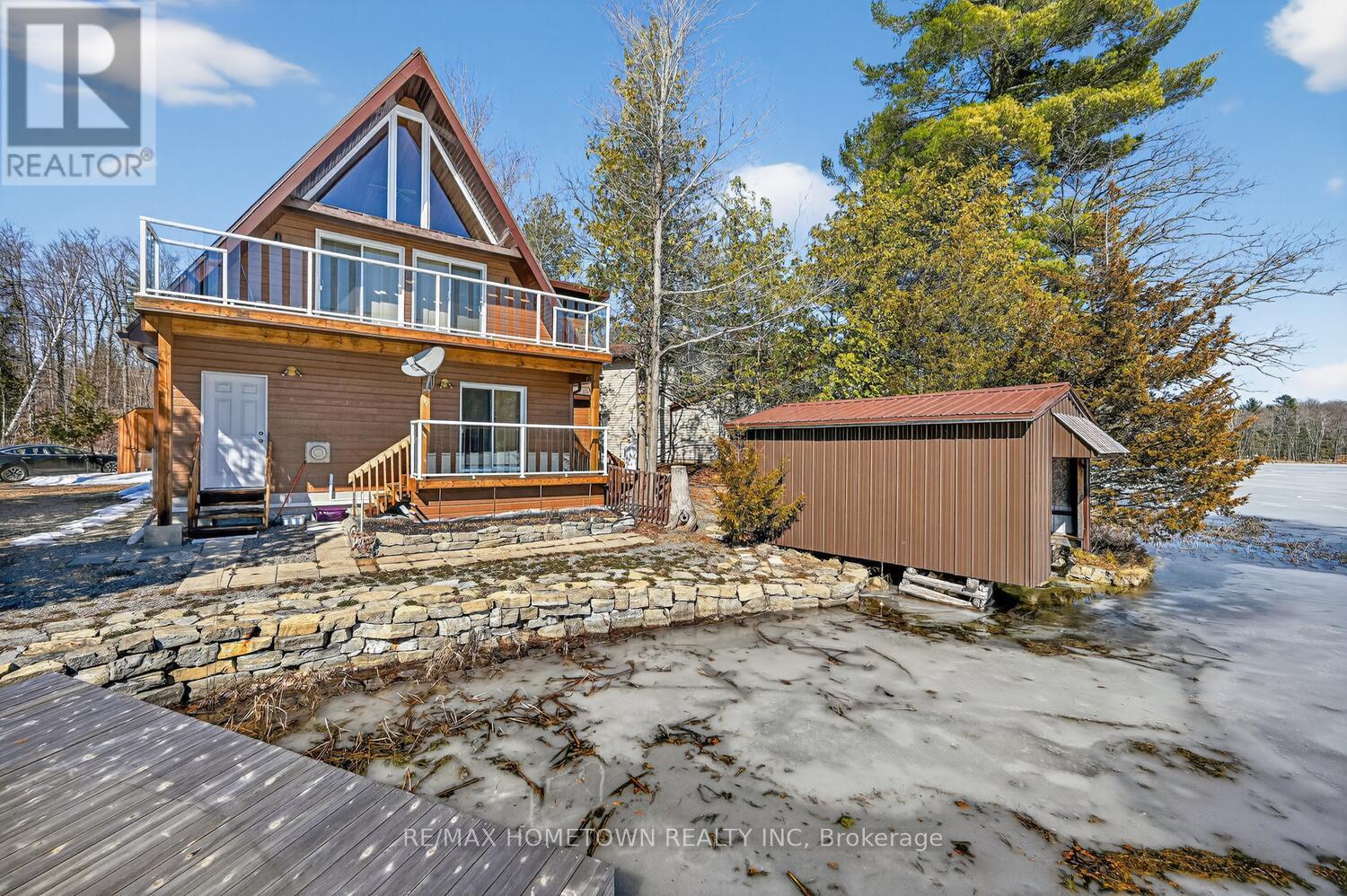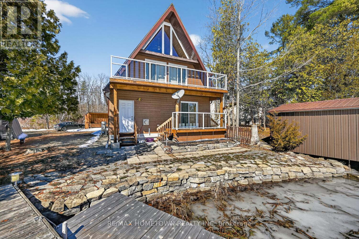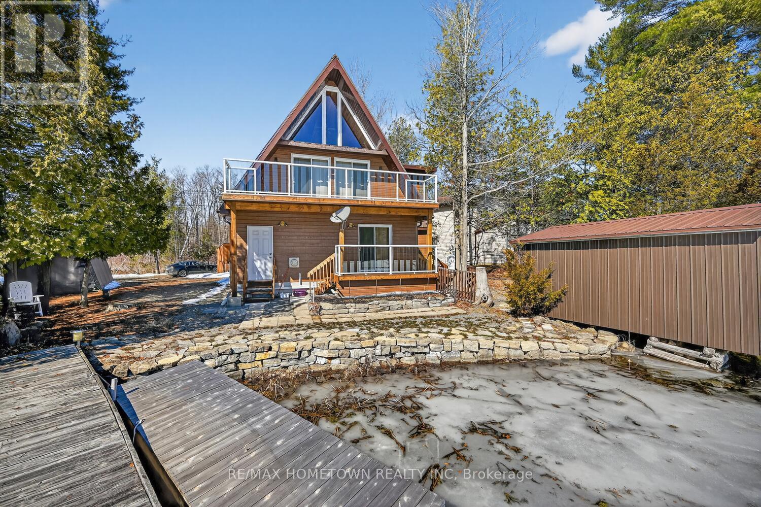 Escape to the pristine shores of Charleston Lake, one of Ontario's true crown jewel lakes, renowned for its crystal-clear waters, exceptional swimming, boating, and fishing. With multiple boat launches and two marinas nearby, this is lakeside living at its finest-perfectly positioned with easy access to two international bridges to the USA and just a 3.5-hour drive from Toronto. Set on a perfectly level lot with year-round access, this stunning waterfront property offers effortless enjoyment of lake life. Step right out to your direct shoreline access, complete with both fixed and floating docks-ideal for boating enthusiasts and those who love to soak up the sun by the water. Originally built in 1970 and thoughtfully renovated in 2017, the home was raised and enhanced with a new 10-block foundation, along with the addition of a heated and insulated single-car garage. Inside, this charming chalet-style home blends comfort and character, featuring 2 bedrooms plus a versatile loft space. The main floor is designed for convenience with a spacious primary bedroom offering a walk-in closet, private ensuite, and in-suite laundry. Upstairs, the open-concept living area showcases a bright eat-in kitchen with pantry, seamlessly flowing into the dining and family room, all with access to an elevated deck-perfect for entertaining or enjoying breathtaking lake views. A second deck off the primary bedroom provides a peaceful retreat to start or end your day. Additional features include an energy-efficient heat pump for heating and cooling, a 200-amp breaker panel, a 10KW Generac propane generator, drilled well, and concrete holding tank. The durable CanExel siding-crafted from a blend of wood and composite materials-offers long-lasting curb appeal with an approximate 40-year lifespan. Whether you're searching for a year-round home or the ultimate waterfront getaway, this exceptional Charleston Lake property delivers the lifestyle you've been dreaming of. (id:28469)