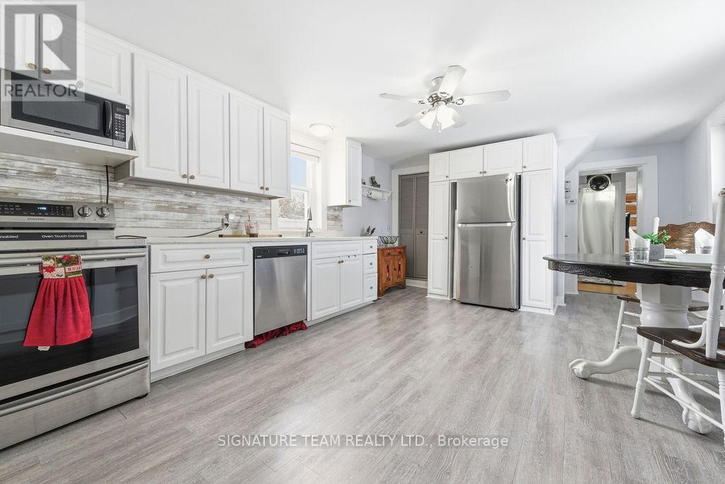 Located just minutes from the quaint village of Eganville in the heart of the Ottawa Valley at Kellys Corner, this 4-bedroom, 3-bathroom century home is set among rolling farmland and rural properties on a 1.1 acre lot. Filled with natural light and character, the original section of the home is believed to date back to the late 1800s and features log-frame construction. This space offers a welcoming living room [w oak flooring] and a main-floor den/bedrm, both enjoying beautiful countryside views. The kitchen addition provides a generous eat-in layout w a coffee bar and a second staircase (currently closed off upstairs) used as a pantry. A secondary exterior door leads directly to the covered deck and BBQ area - ideal for everyday living and entertaining. The most recent addition includes a spacious mudroom entry with full laundry and a convenient 2-piece bath. Upstairs, you'll find two well-sized secondary bedrms, each with closets plus the primary bedrm, located above the newest addition, bright and inviting, featuring handcrafted wooden shutters, his-and-hers walk-in closets, and a stunning newly built 5-piece ensuite. The ensuite is filled with natural light and offers countryside views, a freestanding tub, separate shower, and double vanity. Outside, a barn-style outbuilding w car port, has been repurposed and includes a heated workshop, finished modern loft with drywall, lighting, and electrical (previously used as a home gym and ideal for a studio!) and wood storage. Additional outdoor features include cover side-porch and front-porch, 3-stall lean-to, gazebo + a patio-stone fire pit area. Set within a rural farming community, the property is surrounded by an apiary, a neighbouring Mennonite farm and other rural homes - offering a peaceful setting with a strong sense of place and community spirit. (id:28469)