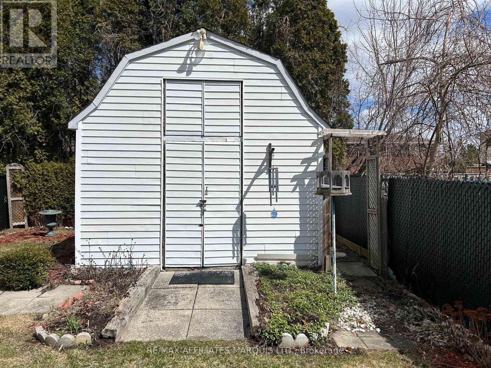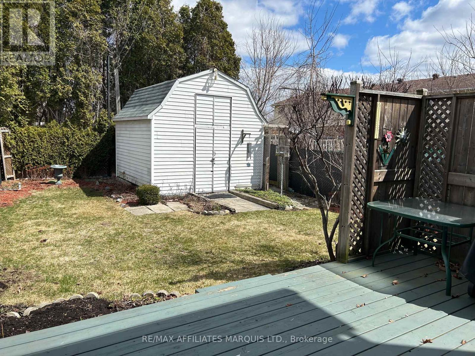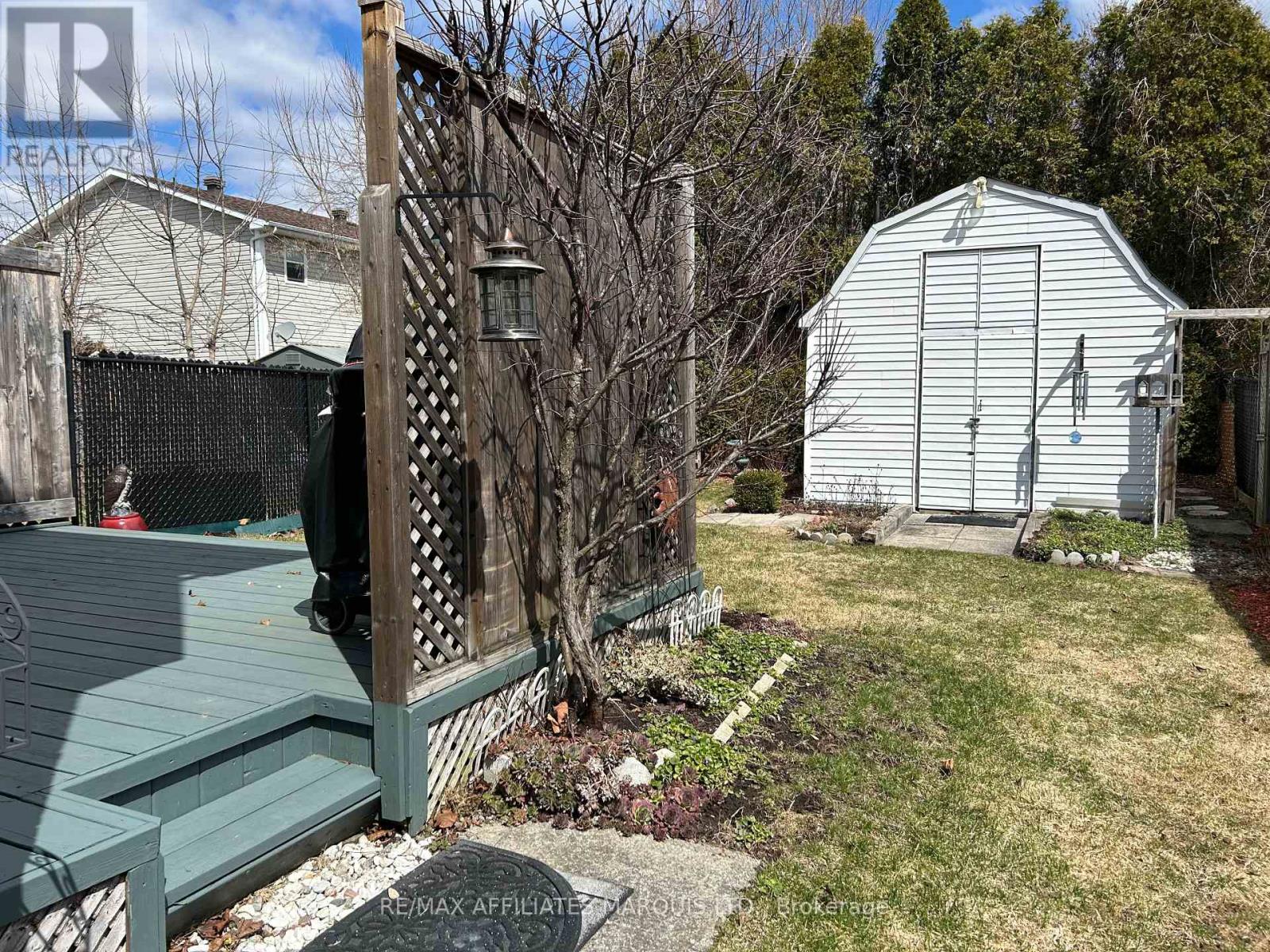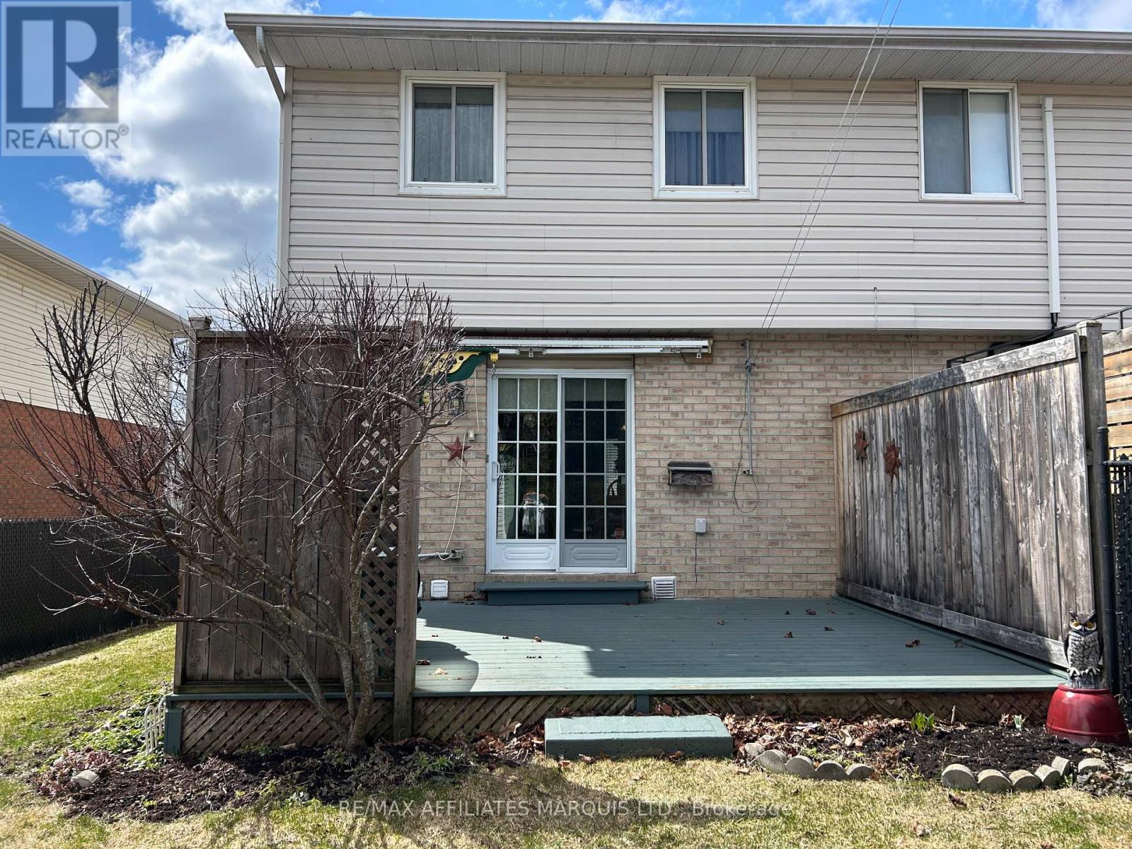 An excellent opportunity for first-time buyers, this well-maintained end-unit townhouse offers comfort, functionality, and move-in ready living. With approximately 1,020 sq ft of space, this home is ideal for those looking to enter the real estate market and begin building equity. The main floor features hardwood flooring in the bright living room and continues into the kitchen, complete with a practical eat-in area. Patio doors from the kitchen lead directly to the back deck, creating a seamless connection between indoor and outdoor living. All appliances are included, making for an easy transition into your new home. Upstairs, you will find a generously sized primary bedroom along with two additional bedrooms, as well as a 4-piece bathroom. The layout is both practical and functional for a variety of lifestyles. The lower level adds additional living space with a finished rec room, ideal for relaxing, a play area or home office space. This level also includes a second 4-piece bathroom, a separate laundry room with washer and dryer included, and additional storage space. Outside, enjoy a private, fully fenced backyard featuring a spacious deck, privacy fencing, and a large garden shed. It is an ideal space for outdoor enjoyment. Located in a nice residential neighbourhood, this home is close to Terry Fox Memorial Park, Eamer's Corners Public School and offers easy access to Highway 401. A solid, move-in ready home in a family-friendly area, ready for its next owners. Click on the Multi-Media link for floor plan. The Seller requires 24 hour Irrevocable on all Offers. (id:28469)